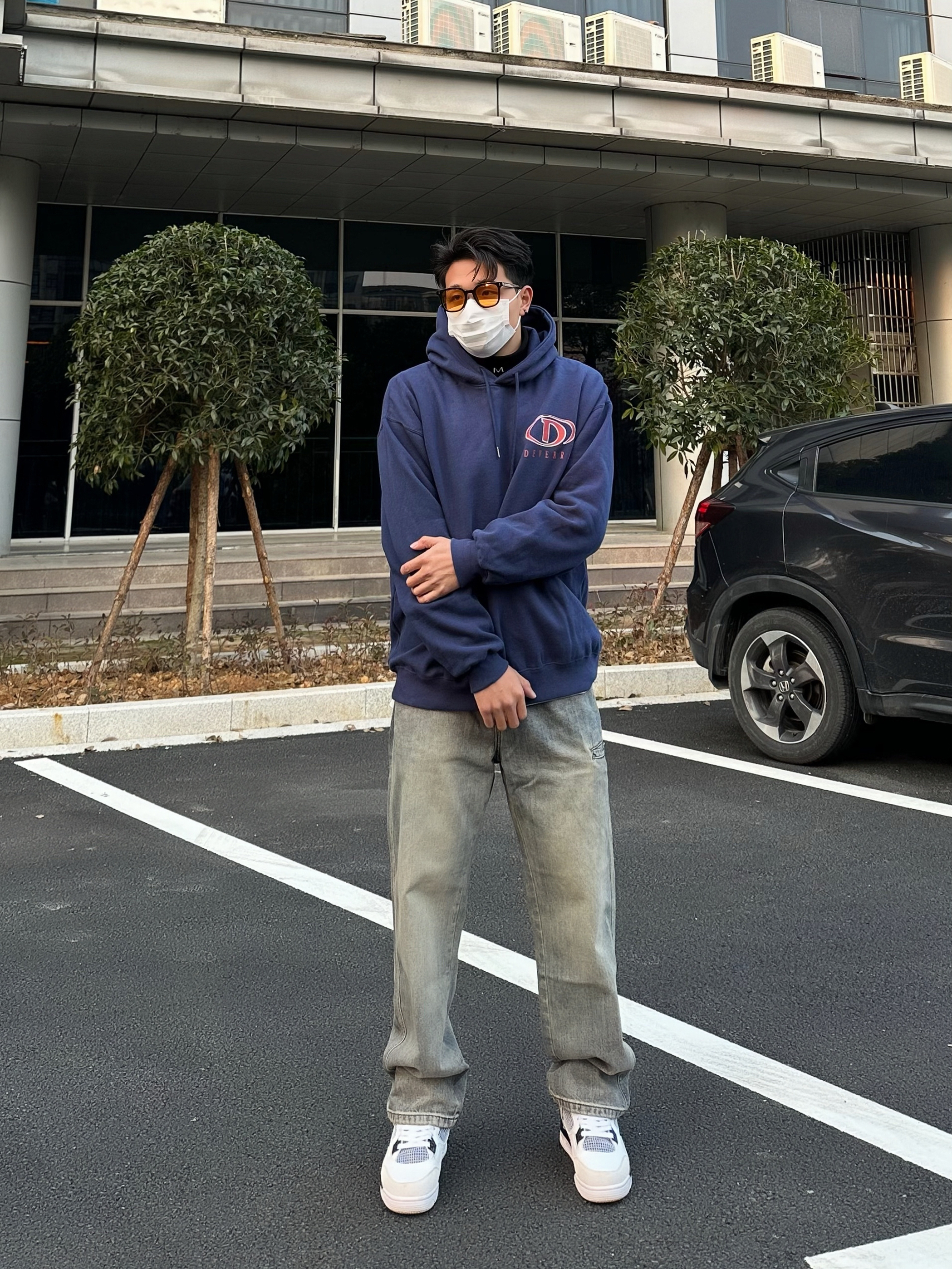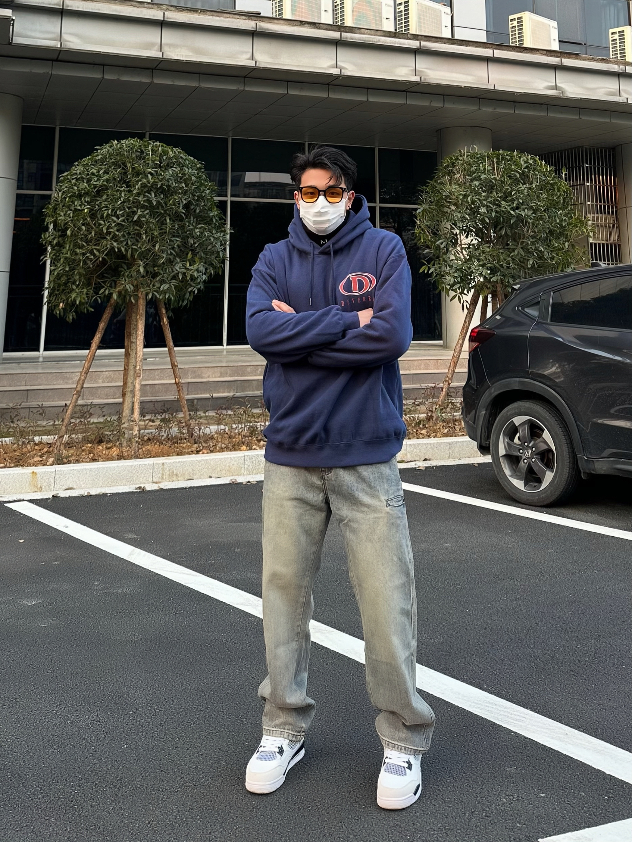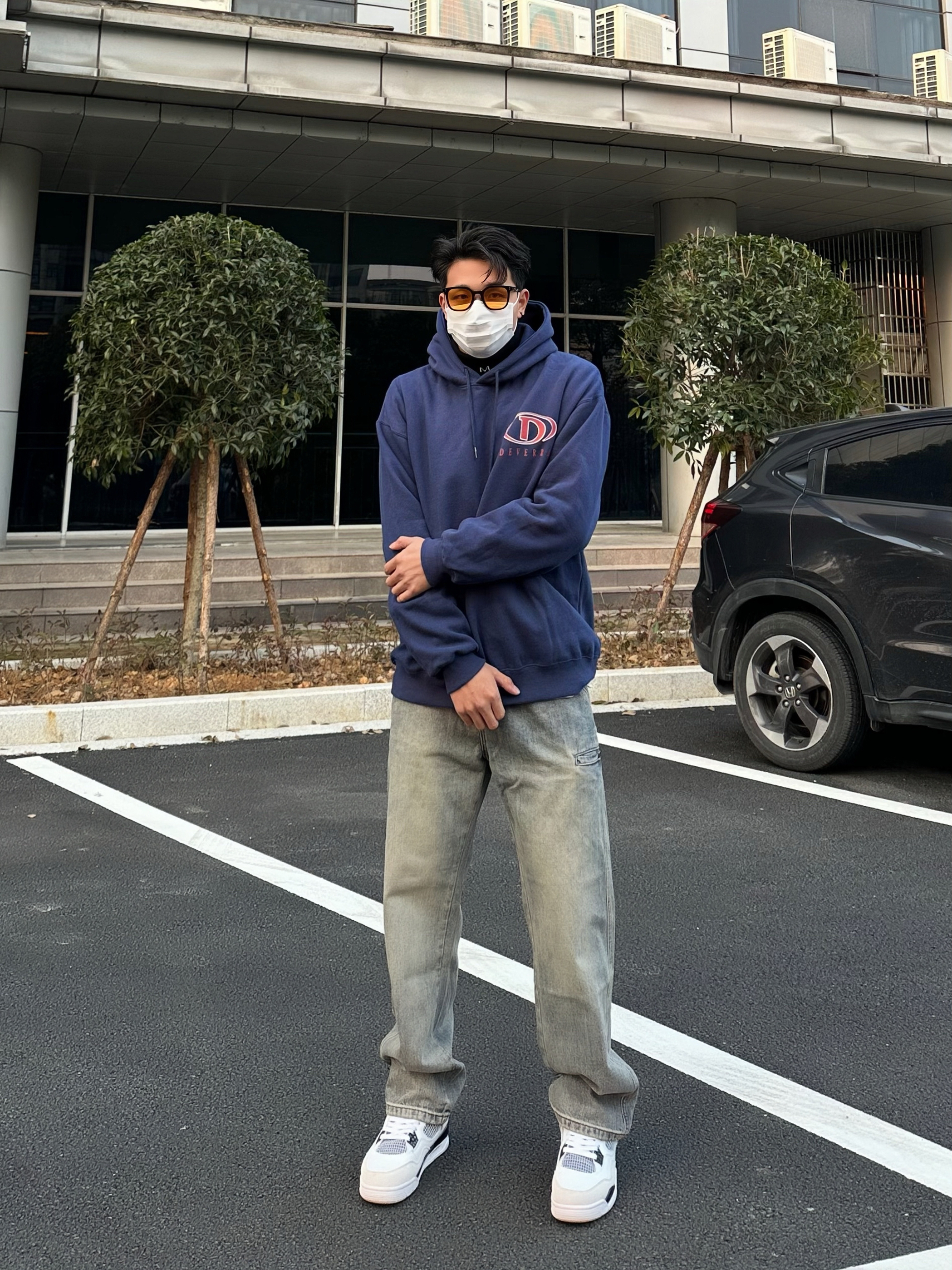 开春卫衣搭配最合适不过了 简单硬挺的版型穿在身上很有气质 最喜欢的蓝色色调也很符合开春的氛围 搭配上一条黄泥色牛仔长裤 宽松直筒的设计对腿胖的我很友好 再搭配一双白水泥真的很好看!