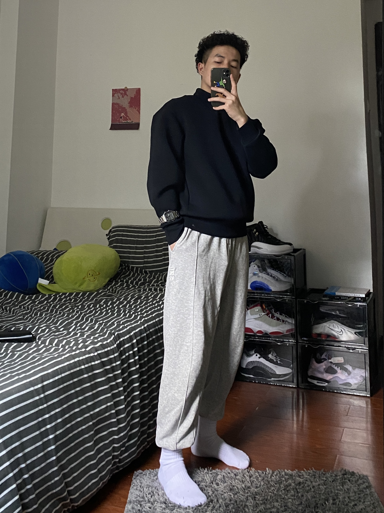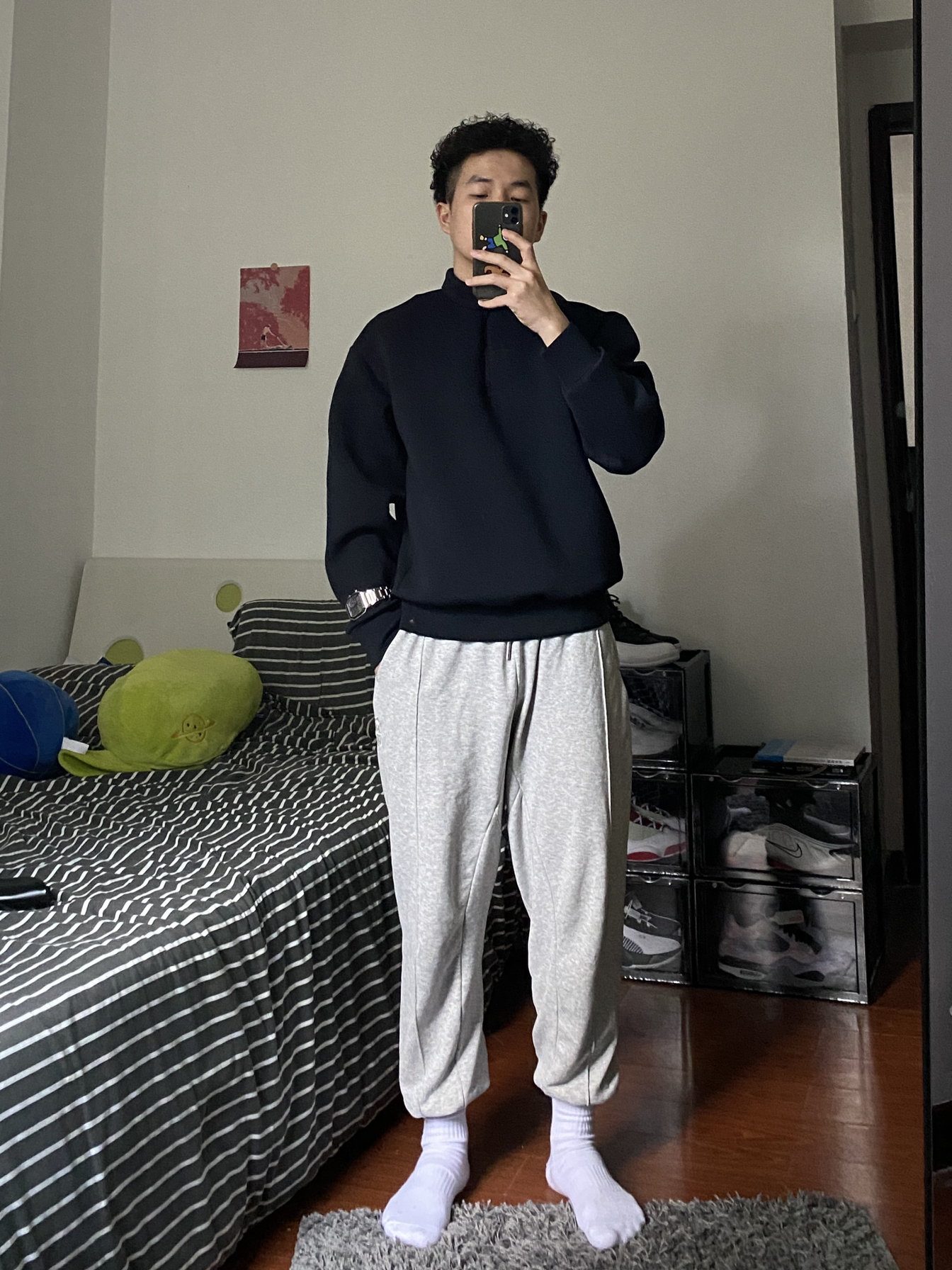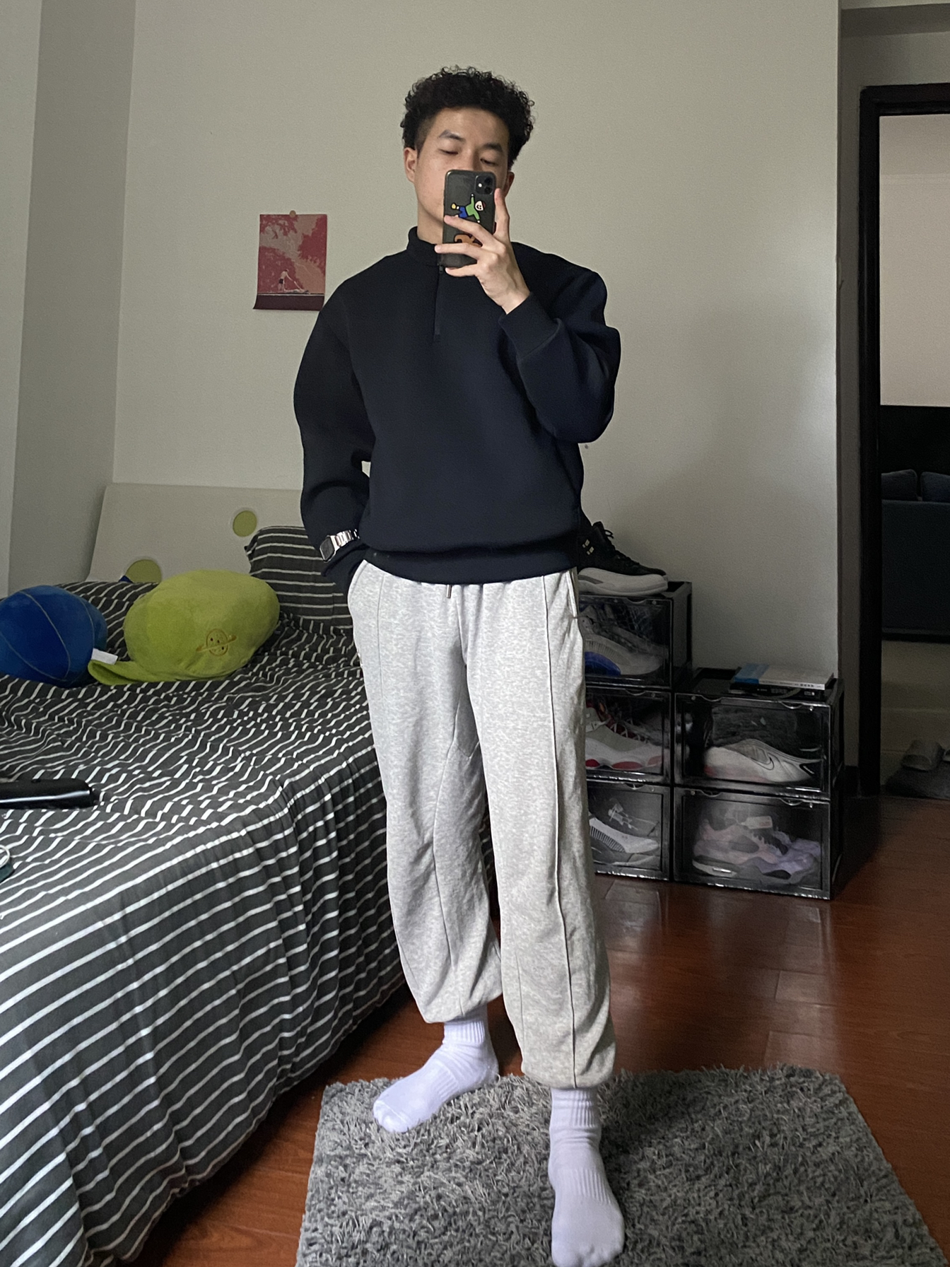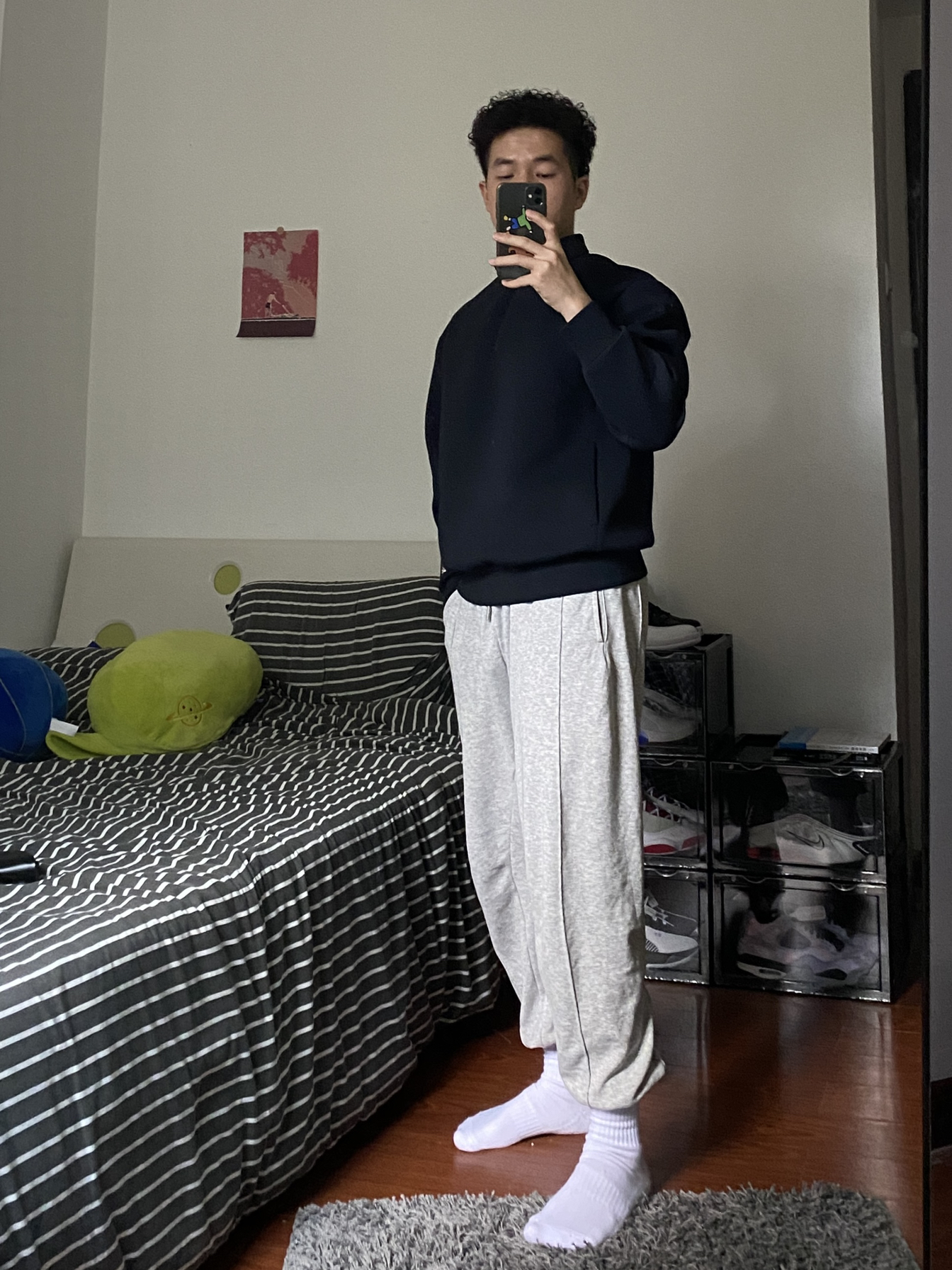 运动以舒服为主 裤子是最舒服的卫裤 柔软的材质非常舒服 上身是特别材质的薄款卫衣 舒适也很挺阔 OOTD🟰 👔深蓝卫衣 👖灰色卫裤