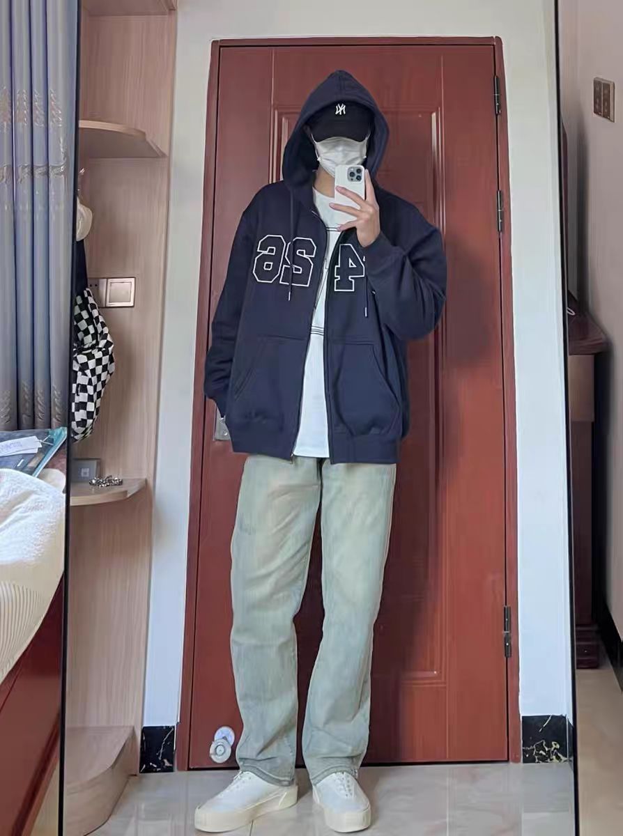 👔今日LOOK F426藏蓝色卫衣+ 复古做旧拉链阔腿直筒牛仔裤 ‼️适合人群 这一条牛仔裤不挑人 很休闲 直筒很修饰腿型 💫适配场合 平时的校园或者出门聚会都可以穿 🛒价格 两位数的价格能买到这个质量真的绝了 图片来源网络,侵删。
