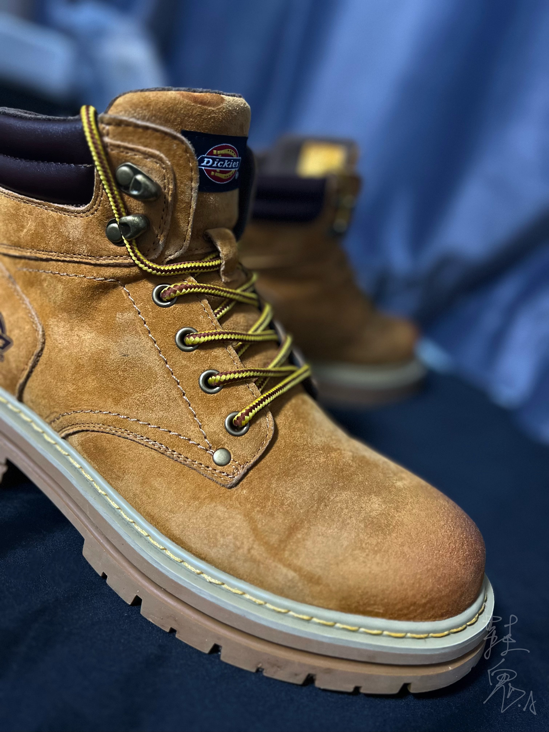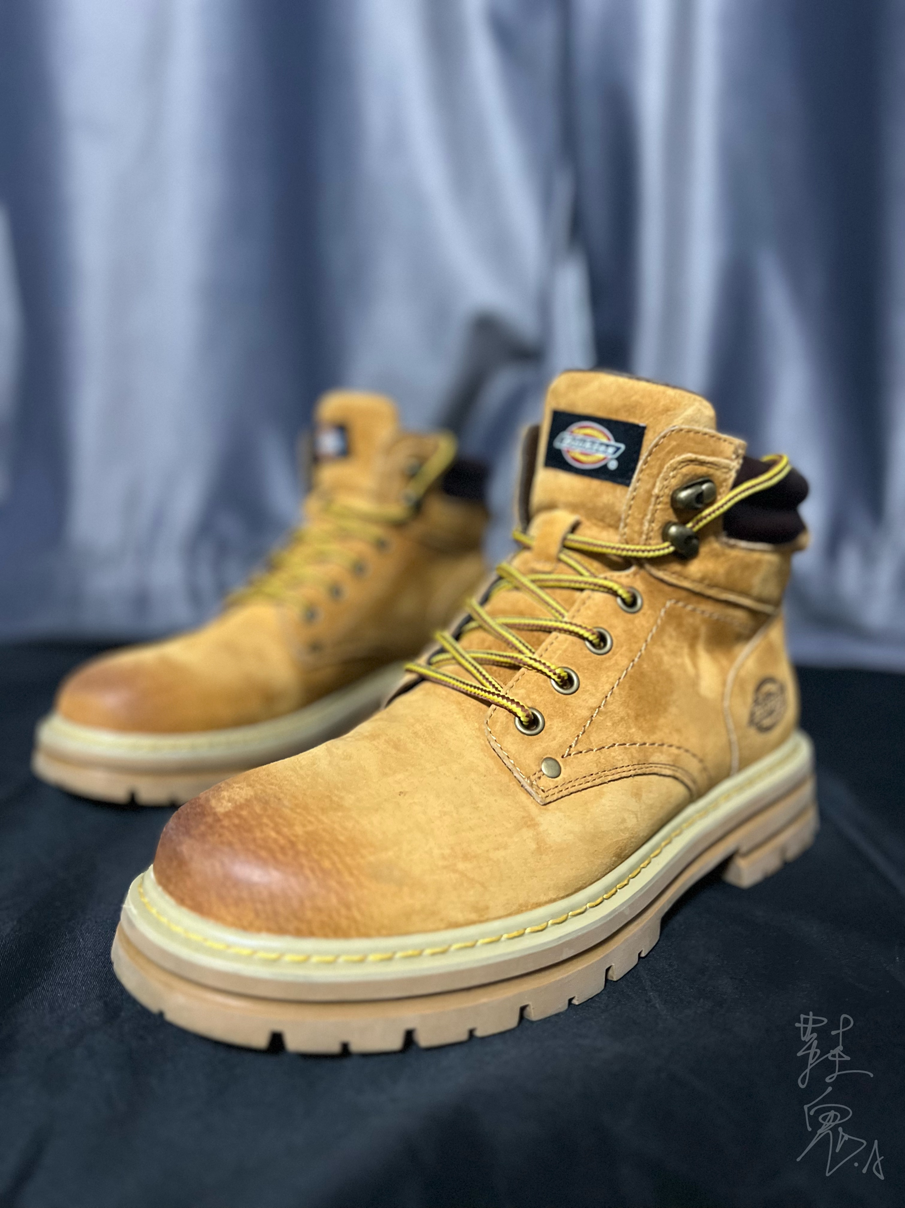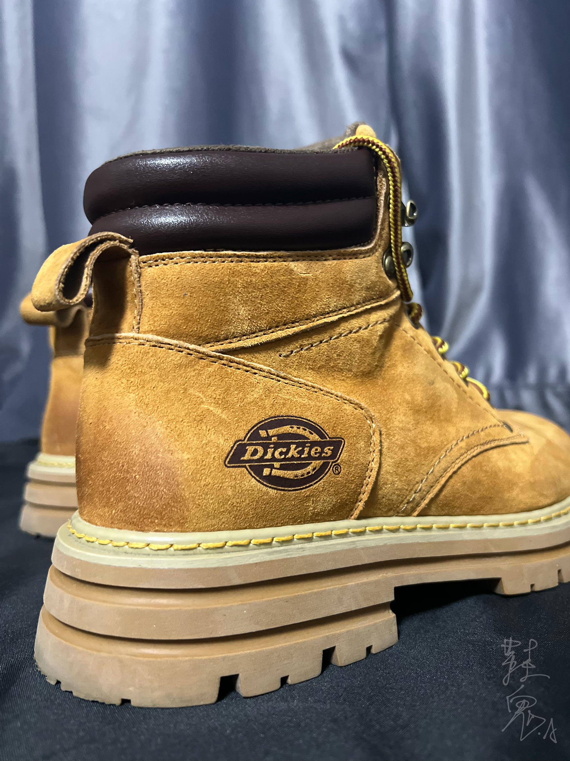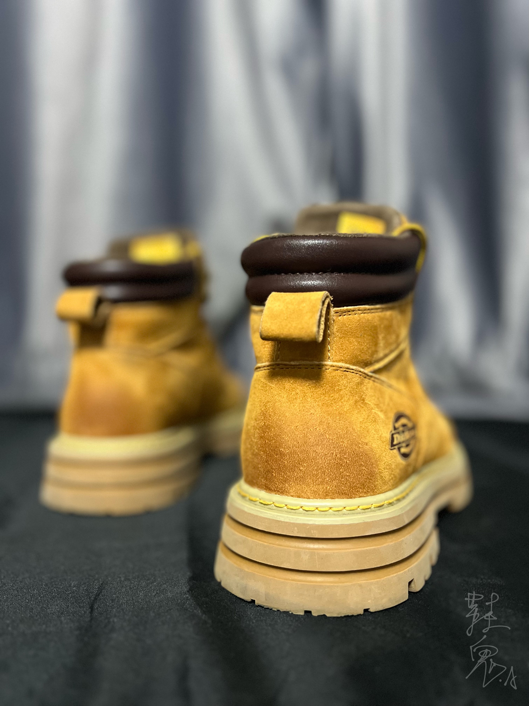 兄弟们今天这双靴子是我去年冬天到现在都在一直穿的鞋子。今天分享一下。 其实,大黄靴很多品牌都在出,之所以看上这双还是因为它渐变做旧的风格和全鞋面的绒毛很像麂皮的感觉,不仅手感丝滑看上去还充满质感。这点其实就已经直接拿捏住我的心了。 其他的话就是增高方面,比较多,可以“加长腿长” 哈哈😆个人比较喜欢比较硬的穿搭,比如机能/工装之类的。所以很好搭配。 🥾:Dickies