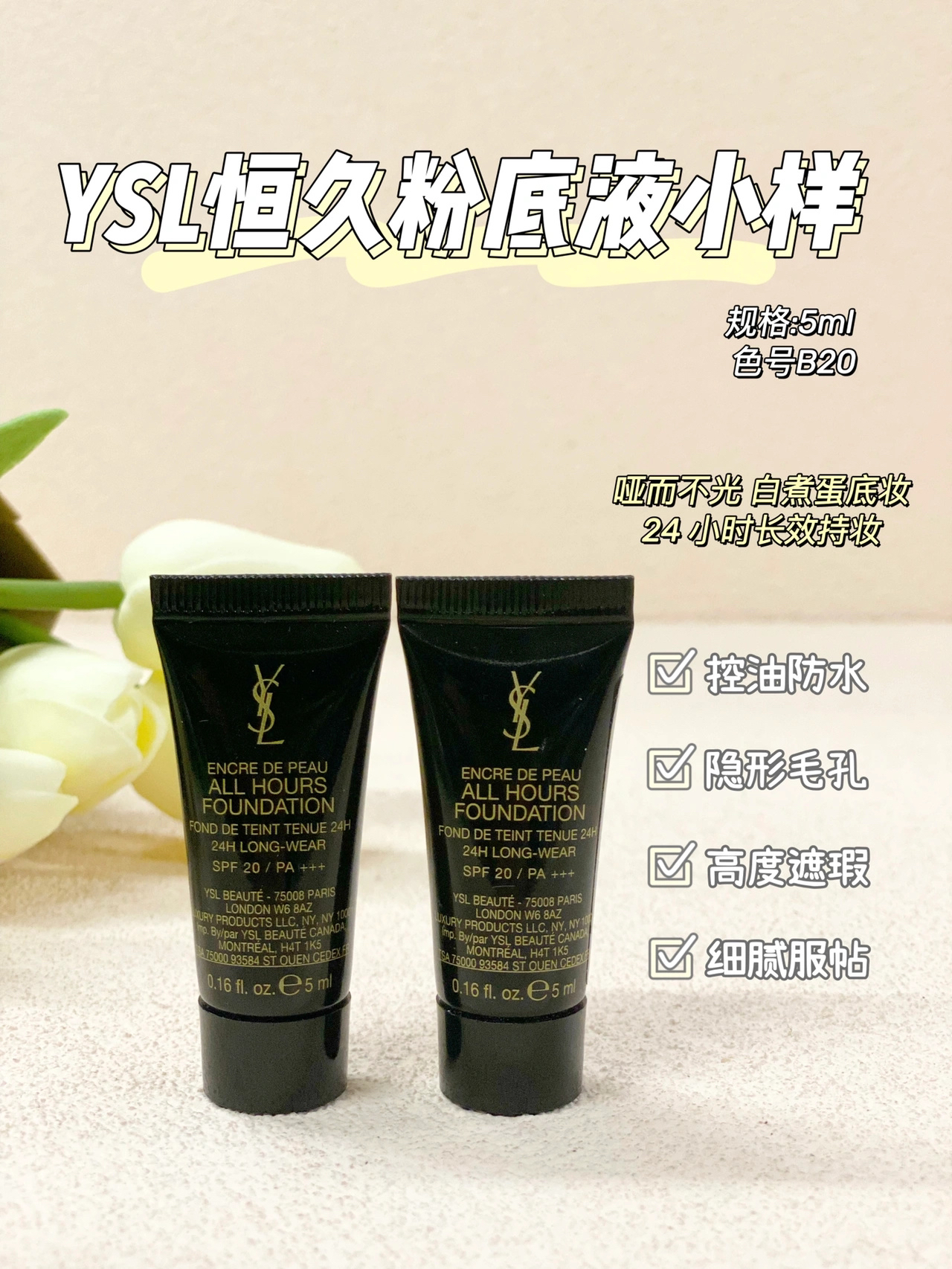 专柜赠品,没用过正装怕不合适,可以体验中小样 1⃣️YSL 圣罗兰黑丝缎妆前乳 5ml 黑丝缎隔离 圣罗兰黑丝段隔离妆前乳!夏天化妆必不可少!ysl妆前乳,隐形毛孔!圣罗兰亮肌乳(黑缎带隔离)一步到位!很容易推开,滋润但完全不油腻 让底妆更持久~ 2⃣️ 兰蔻持妆粉底液po-01小样5ml。 遮瑕超级好,毛孔粗大的地方都能做到柔焦一样隐形,像棉花糖一样的质感。不!脱 !妆!持妆效果长达18小时,...