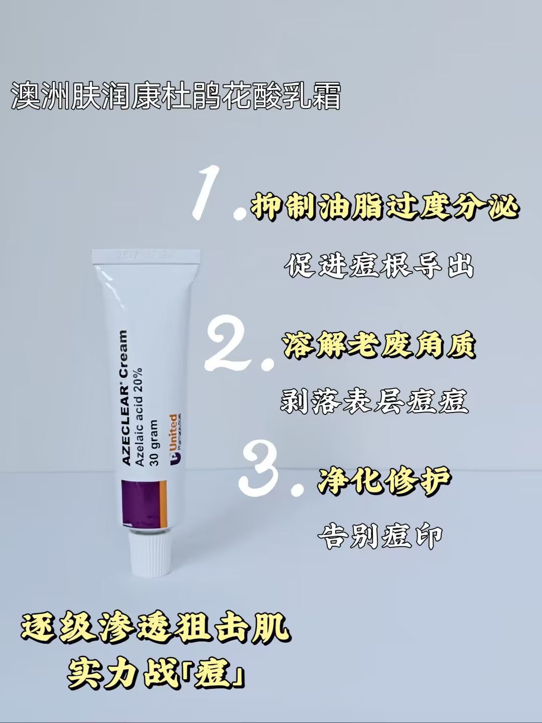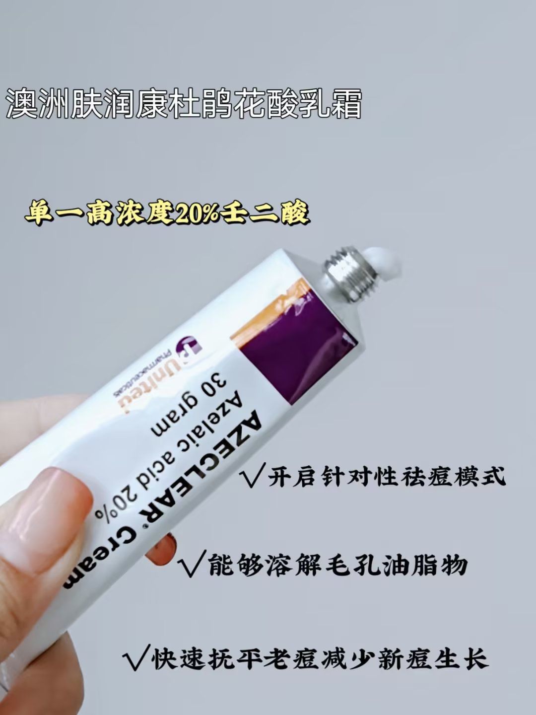 油痘肌姐妹们,我又被种草了一款祛痘小能手 它是来自澳洲有名的药妆品牌 就素介个💫澳洲肤润康杜鹃花酸乳霜 不得不说,壬二酸祛痘快准狠,一灭一个准 - 铝管包装,方便控量挤压 白色乳霜质地,没什么味道 好推开易吸收,上脸不油腻不厚重 一次1~2黄豆粒大小的量就够了,不要涂太多哦 而且它无需避光哎,早晚都可以用 - 成分也是妥妥的棒! 单一高浓度20%的壬二酸 √开启针对性祛痘模式 √能够溶解毛孔油脂物...