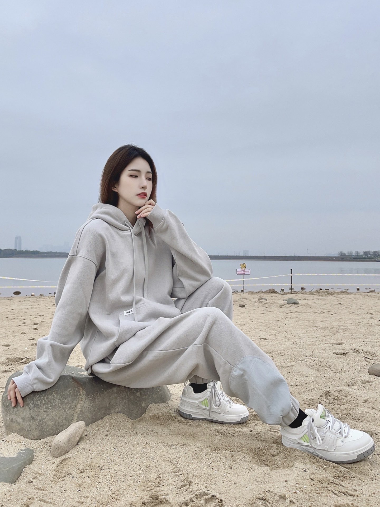 今天很随性搭配一身出门被要衣服链接 不得不说一身灰色系回头率很高~ 来自FOSS的连帽套头卫衣➕卫裤 浅灰色系自带高级感 给人一眼舒适感 衣服logo贴标设计精致 细节感满满 搭配一双灰白色系板鞋慵懒休闲 男女生都可以轻松驾驭的一套搭配喔~ 👔:FOSS #情人节送礼心得 #情人节约会穿搭 #男生收到倍有面子 #穿最亮眼的新衣 #FOSS