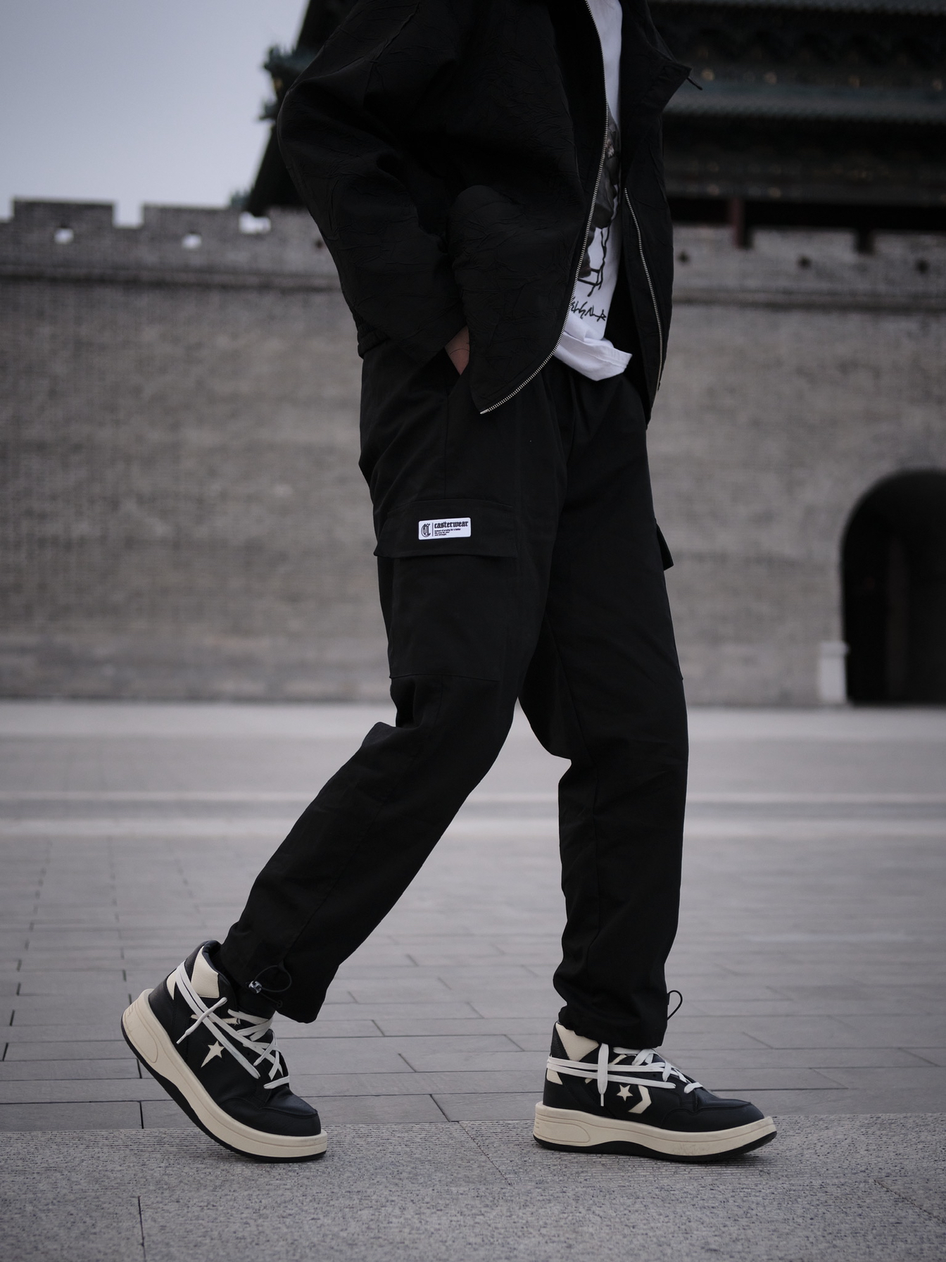 哟!wassup!大家好!春季出街穿什么,今天带来一组超酷的黑白cleanfit穿搭,快来一起看看吧~ 上半身内搭一件白色的印花T恤,外套选择褶皱黑色夹克,简单干净不失细节,立领设计上身也非常有型。 下半身再选择一条来自 CASTERWEAR 的黑色工装裤,宽松版型上身效果确实不错,裤脚抽绳的设计也很适合搭配各种鞋子,而且面料也比较硬挺。 鞋子选择这双黑白配色的RO X CONVER...