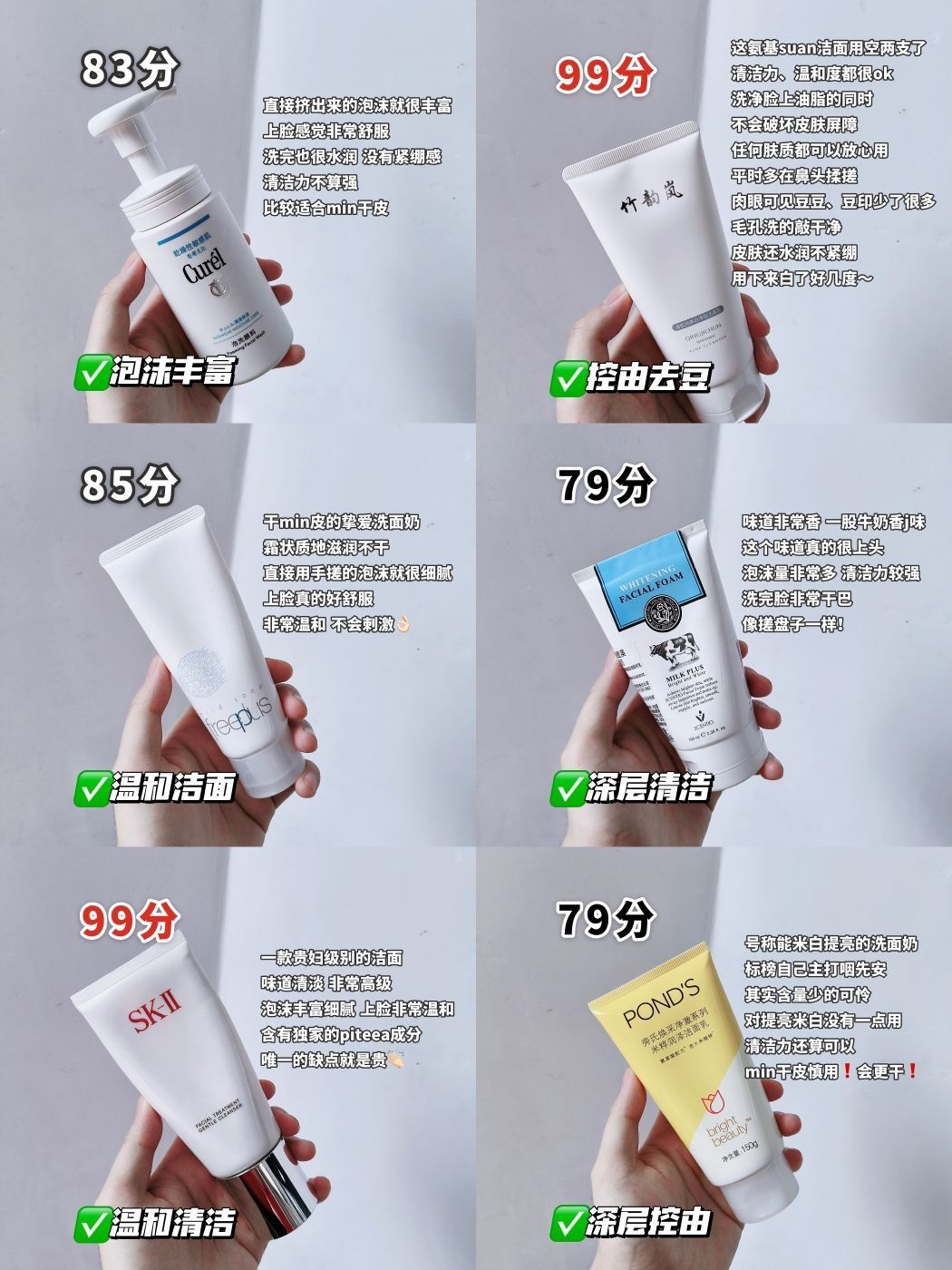 清洁是护肤的第一步,真的不能忽视 现在市面上的洗面奶琳琅满目,洗面奶选不对只会让肤质越来越差,测评了今年比较热门的几款洗面奶,最后这六款经受住了考验 准备要换洗面奶的宝子可以参考哦 同时科普一个洗面奶的小知识,希望可以帮助大家 六步洗脸法 1.洗脸前先把双手洗干净,洗掉细jun 2.水温要合适,最佳温度是32℃,帮助张开毛孔 3.洗面奶手心画圈,打出泡沫后再上脸,有需要的话可以搭配起...