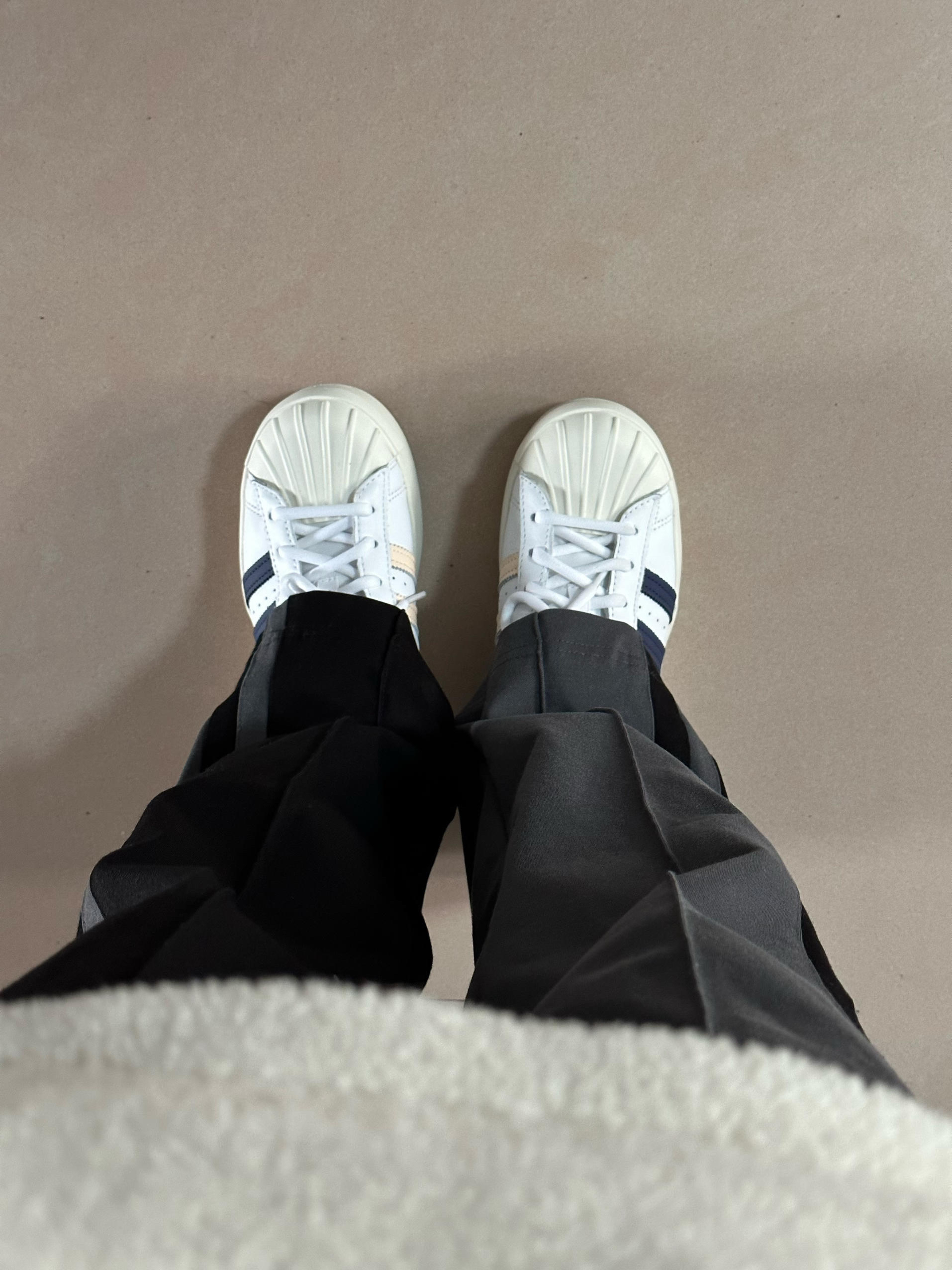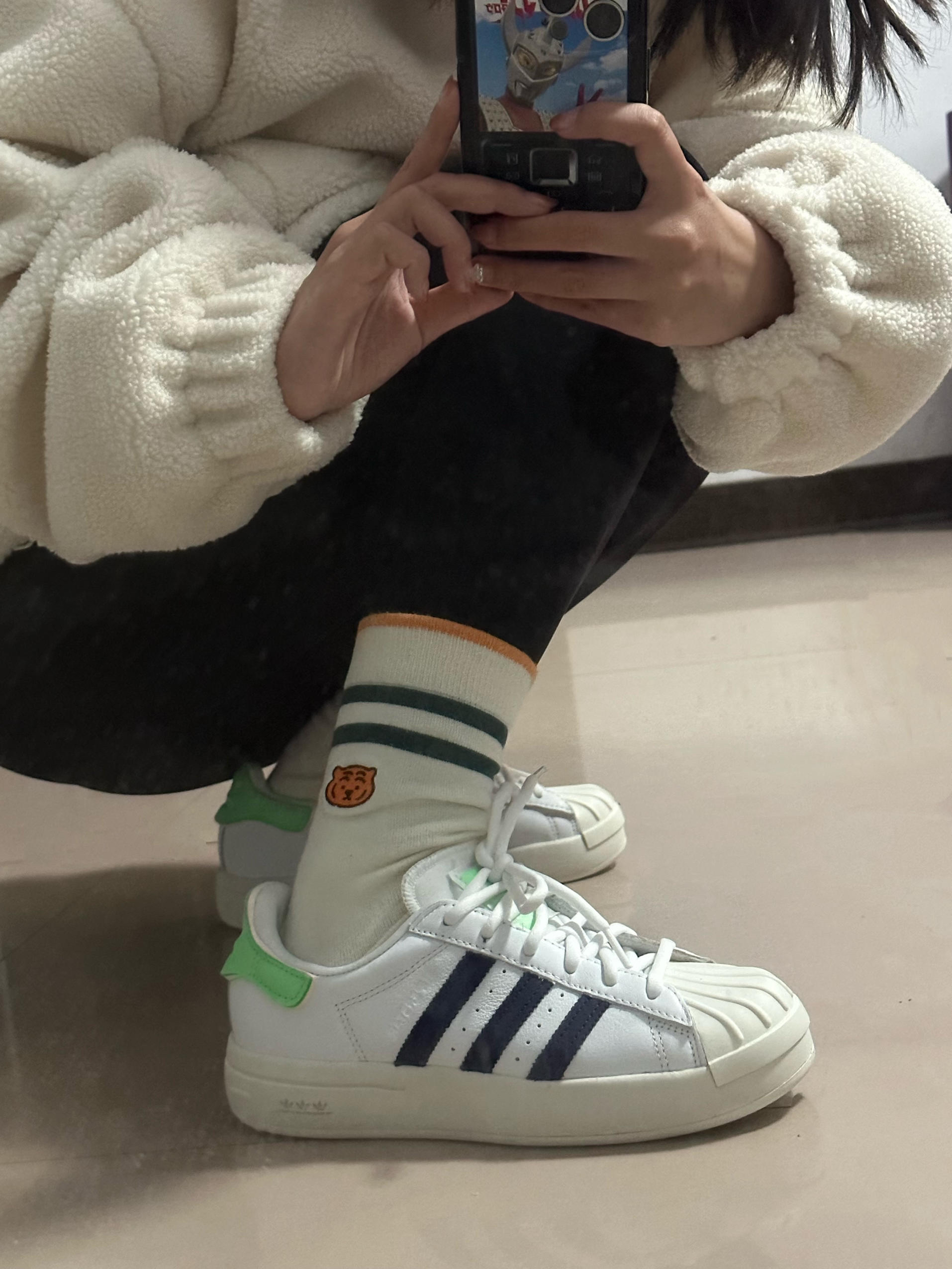 第一次买阿迪达斯的贝壳头买的是它的蛇纹! 好看是真好看硬也是真硬 后来看到有人推荐这双就觉得就决定是它了!果然厚底的贝壳头就是舒适度会更高!!! 我朋友喜欢橘尾那双 搭配起来会很亮眼 有喜欢的也可以去看看 可我真的爱荧光绿!!!