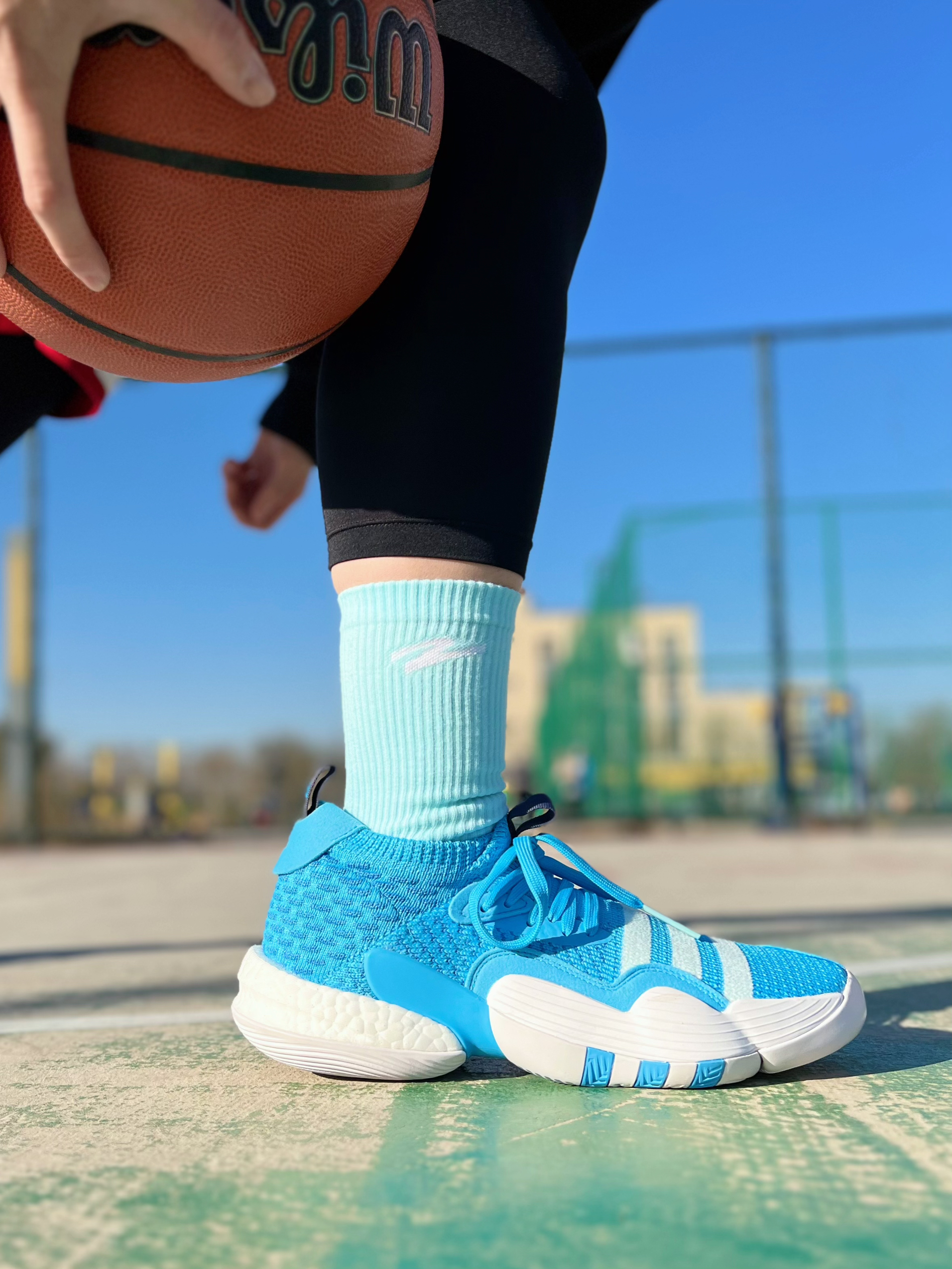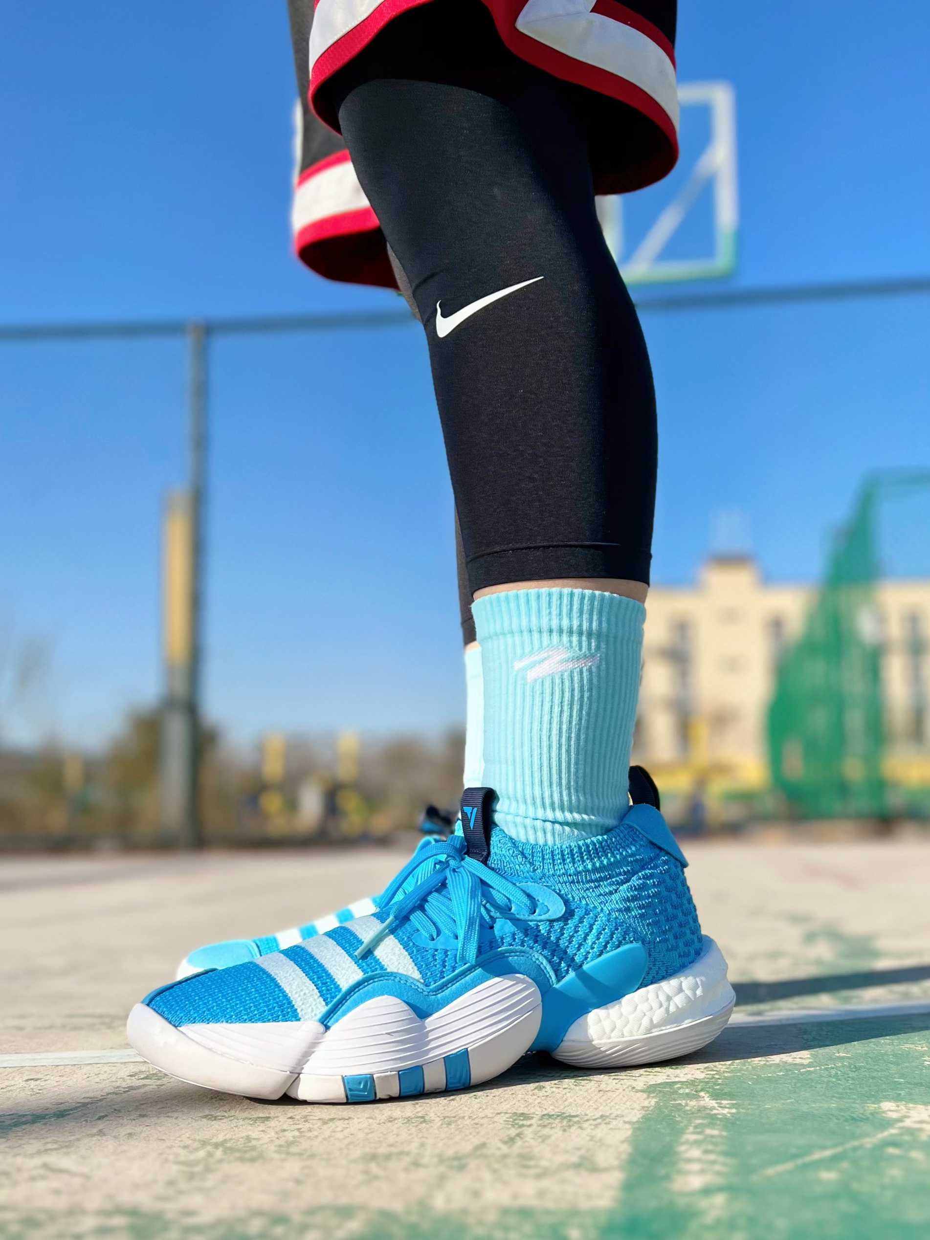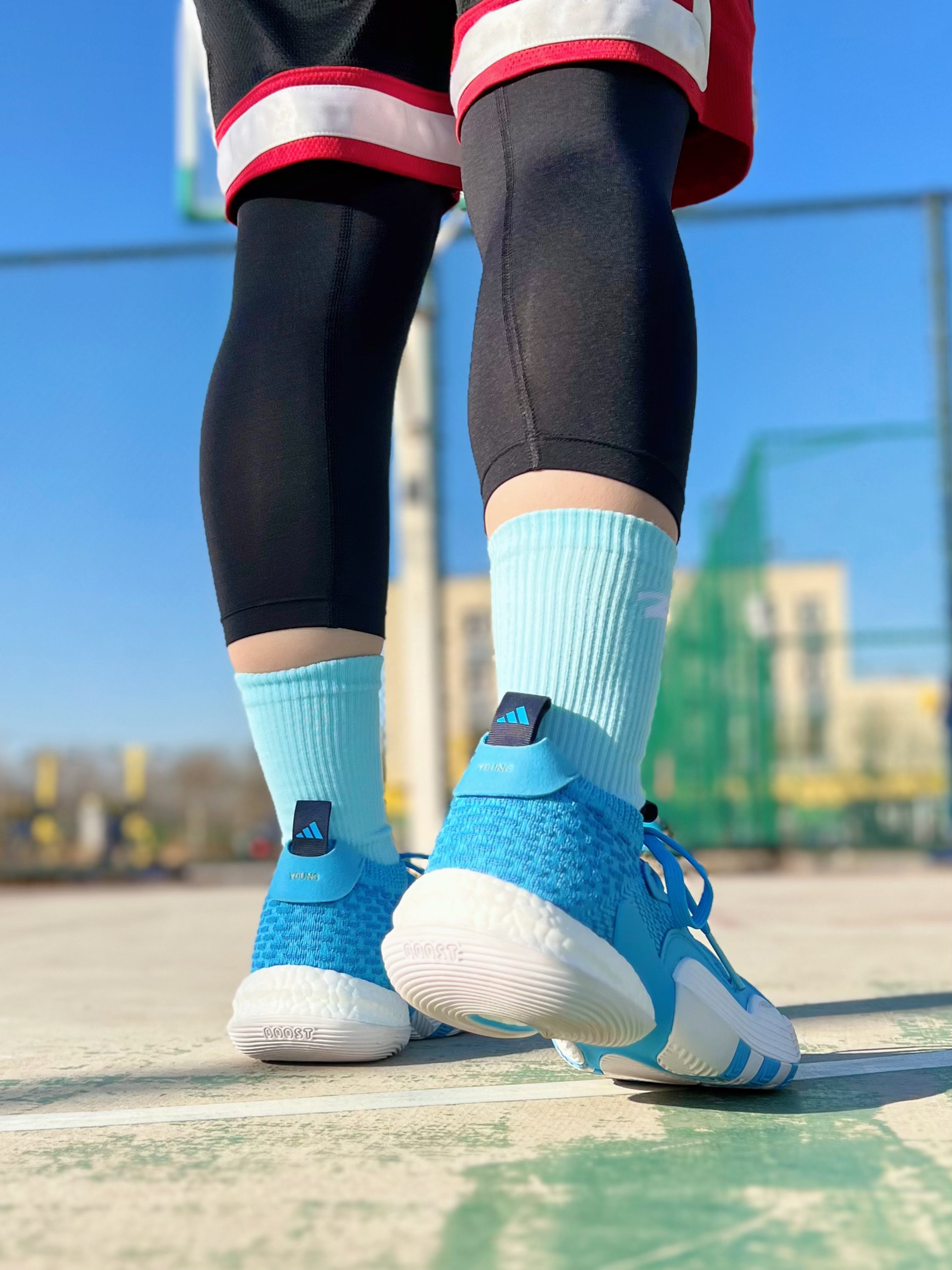 一直在穿的有志者UZIS又推出了新款篮球袜,正好这两天去球场打球搭配上篮球鞋就非常帅气,来和我一起看看上脚后的效果吧~ 第一双吹杨2北卡蓝搭配大Z系列1.2PRO天蓝色篮球袜,同色系的搭配简直不要太帅!袜子的舒适度也是非常高的!高弹袜口不勒脚,长时间穿着也不会变形,以及脚踝部分的加厚设计,叠加横向包裹条带来更强的保护性,再加上后跟处的V字支撑结构,能够有效稳定双脚不易打滑,充分做好每一个动作! ...