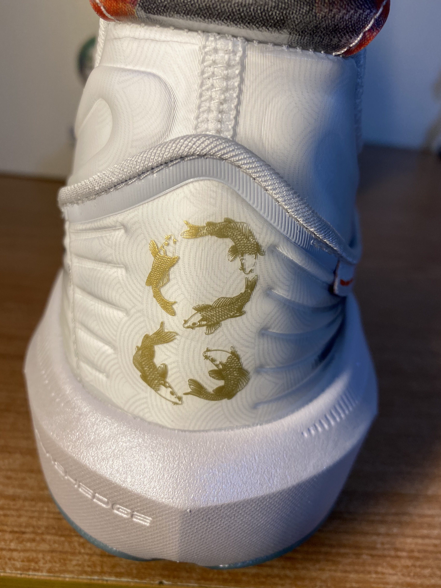 这次的kt8锦鲤,由于kt8这个鞋型本身很流畅,就感觉和锦鲤特别搭,kt8实战也很不错,整个锦鲤配色也很好看,喜欢的朋友不要错过,鞋楦宽脚也可以穿的,放心买。