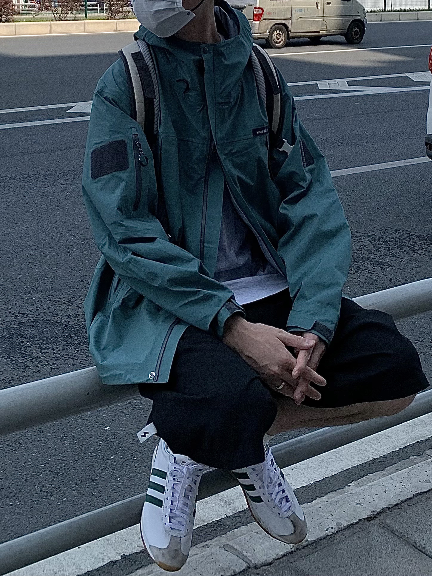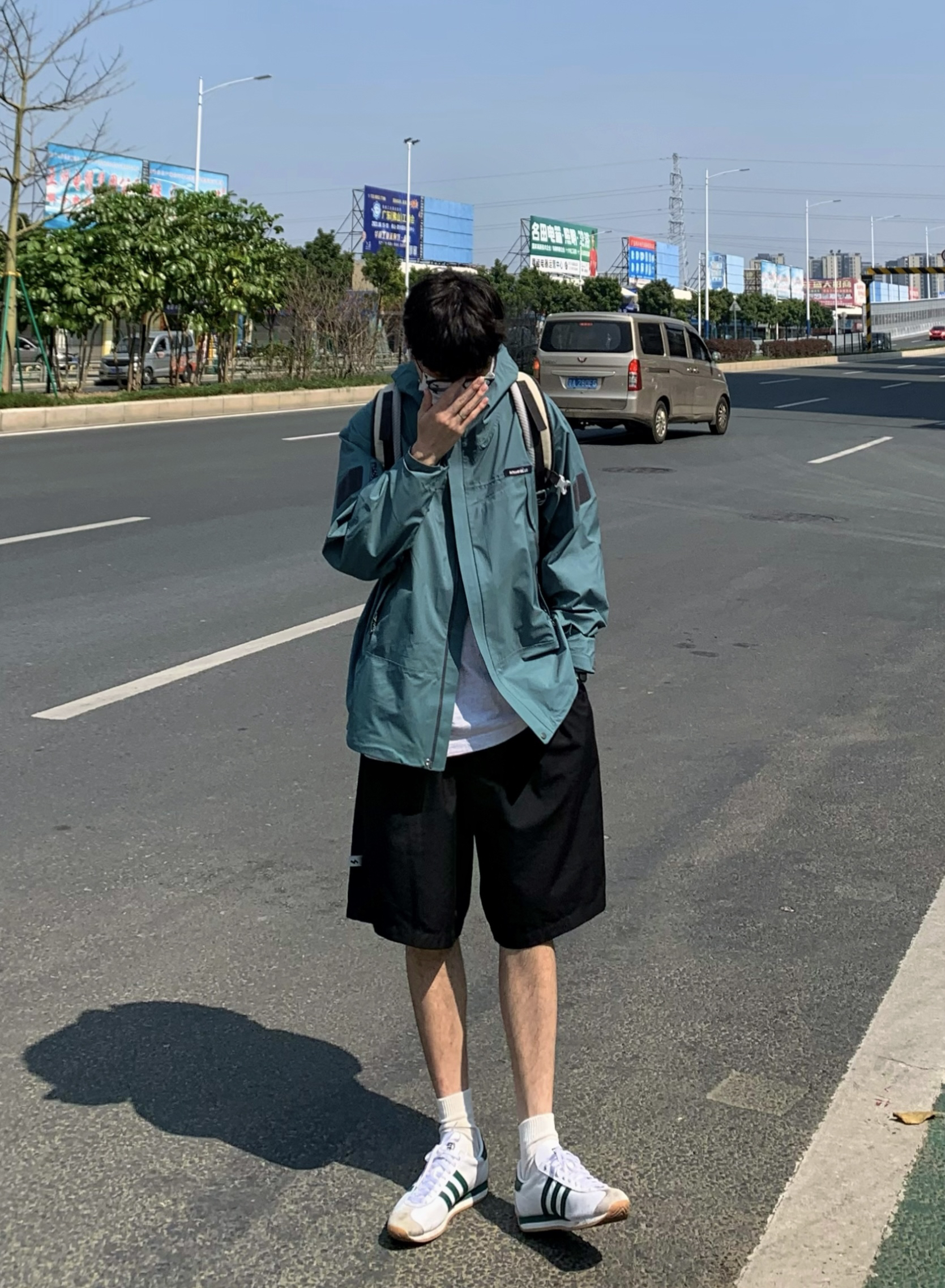 上衣 墨绿色冲锋衣 初春少不了一件功能性冲锋衣 墨绿色太显白了 双拉链设计很方便 多口袋防水面料实用性也能够兼顾 裤子 纯色五分裤 西服面料顺滑 黑色短裤日常百搭