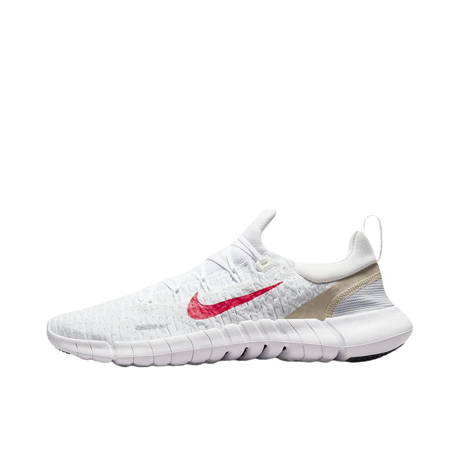 Nike Free RN 5.0低帮休闲跑步鞋,白红,可回收材料,采用至少20%的再生材料制成,缔造出众舒适脚感,助你在跑步和日常活动之间自如切换。透气织物与合成材质组合鞋面,柔韧灵活打造出色近地感。焕新升级的缓震系统,令你舒适畅动,助力畅跑。