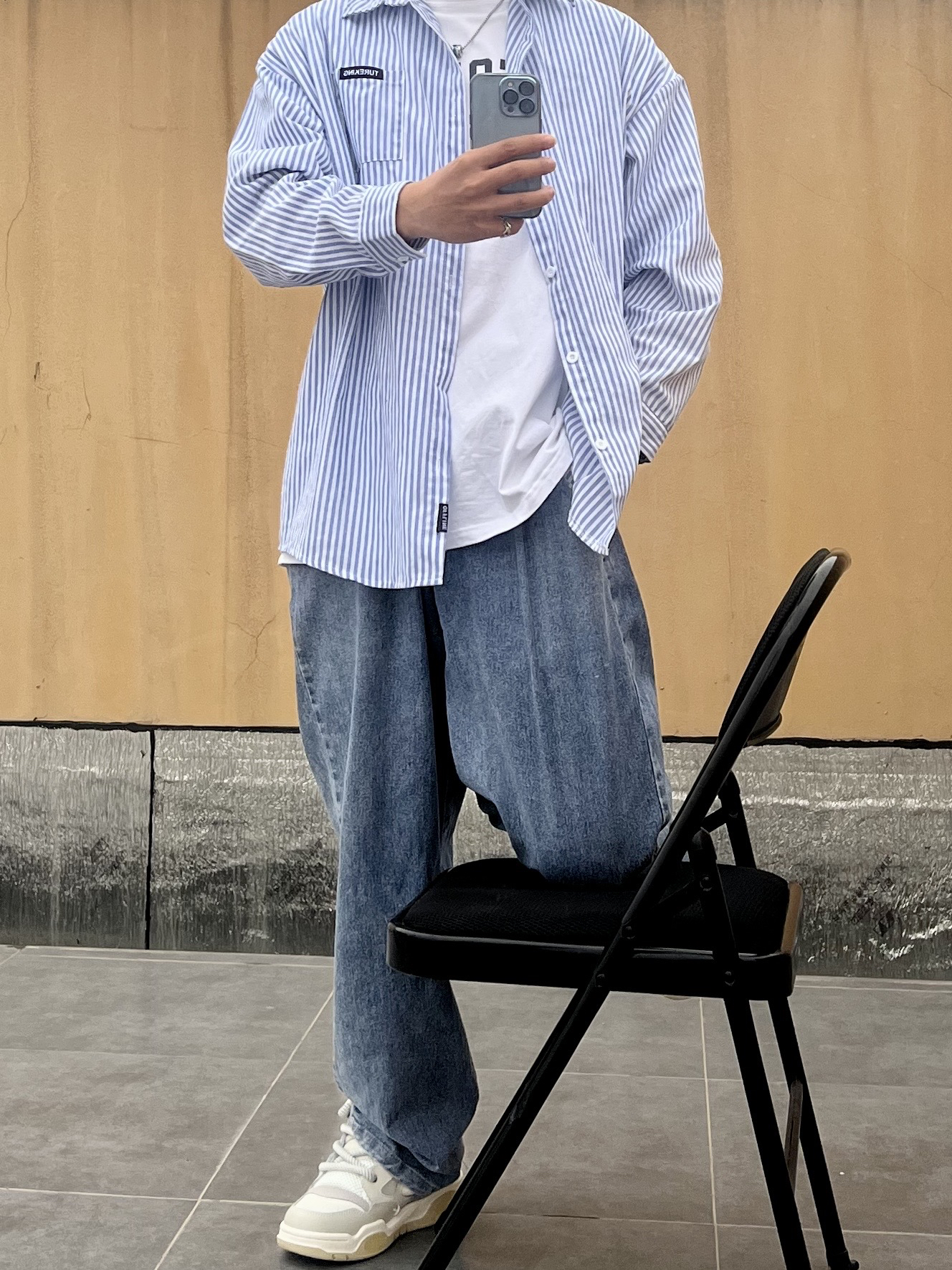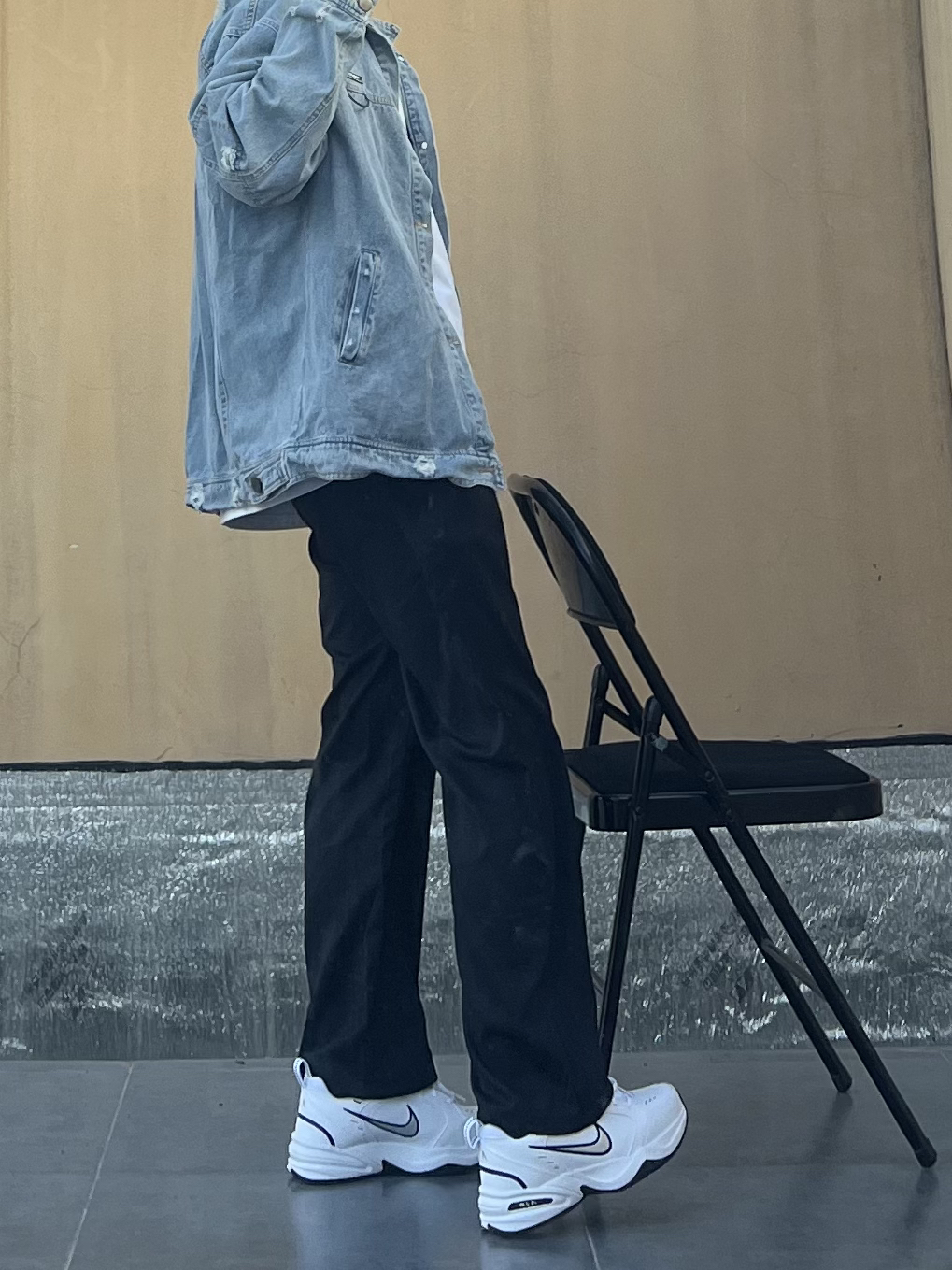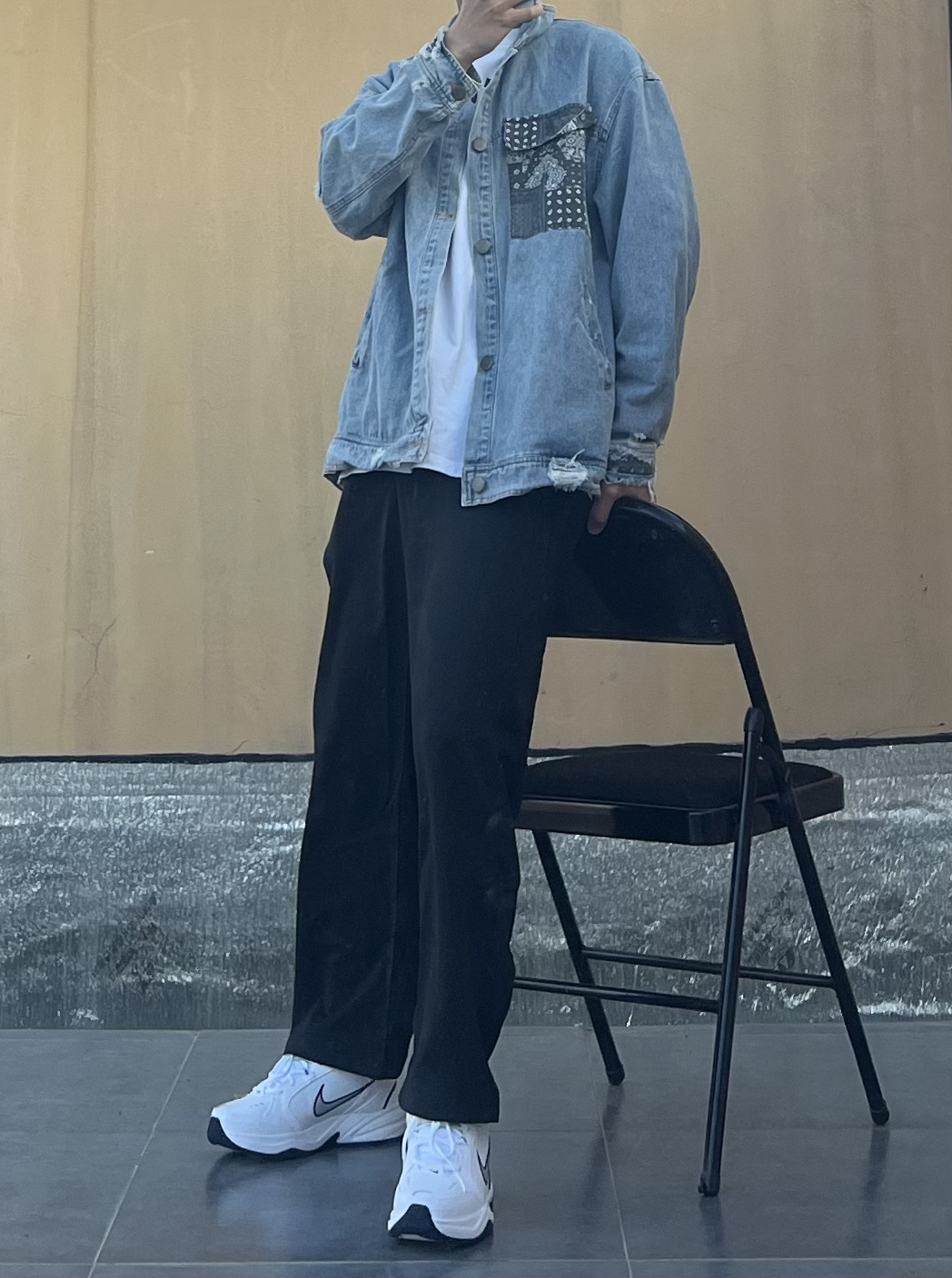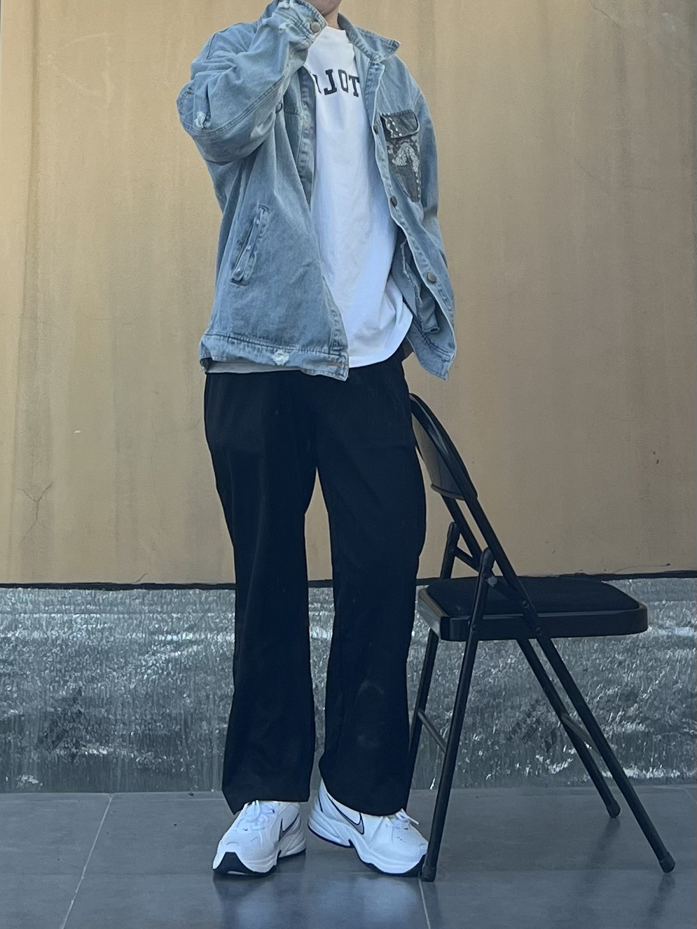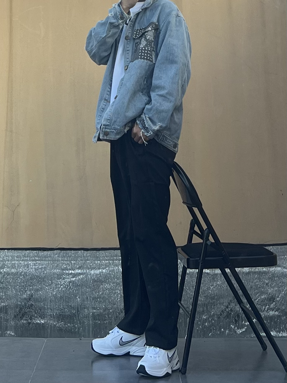 👔 上衣:上衣是一件腰果花牛仔裤 内搭一件白色T恤 👖 下装:裤子是马布里家的爆款 休闲裤 还是蛮不错的面料挺舒服 👟 鞋子:再来一双经典复古潮流老爹鞋 非常完美