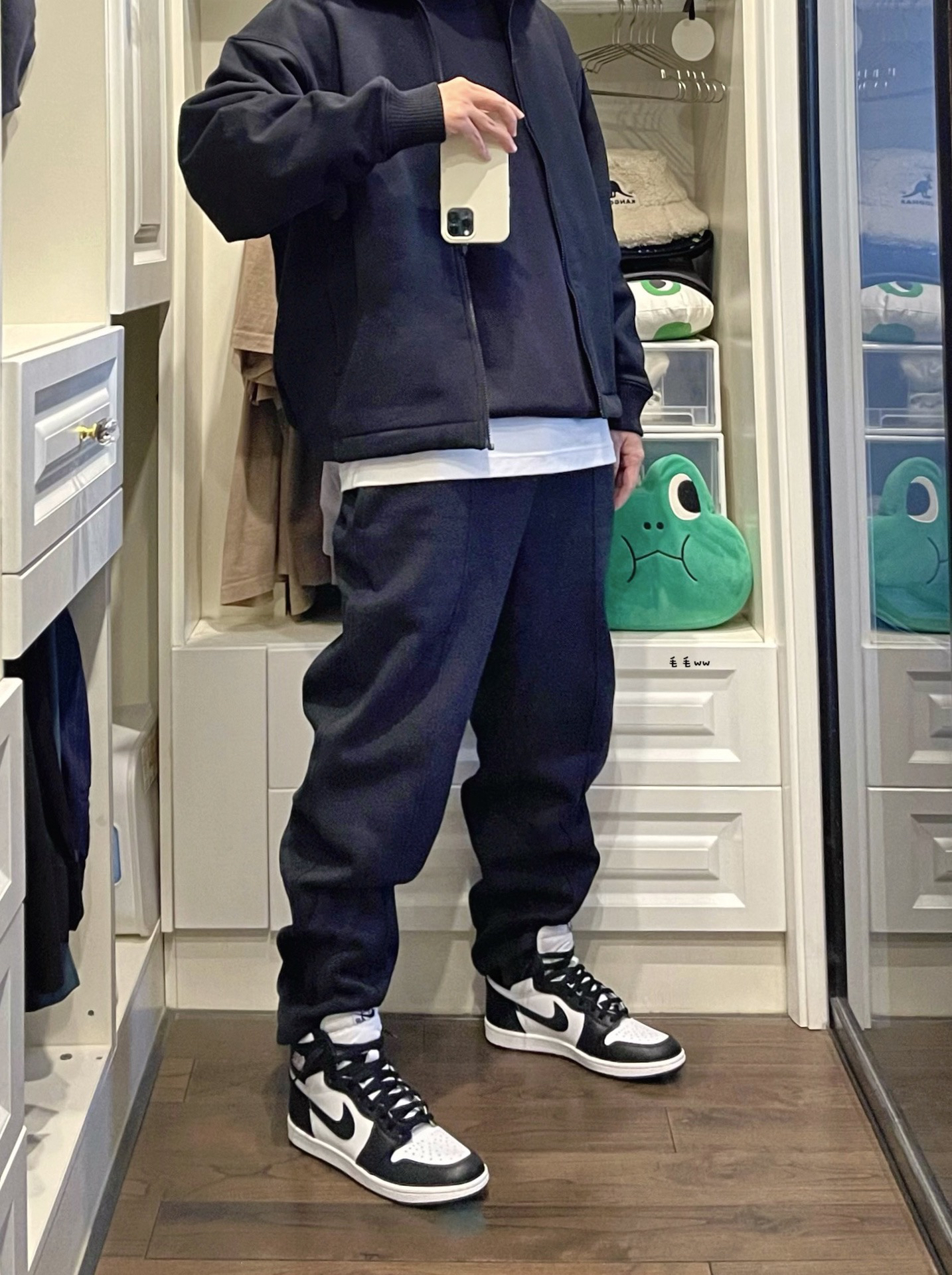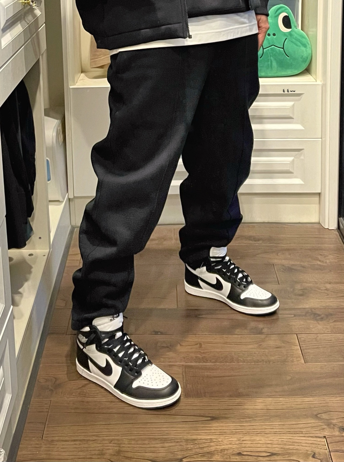 AJ1 '85|黑白系穿搭|||⛹🏽乔一,最受欢迎的Jordan Brand正代之一 🔢85鞋型,自乔治城之后,迎来第四个配色 . 🐼黑白一代,不仅耐看易搭,复刻次数也极少 🪢高帮设计,轻松匹配卫衣裤,束口平口皆可 . —————— . 👔Uniqlo U / 452937 / 黑色 // XL . 👖Uniqlo U / 452939 / 黑色 // M . 👟Air Jordan 1 '85...