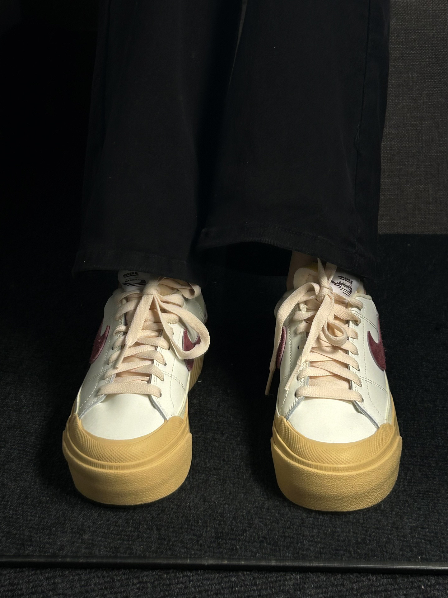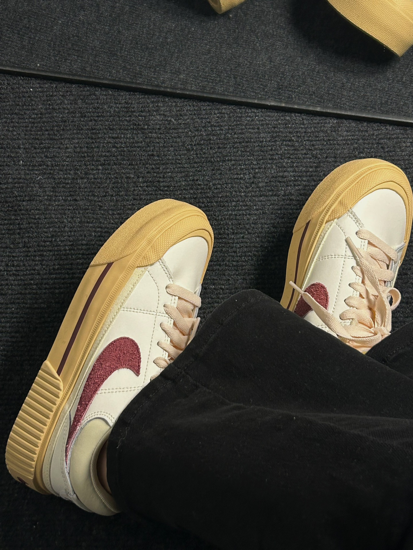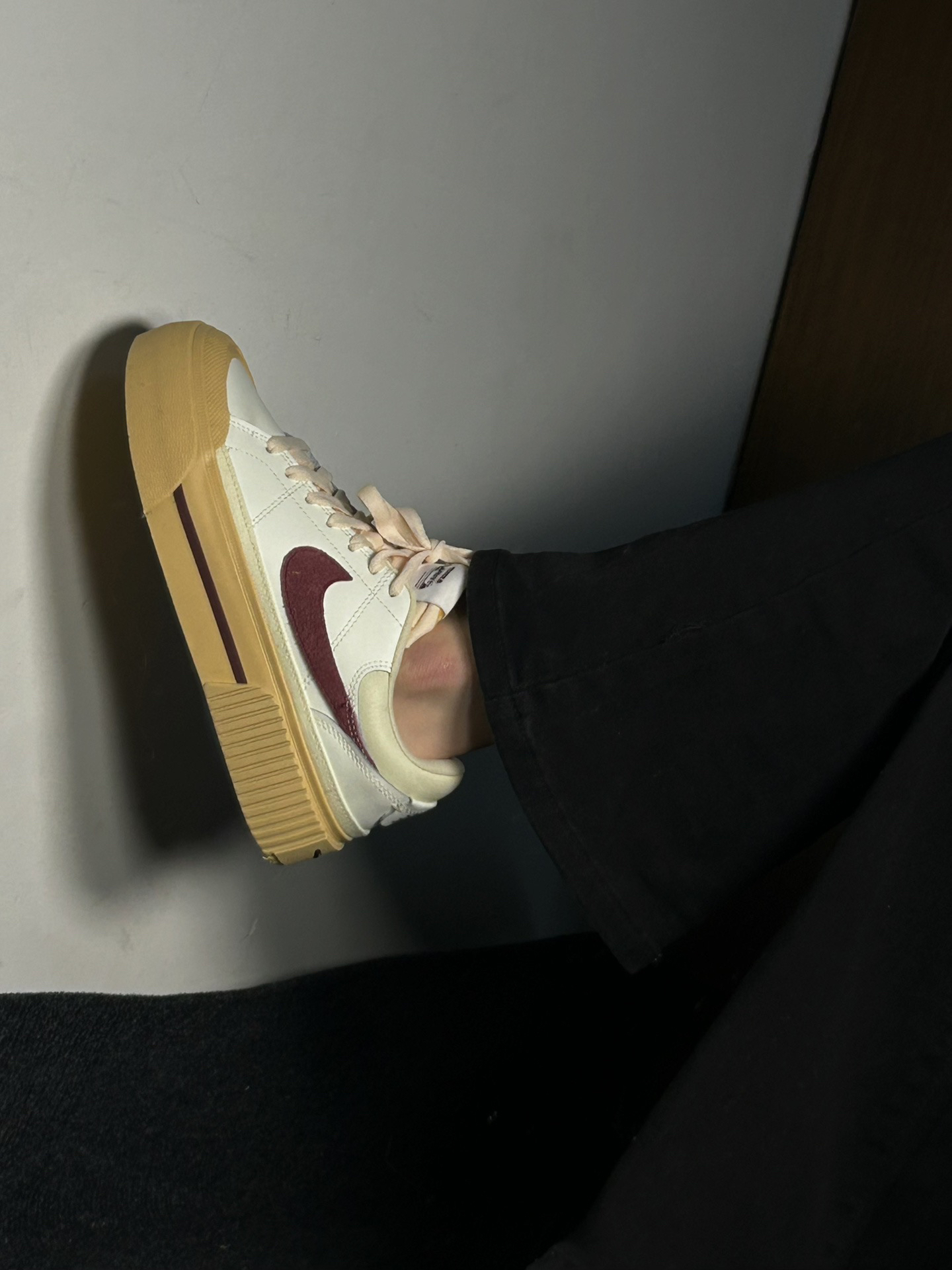 美丽不止一点点的nike复古小板鞋🥰太心水啦|||上班第一天当然要穿小红鞋 红运当头[doge] NIKE COURT LEGACY的新款~ 椰奶白加复古红,实物真的吼吼看! 有点vintage感 4cm小厚底 带点增高效果~