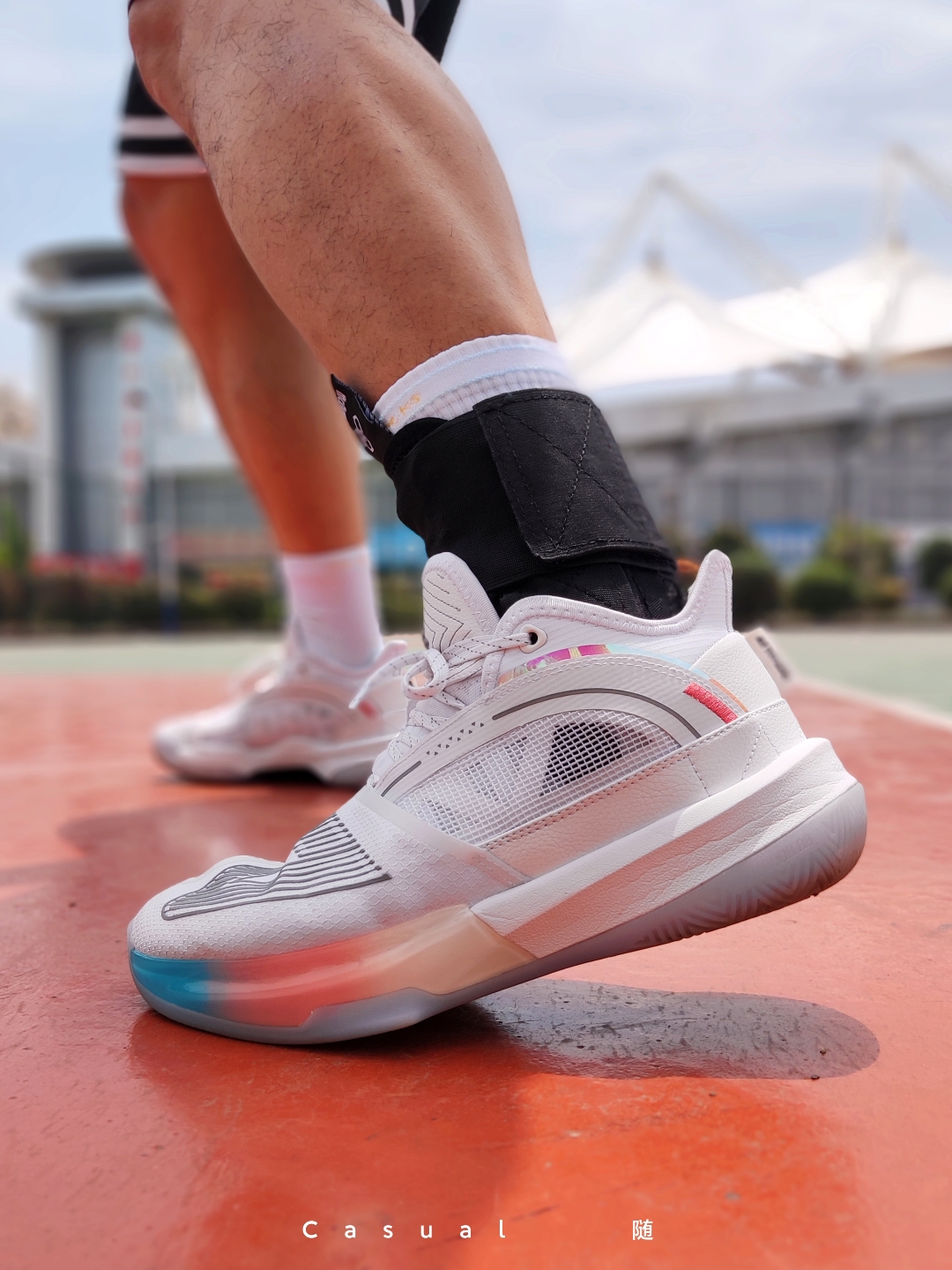 李宁 超轻2022迎来V2低帮版本,对于喜欢轻质低帮以及贴地感的小后卫来说,无论颜值还是性能都很合适! 👟配置上的变化 1⃣️鞋面改为前段䨻丝鞋面!后段是COOLSHELL! 2⃣️碳纤维布取消了内侧只存在于外侧了! ⛹️其他配置 1⃣️全掌lightfoam plus➕前掌䨻! 2⃣️单只42码350克左右! 🏀实战初体验|优缺点 1⃣️包裹紧致,鞋楦窄,宽脚必须买大半码!初期略微掉跟!前掌内...