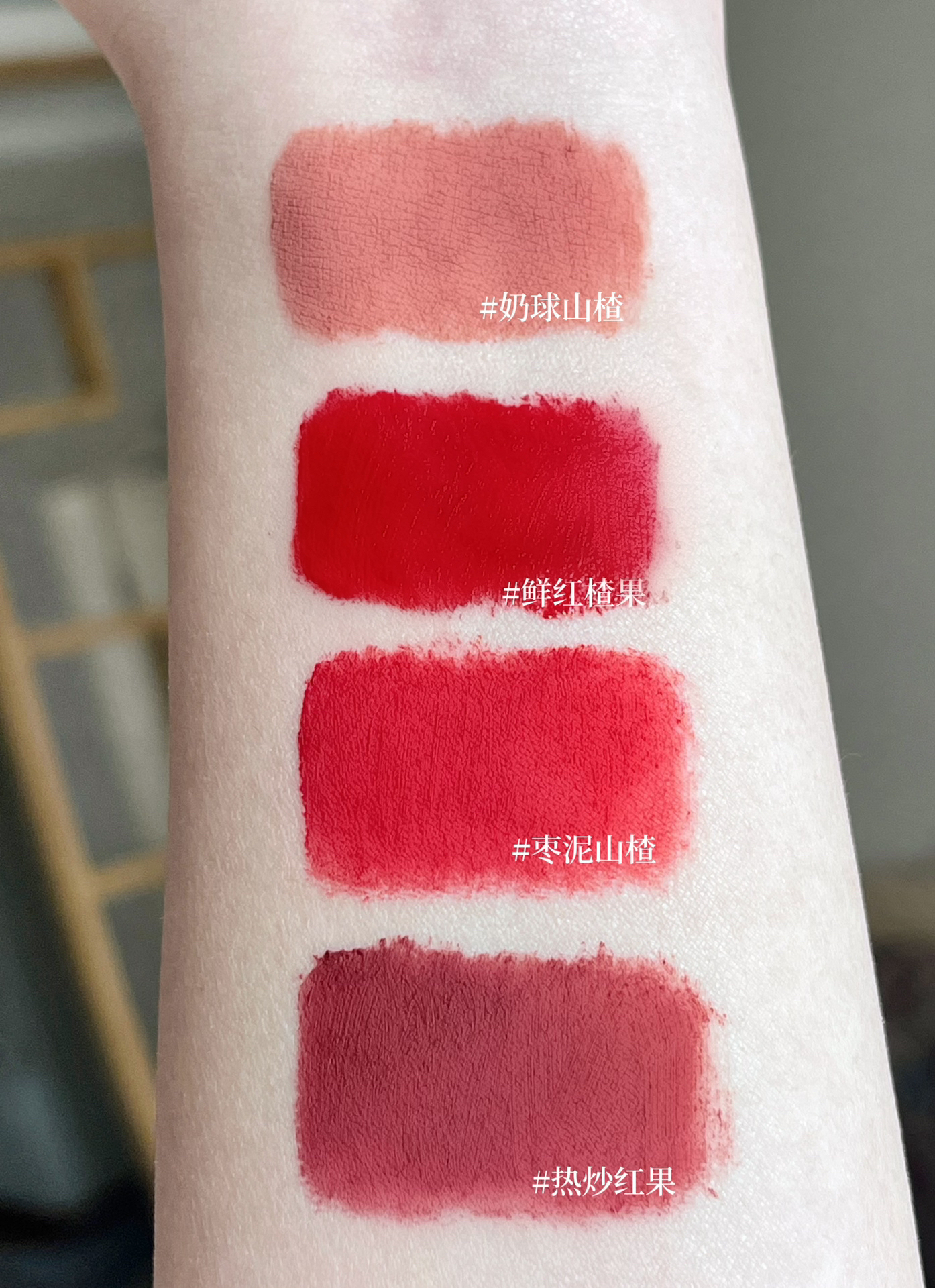 红扑扑的包装是种热闹的感觉! 黑兔糖葫芦唇泥 日常的话看枣泥山楂!热炒红果是个好看的灰粉棕!