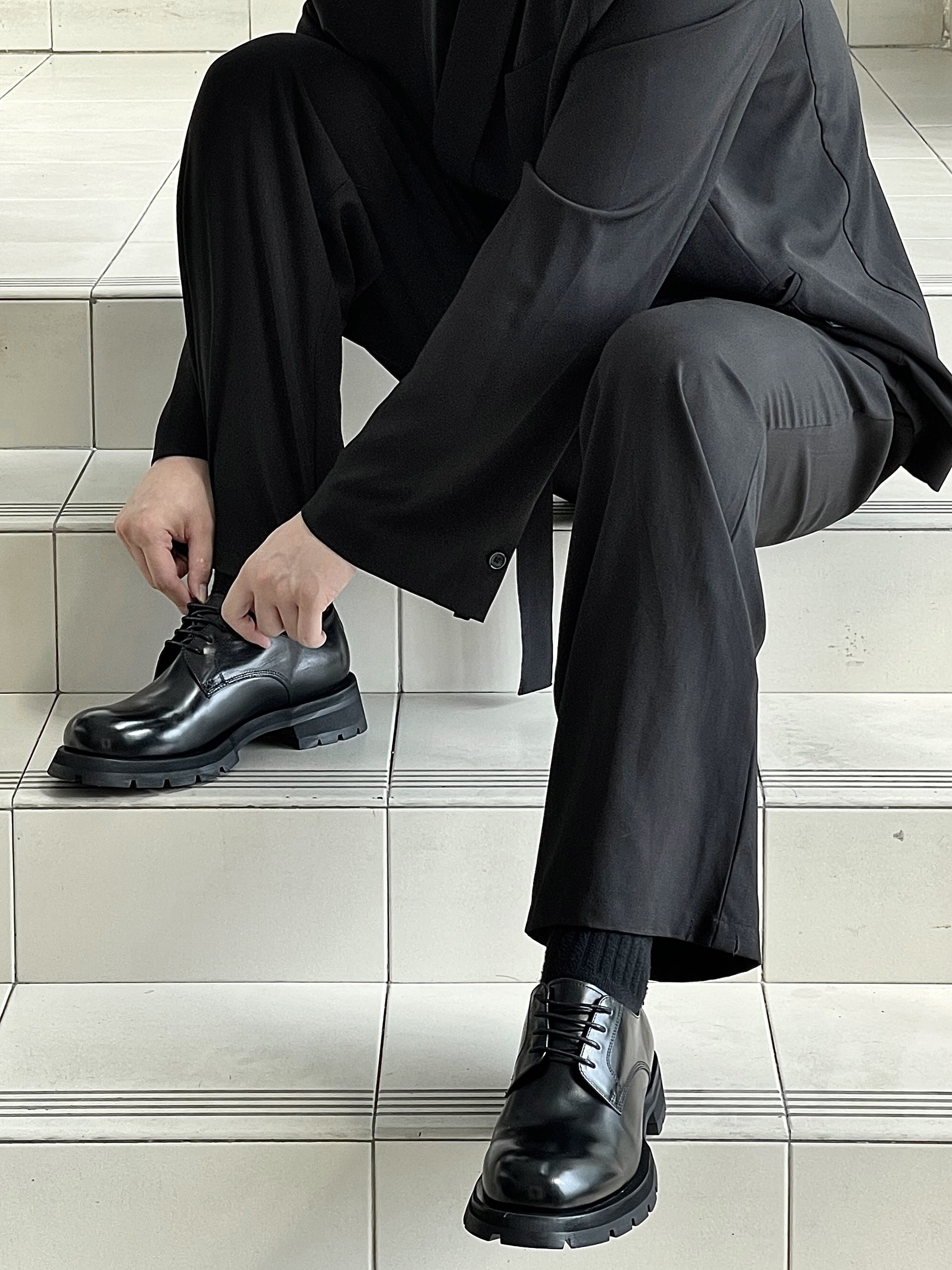初春穿搭的较量开始了🆚 对于色彩穿搭怕出错的 一定要试试纯欲纯黑的穿搭‼️ 纯黑的搭配可以说是相当耐看, 而且不管怎么穿都不会出错 简单的穿搭就可以营造出高级感的氛围了 纯黑西装套装➕厚底皮鞋👞 ✅穿西装,皮鞋👞真的少不了, Viplander厚底德比鞋👞 小众不撞款,男生百搭黑色皮鞋 设计感强,鞋内鞋外都用到非常优质的皮料,🔨质感超赞,比皮鞋偏大一码,比运动休闲鞋偏小一码⭕️ 👞:Viplan...