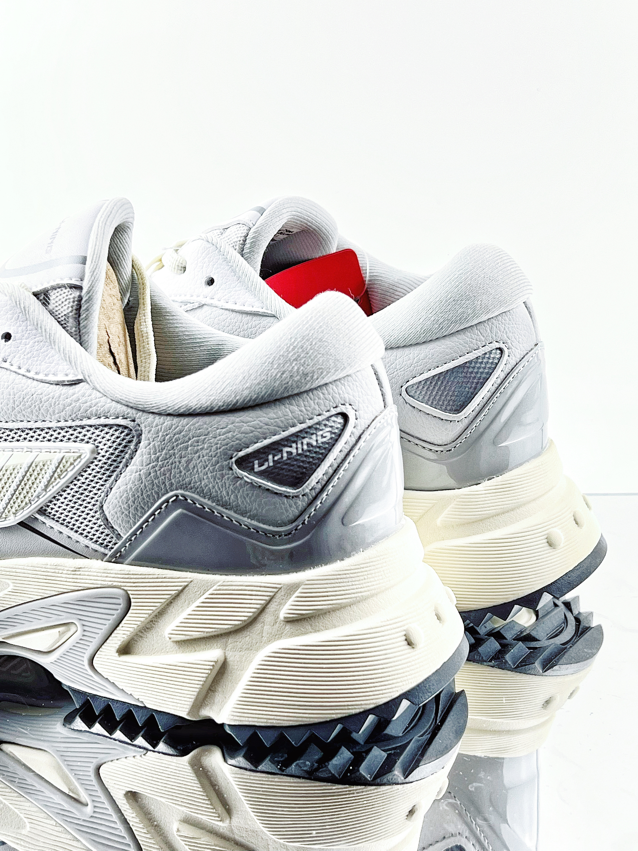 开箱即分享 今天为大家开箱一款高颜值休闲跑鞋 南极灰的配色还是比较的经典百搭 加上复古的鞋型给人一种高级的感觉 有种李宁的巴黎走秀款 鞋面采用了织物和皮革的拼接设计 层次感很丰富、透气和支撑问题也不大 侧面的李宁LOGO很特别 整体的外观颜值还是蛮好看的 后跟以及足弓都加入了TPU抗扭片 来提升整体的抗扭稳定性能 静态上脚的感受也是比较的韧弹 中底加厚的设计也可以打来2-3cm增高效果 复古设计的...