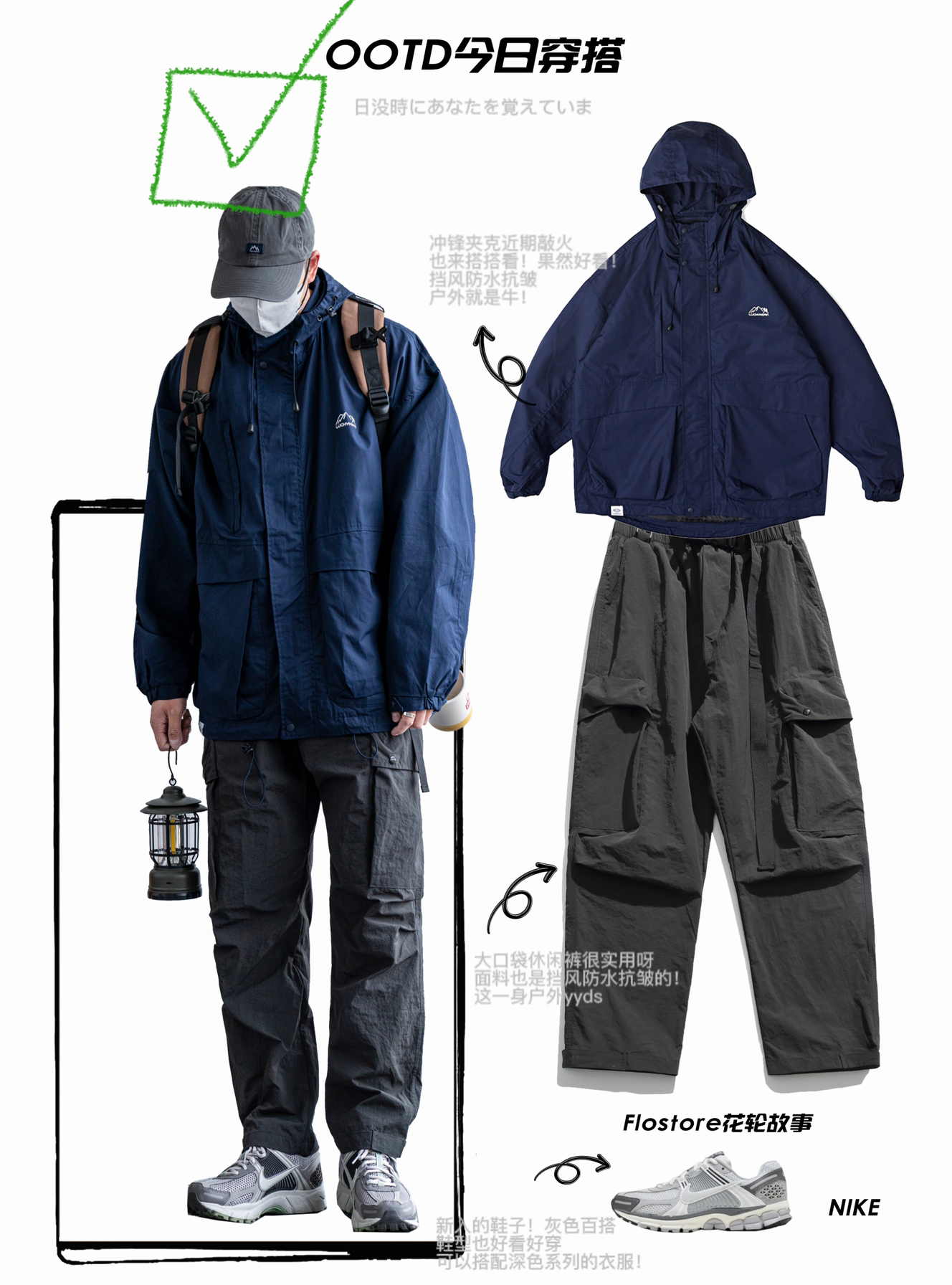 户外风yong不过时🥺 经典又有设计的穿搭可不能错过❕ 🧃颜色都是很户外色,看着就很护眼哦! 面料材质也是很省心,挡风防水抗皱,户外yyds❕ 做工设计也是采用多口袋多分割来增加它的实用性〰️ 🗣️整体很舒服,户外徒步出街都很ok! - 模特:身高172CM | 体重62.5KG