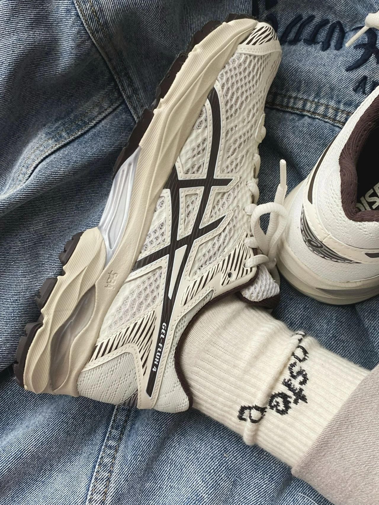 本篇笔记关联了Asics/亚瑟士 Gel-Flux 4 跑鞋 包裹性舒适缓冲复古越野短跑慢跑织物轻量回弹合成革运动 白色/棕色等商品,为用户提供真实的使用体验和购买参考。