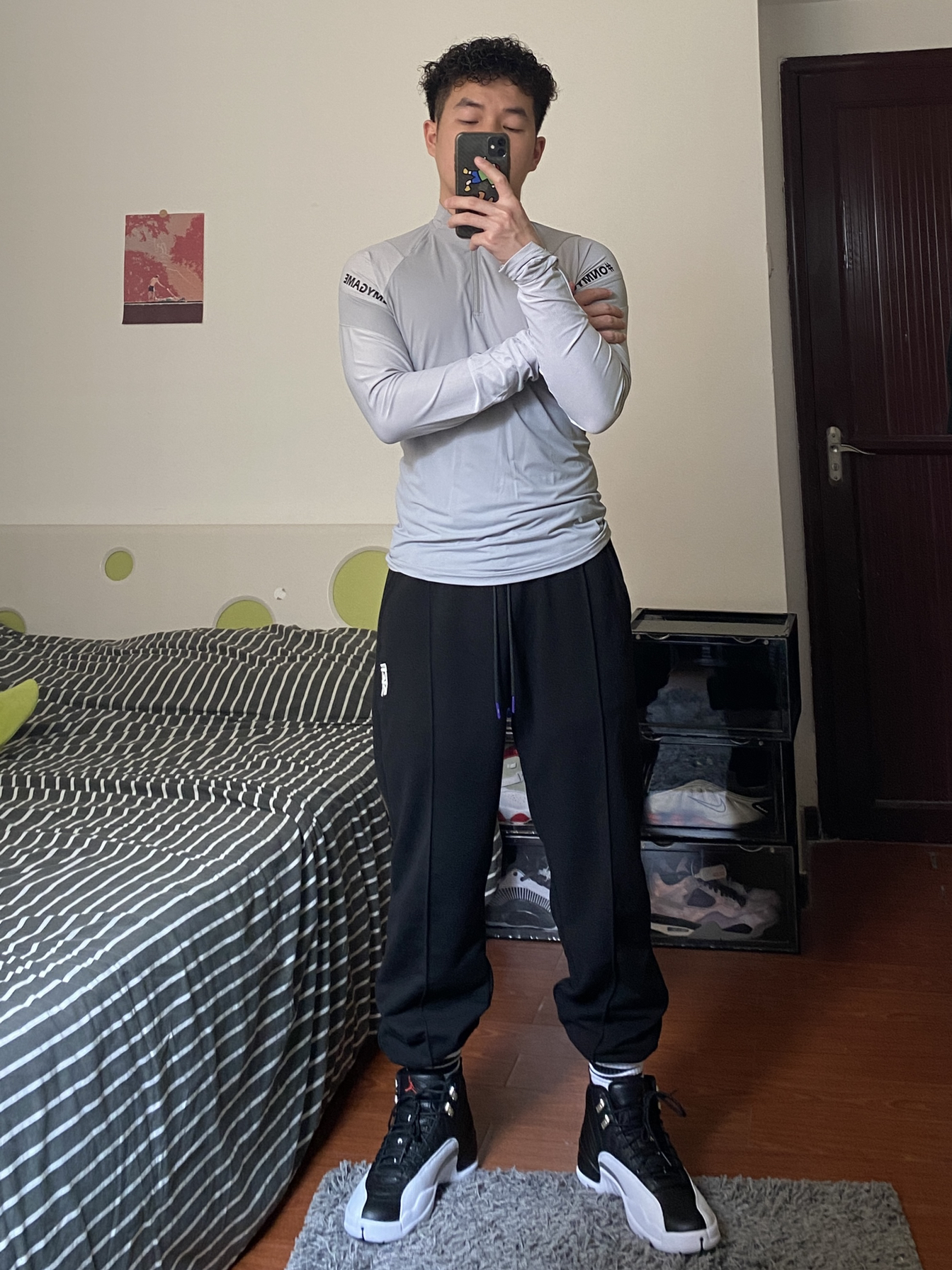不得不说卫裤真的是穿搭必备 运动可以穿 休闲穿也很cool~ 这条卫裤之前买了两件灰色 这次买件黑色的搭配 材质还是很舒服 穿起来很亲肤 运动时也很舒服透气 版型也很美式 独特中缝设计真的很好看