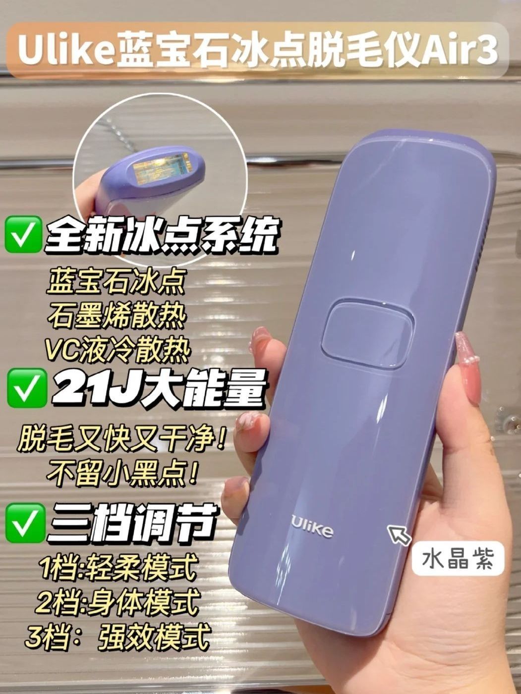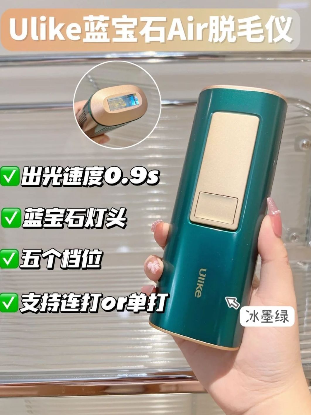本篇笔记关联了Ulike Air2蓝宝石冰点脱毛仪 家用全身无痛激光 冰墨绿、Ulike Rose蓝宝石红光嫩肤冰点脱毛仪 腋下小胡子 蓝宝石冰点Rose、Ulike Air3蓝宝石冰点脱毛仪 全身腋下无痛脱送女生礼物 水晶紫等商品,为用户提供真实的使用体验和购买参考。