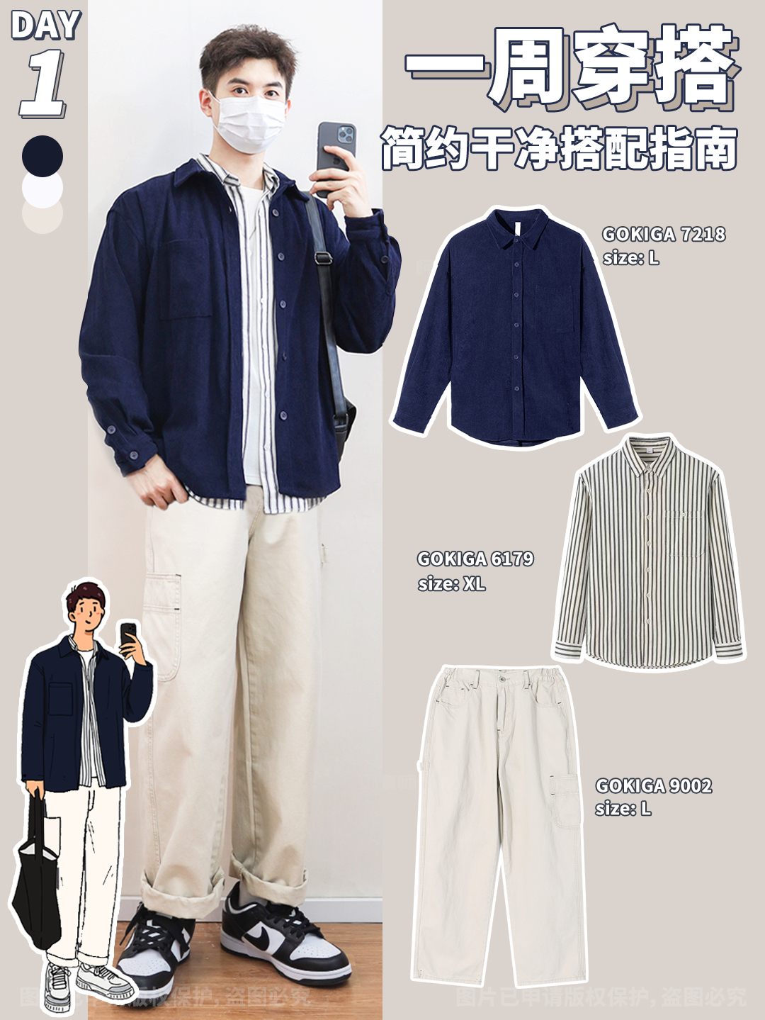 hello!我是阿豪师兄 我觉得在春天整体就是要穿得干净清爽,在搭配上不需要过多追求装饰,通过色彩搭配让整体耐看高级!🔵本期穿搭就用干净清爽的蓝色作为主色来搭配不同的look!快get起来吧‼️ . 👕身高体重:178/135 . ✅穿搭公式: Look1: 驼色登山外套➕蓝色长袖衬衫➕米色工装裤 Look2: 深蓝冲锋夹克➕黑色连帽卫衣➕浅蓝牛仔裤 Look3: 浅蓝牛仔衬衫➕白色打底➕米白色工...