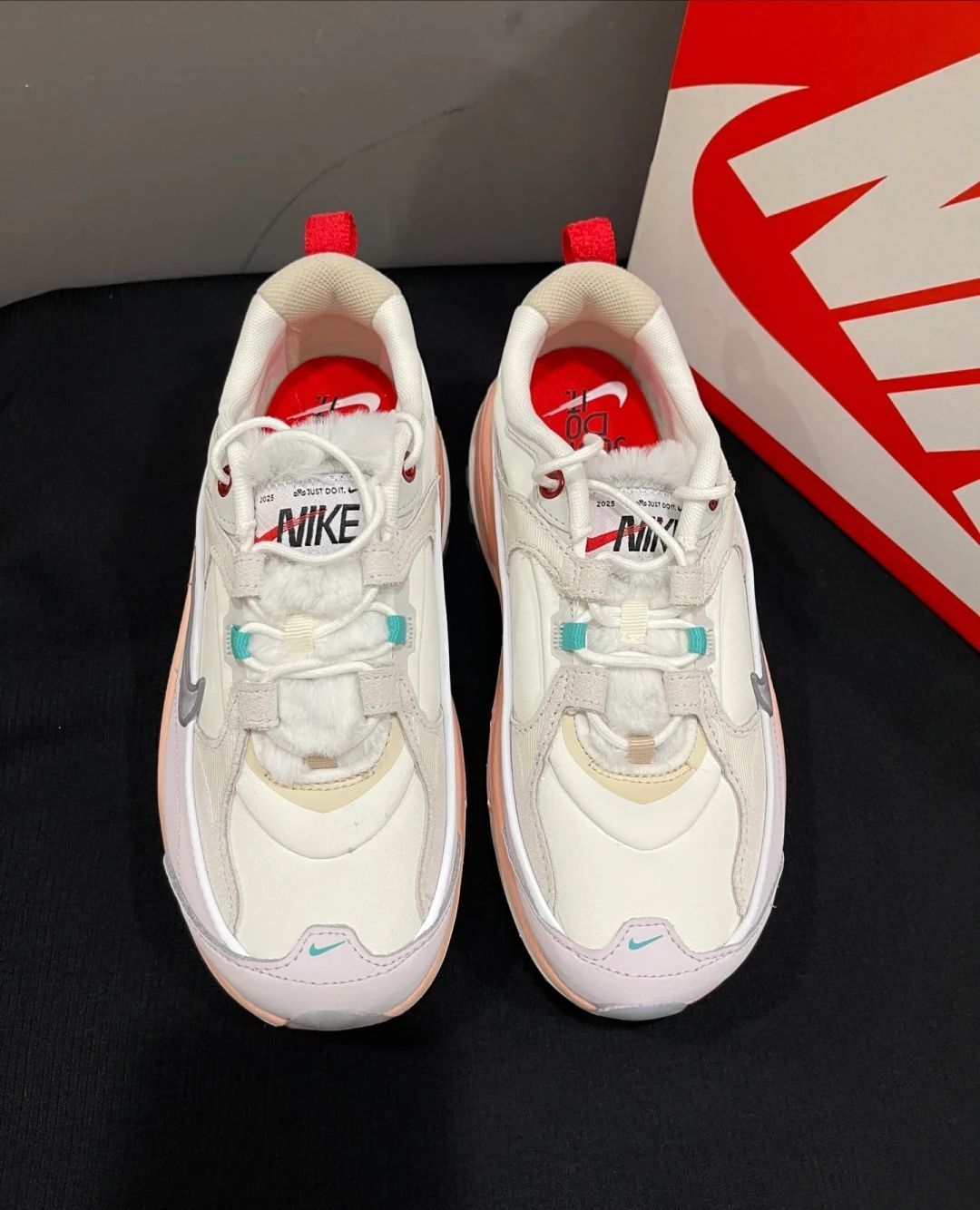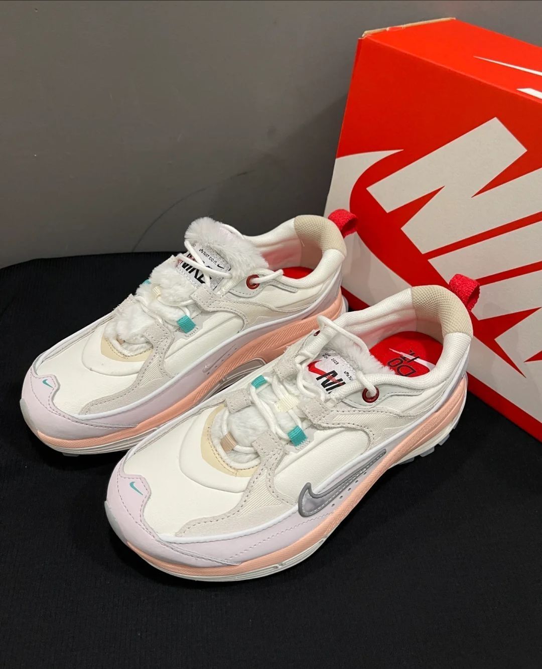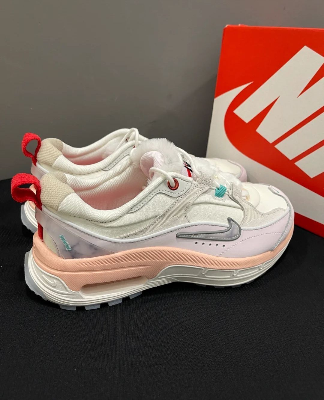 Nike Air Max Bliss运动休闲鞋,白粉,此次从兔年汲取设计灵感,采用堪比小兔尾巴般的毛绒鞋舌,为鞋款平添一抹好运。
