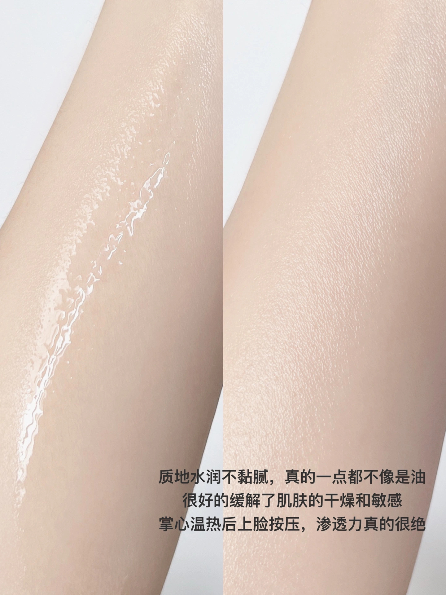 它的质地水润不粘腻,很好的缓解了肌肤的干燥和敏感