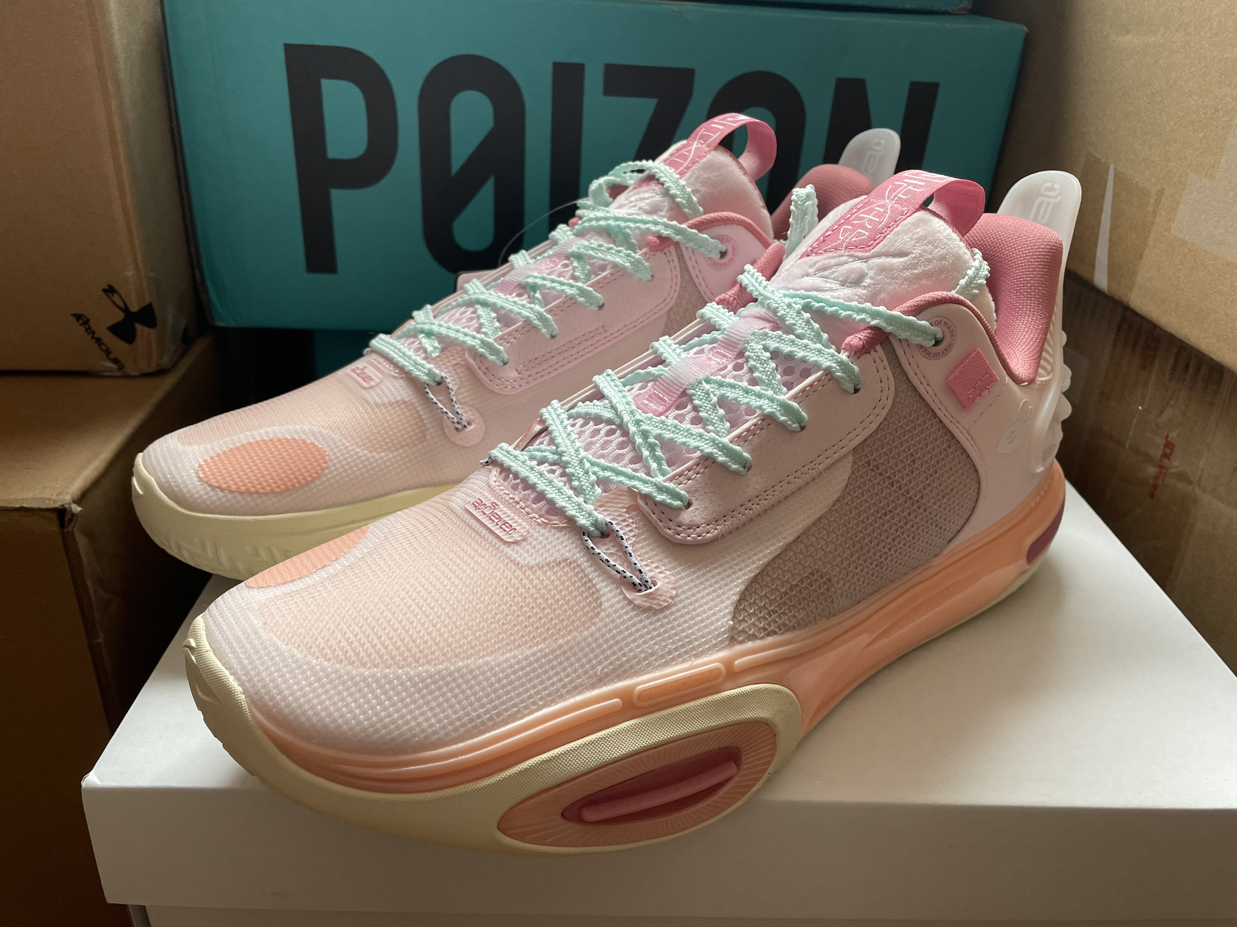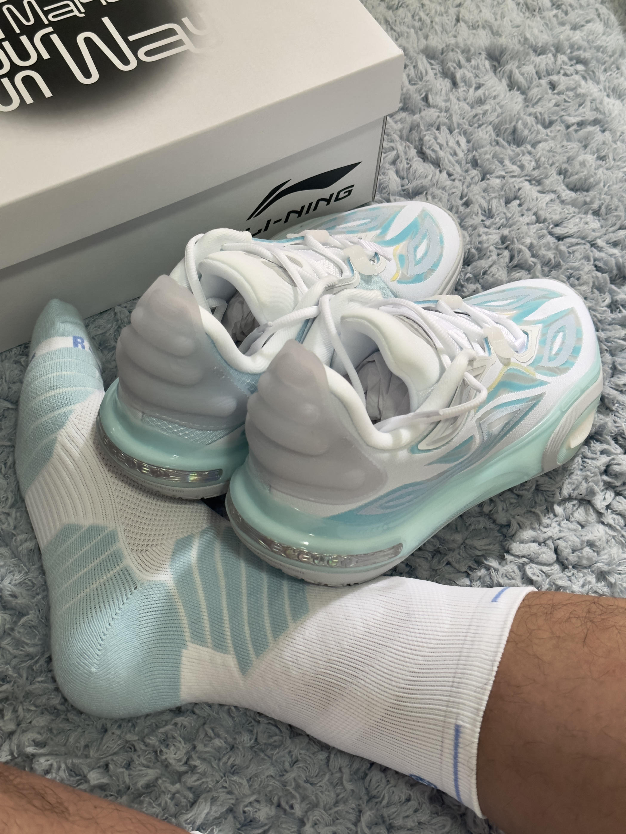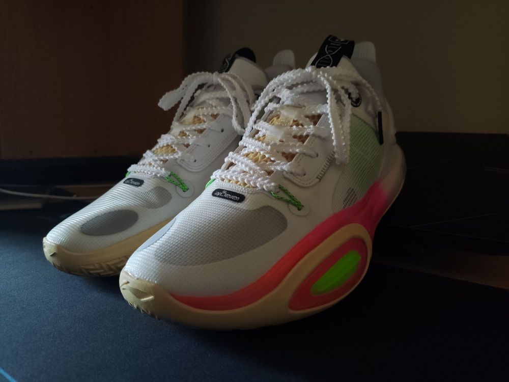 李宁 全城11的的发售再也没有蹭棉花糖的热度了,确实再蹭也没什么意思了!回不到全城9的巅峰了!但是出来就夭折的价格对于喜欢这个系列的选手来说真的蛮香的! 今天给兄弟们聊聊我的感受: 1⃣️尺码相比全城10内长更长,我10代买的42,这个41.5合适!(前提:正常偏瘦脚型) 2⃣️全掌䨻的脚感更加直接,软弹脚感更强烈,可能是采用了360度软性TPU包裹的原因! 3⃣️其余方面初上脚掉跟现象没有1...