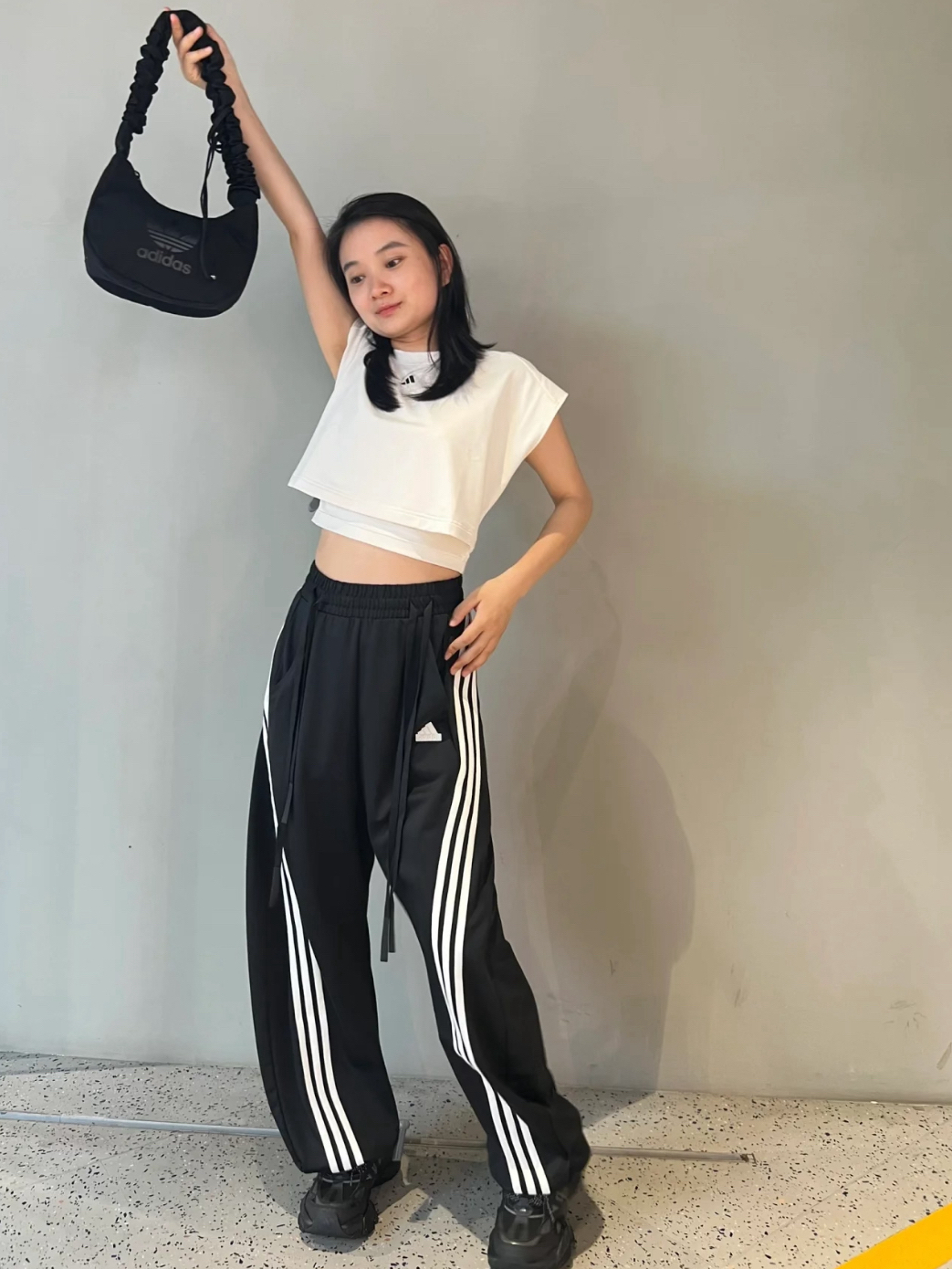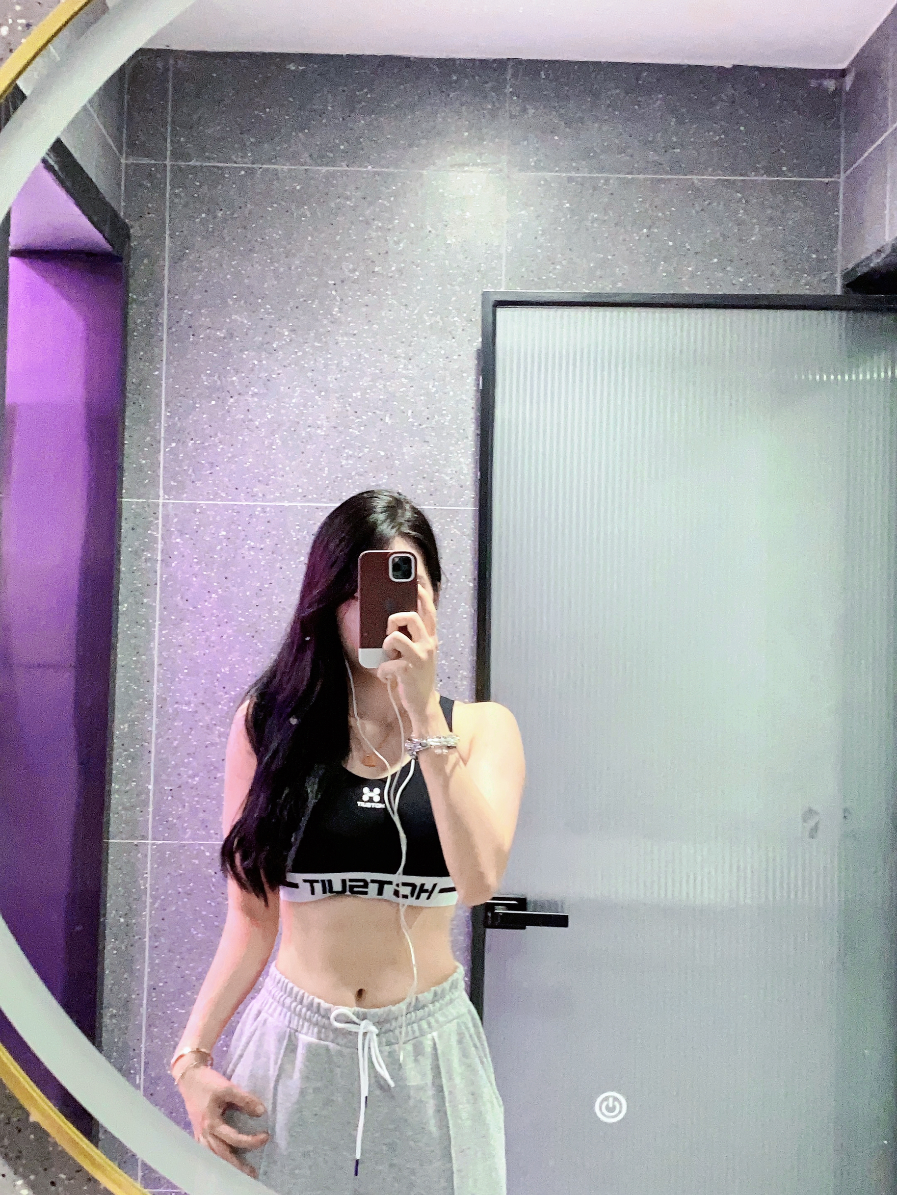 像极了天天都去健身房的自律女人哈哈哈 这套真的巨显瘦 这套背心➕灰色卫裤焊在身上吧! 明夭就穿这套去健身房嘻嘻 裤子:UZIS切割1.0 篮球训练保暖休闲束脚裤加绒加厚运动裤