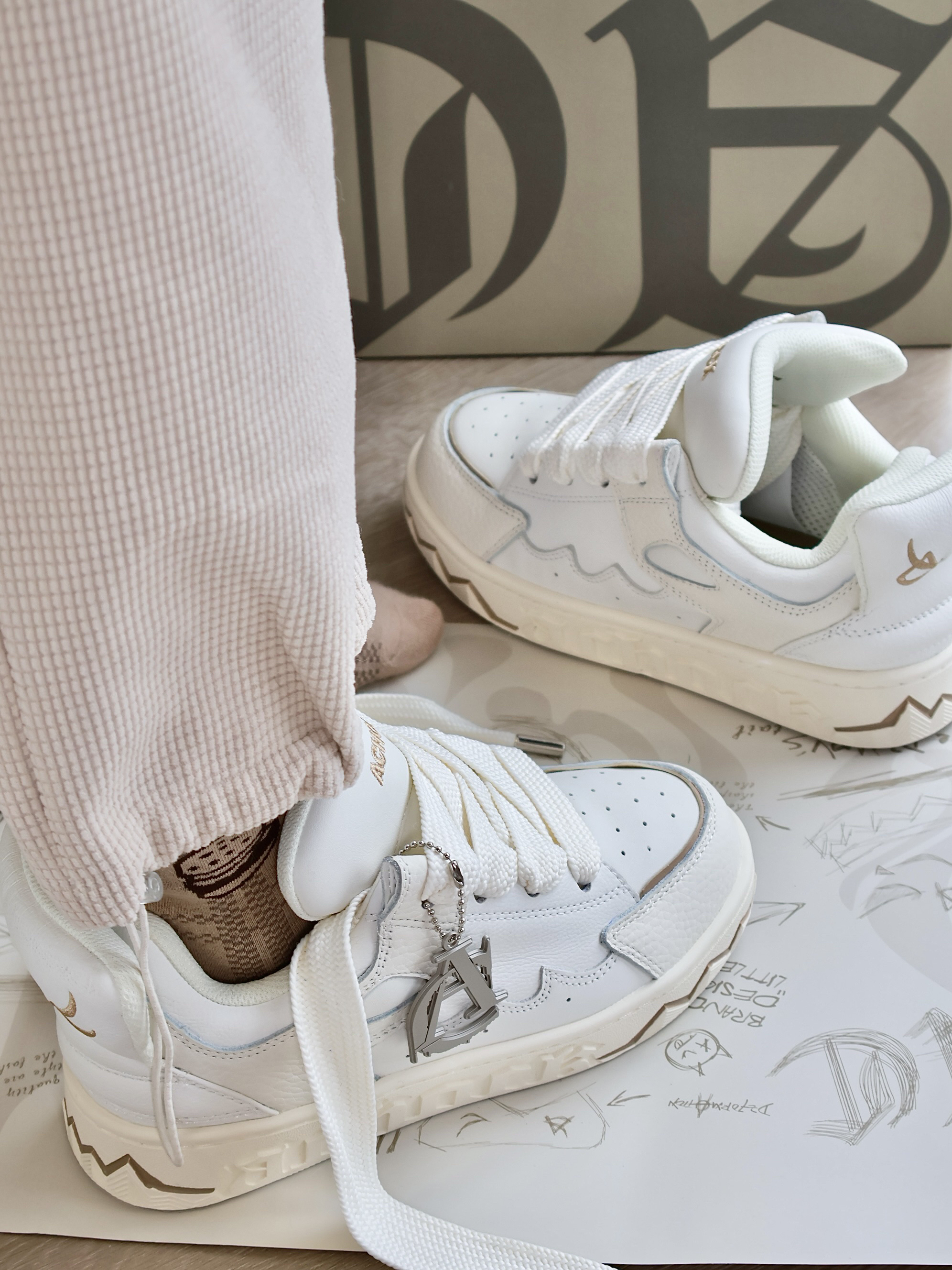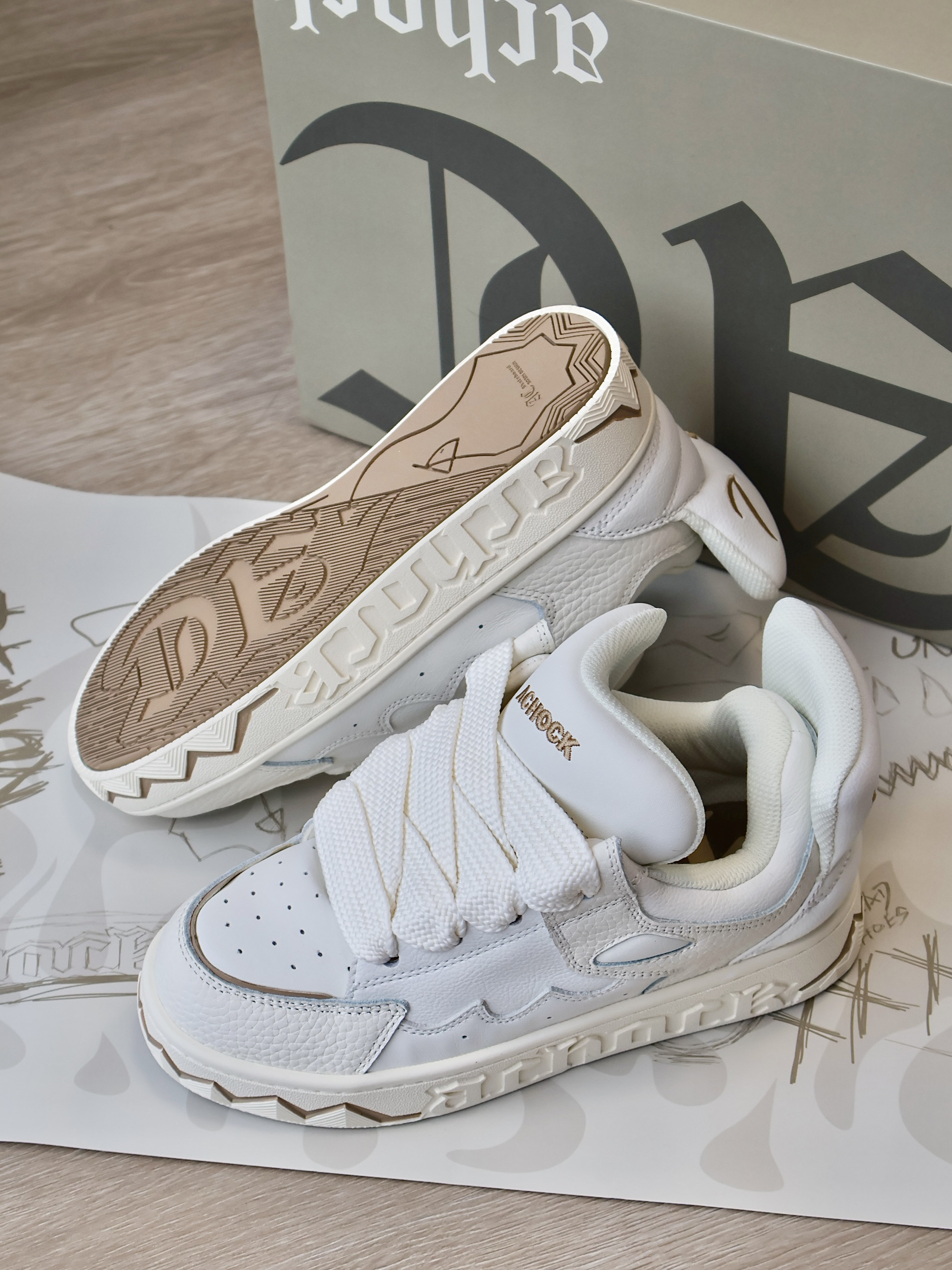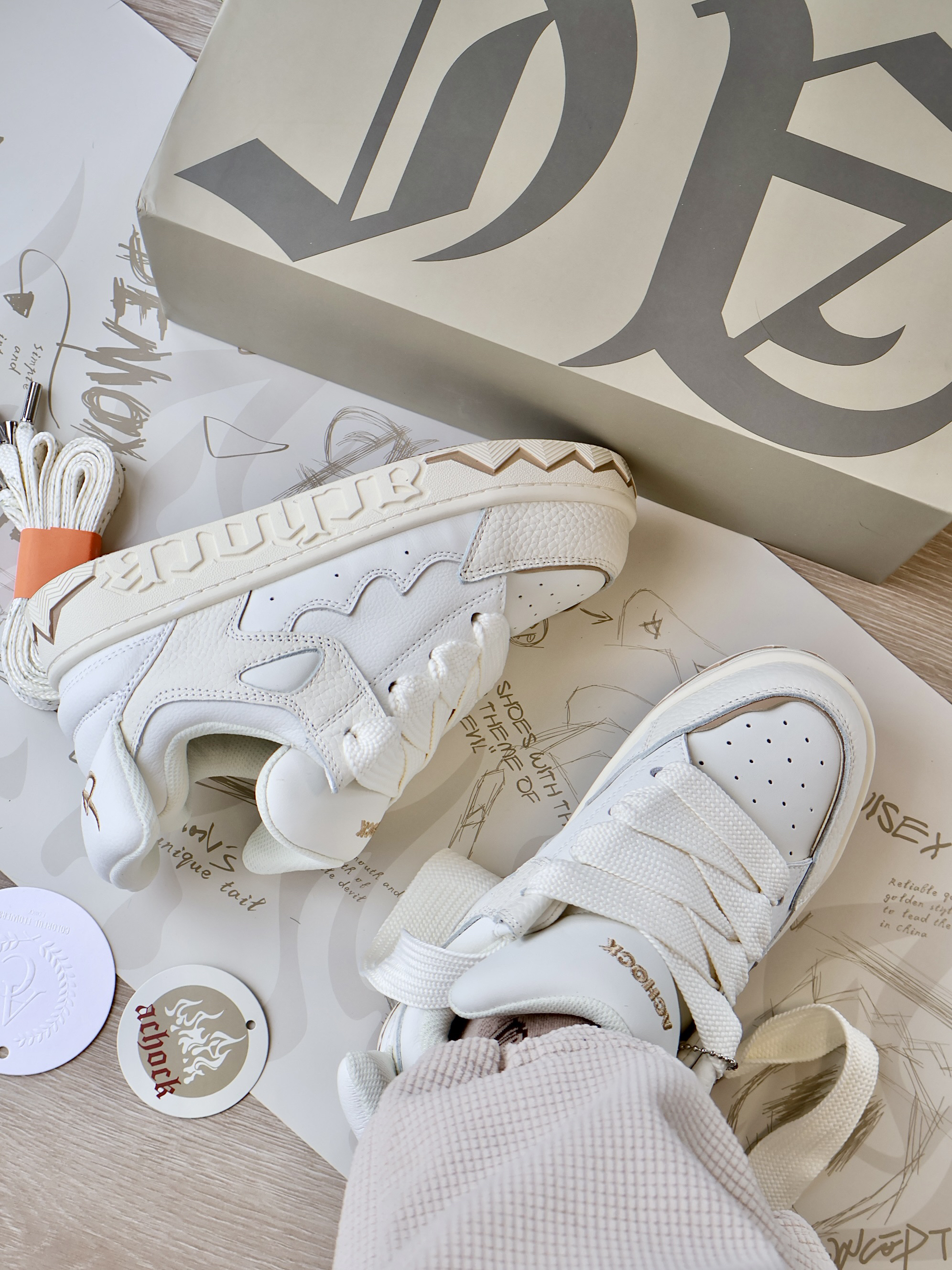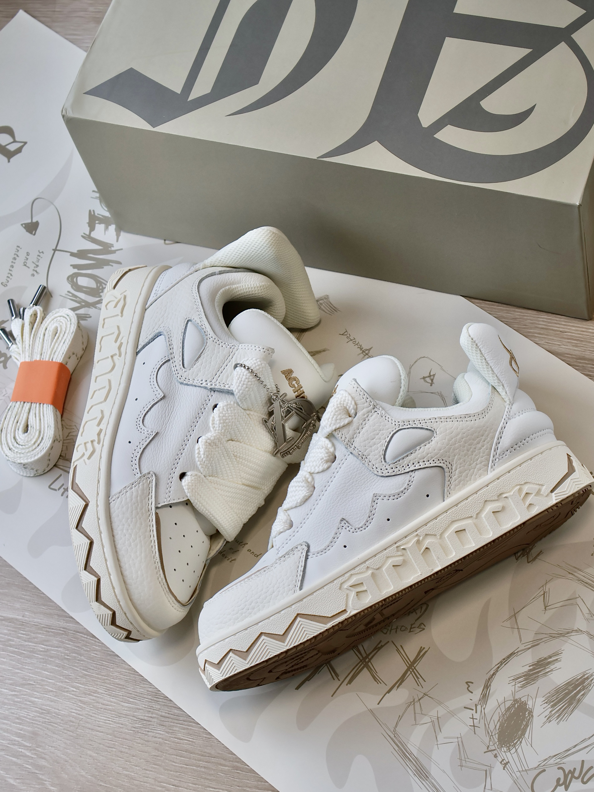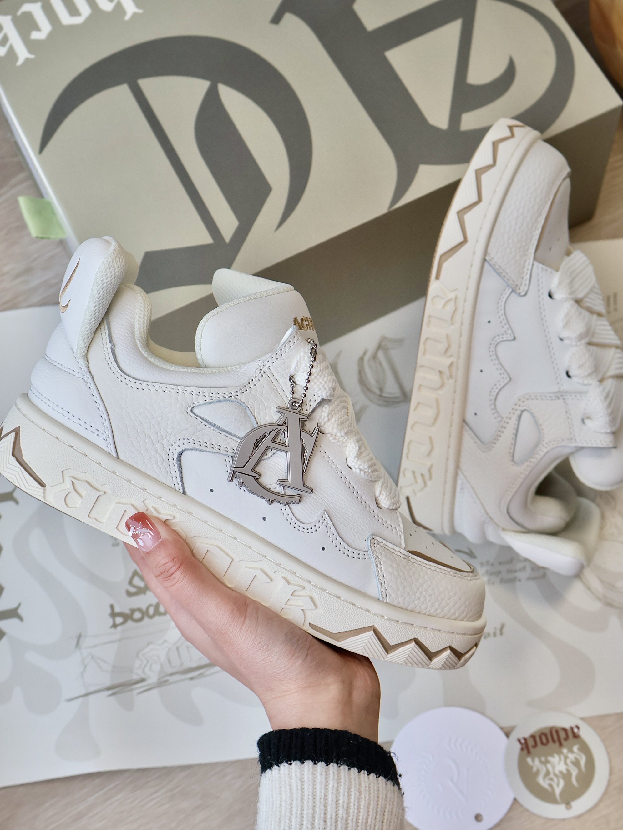 谁不爱奶白配色的面包🍞鞋嘞! 胖乎乎的 上脚也是超帅的✌🏻️ 鞋子拿在手里很有分量!一看就很重工 鞋身融合了小魔怪😈耳朵 嘴型和眼睛元素 两只鞋子对齐摆放 我好像真的看到了魔怪的脸! 栩栩如生✨细节质感满满! 尾翼也是帅炸了!真的要被设计师脑回路折服啦!