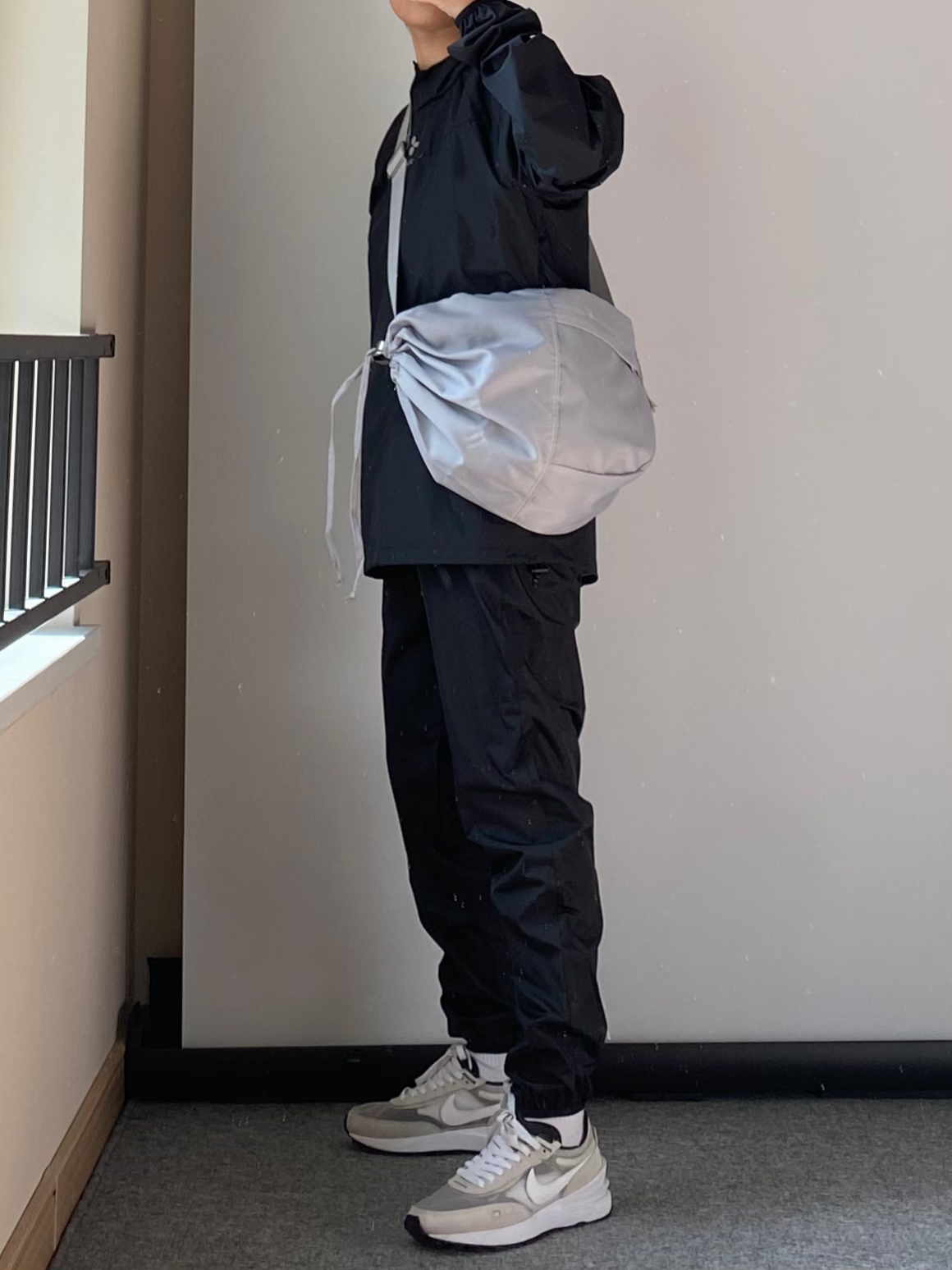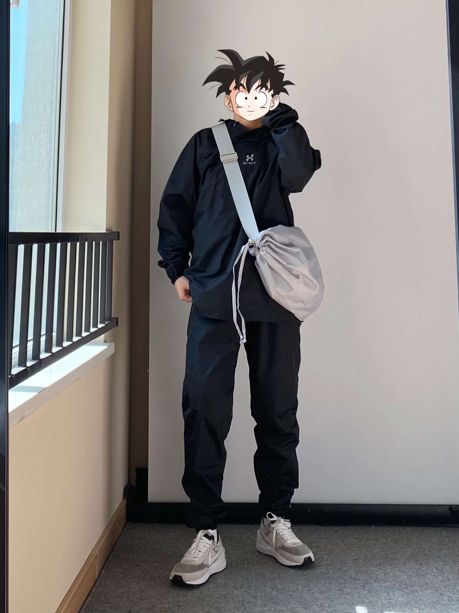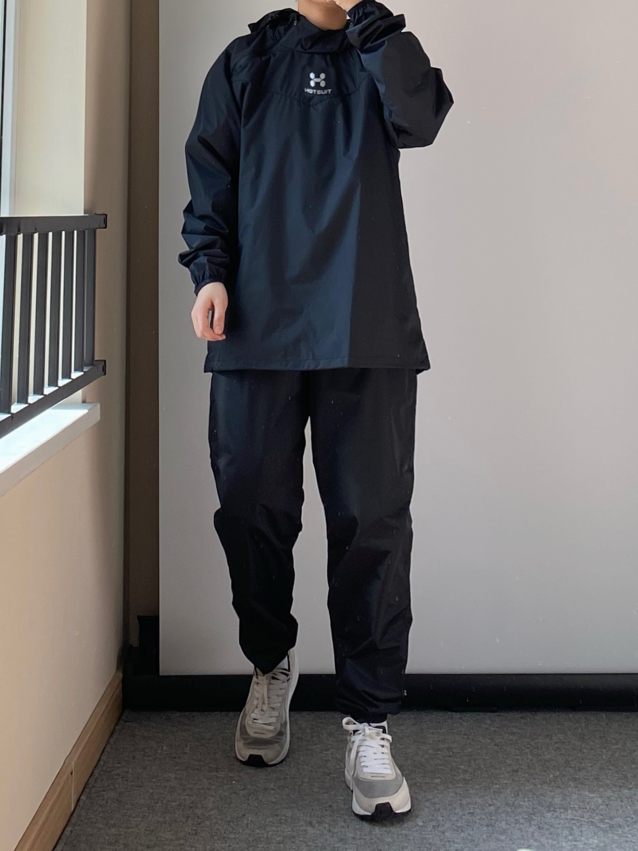 春天到了大家都开始户外锻炼 今天分享一下 小个子男生户外也能穿的套装 HOTSUIT的暴汗服大家一定都听过 我入了一套全黑色的上身真的超帅 前后logo都有3M反光 夜跑,很安全 可以背一个#BAGSMART的灰色饺子斜挎包 容量比想象中大好多 出门可以装好多东西啦~