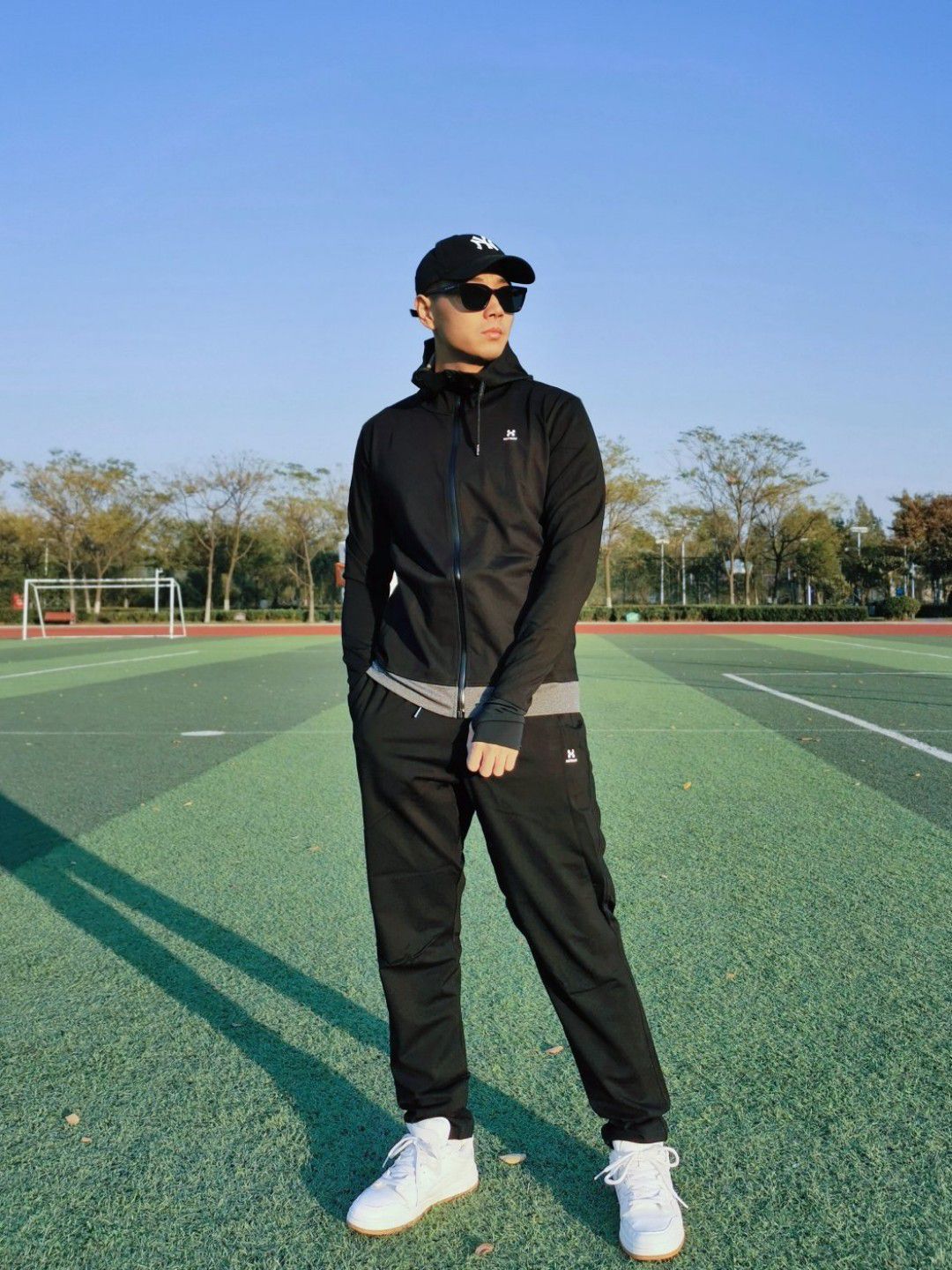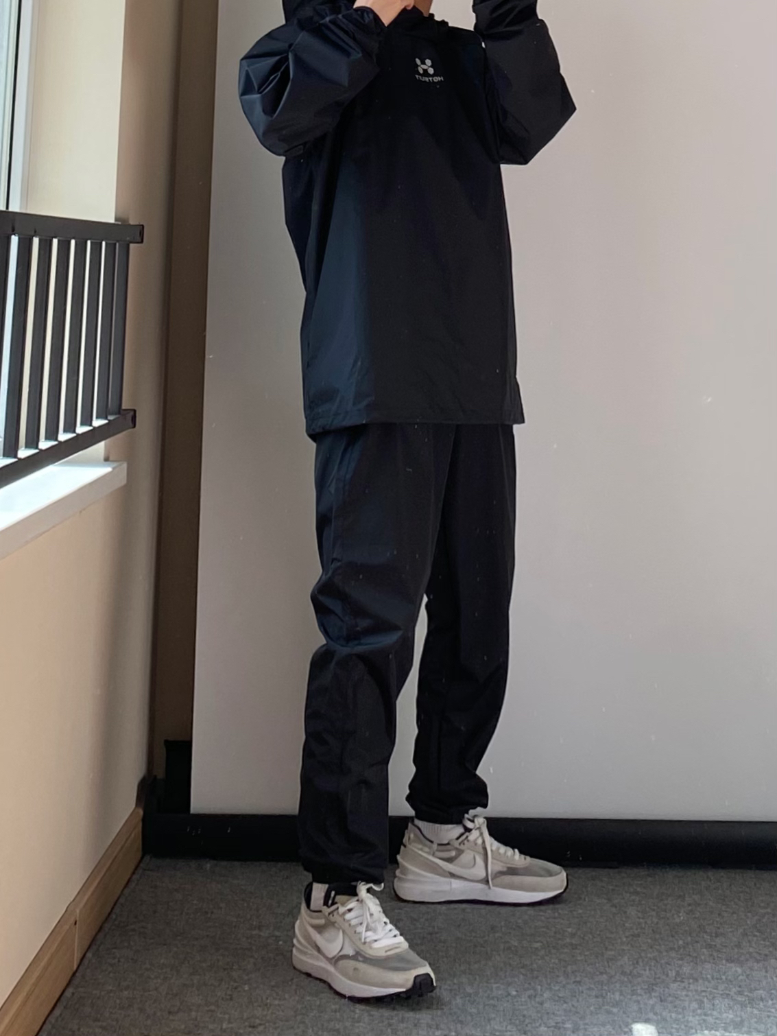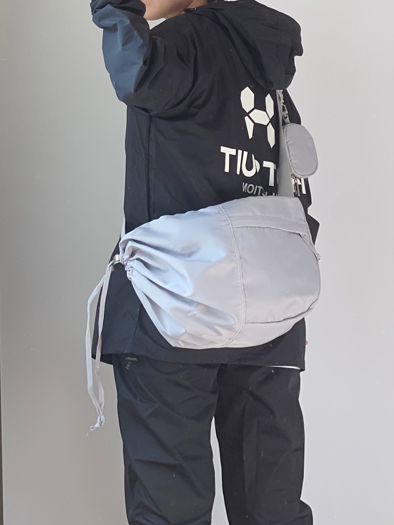 春天到了大家都开始户外锻炼 今天分享一下 小个子男生户外也能穿的套装 HOTSUIT的暴汗服大家一定都听过 我入了一套全黑色的上身真的超帅 前后logo都有3M反光 夜跑,很安全 可以背一个#BAGSMART的灰色饺子斜挎包 容量比想象中大好多 出门可以装好多东西啦~