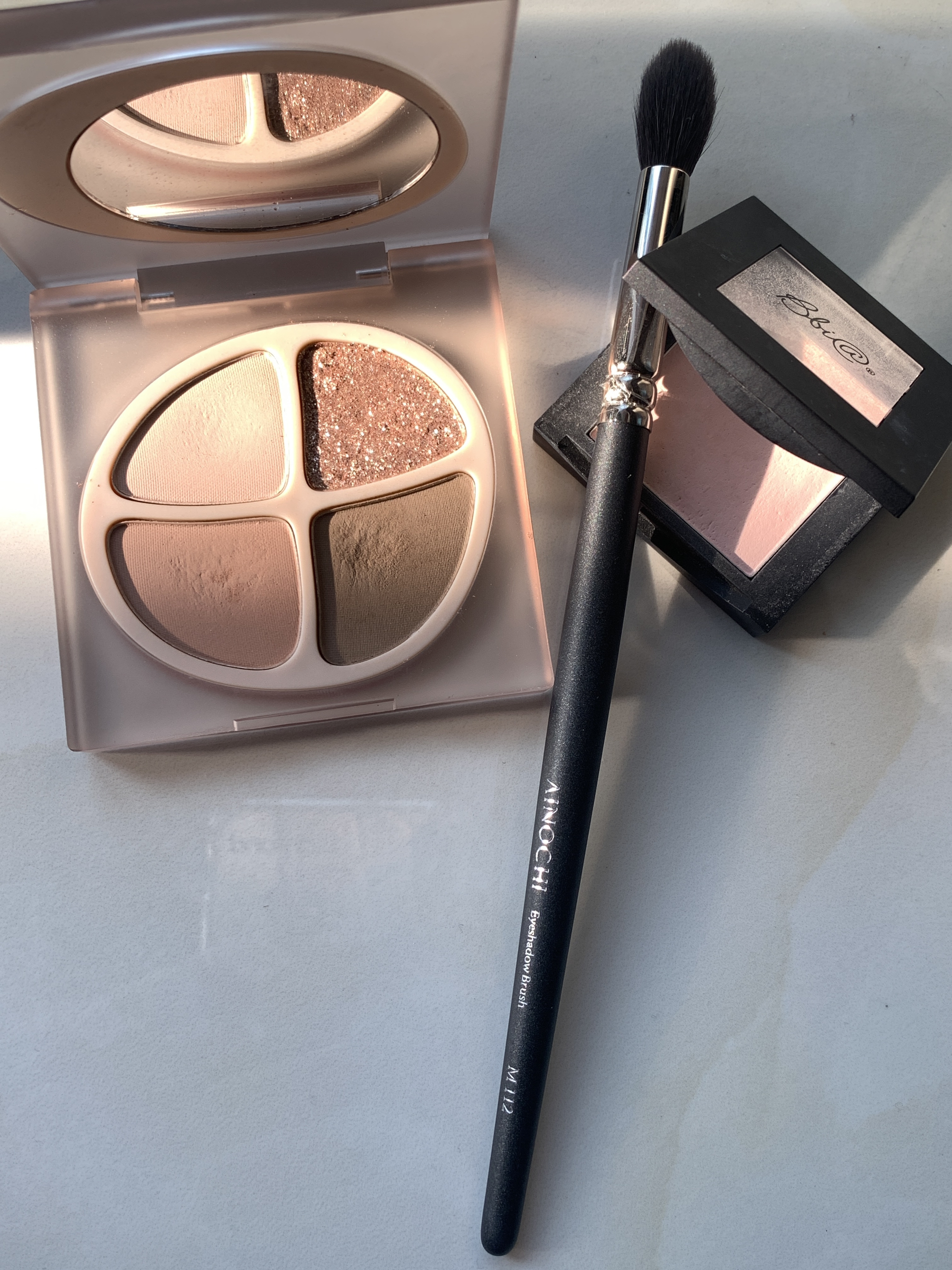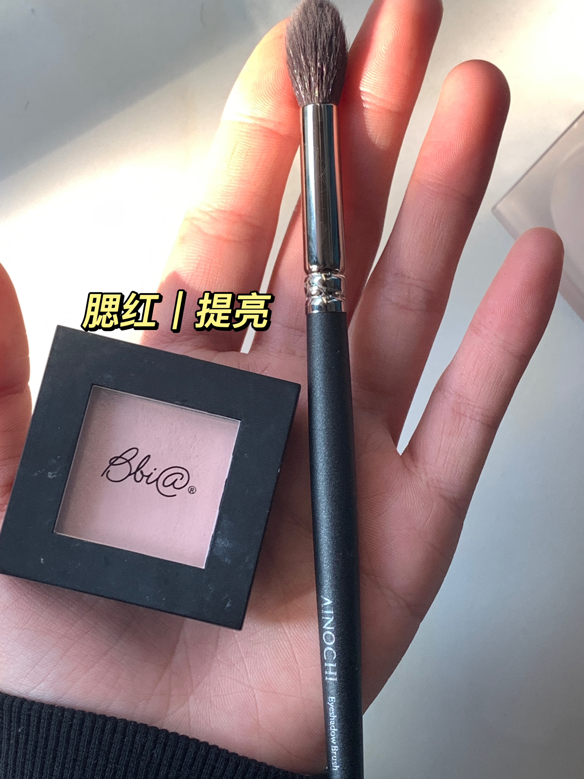 早八人必备!学生党为素颜妆速成记! 刷子抓粉力 质感 厚度都OK 眼影盘:酵色 很好上色 颜色都很实用 腮红:bbia 也可以作提亮!