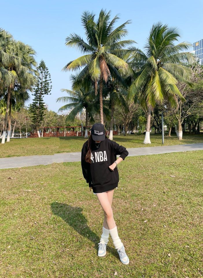 黑色百搭的卫衣很难让人不爱呀🌟🌟 卫衣就是和春季最好的神仙搭配 最简单的基础款就能穿出高级感💗 再搭配同色系的棒球帽 就是青春学姐即视感💯😘😘 胸前的NBA立体胶设计🖤🖤 真的很有型有质感 还有黑白两个颜色,可以当做情侣装穿😛😛 #日常基础穿搭或潮酷穿搭 #今日份AJ女生 #我的宝藏单品□Nike #8点上课穿什么 #要啥自行车啊