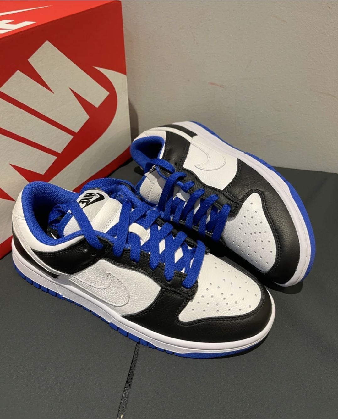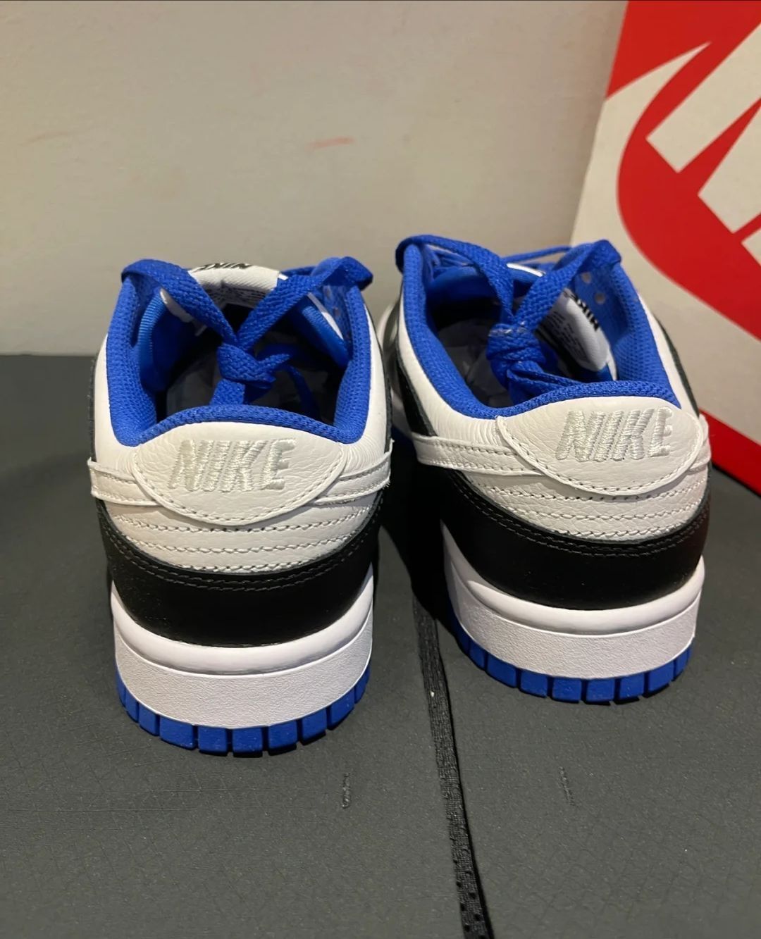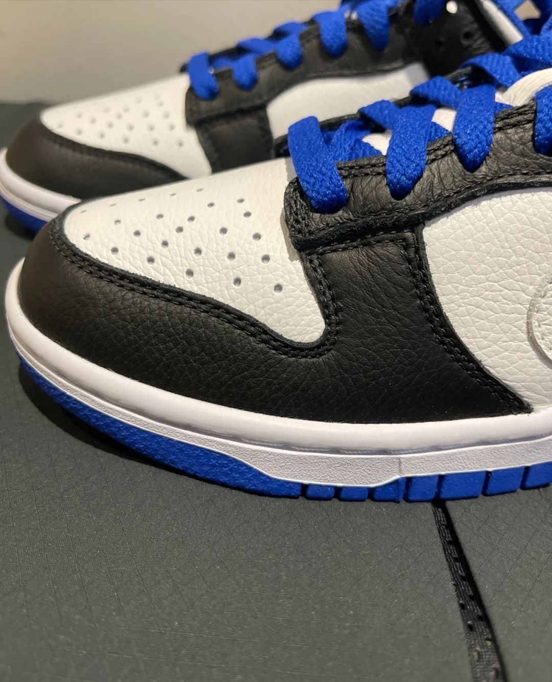 Nike Dunk Low黑白蓝,鞋面采用荔枝纹皮革打造,质感柔软,巧搭耐穿结构,重现80年代篮球风范,低帮加垫鞋口,造型利落,质感出众,泡绵中底,缔造轻盈回弹的缓震效果,橡胶外底缔造出众耐穿性和抓地力