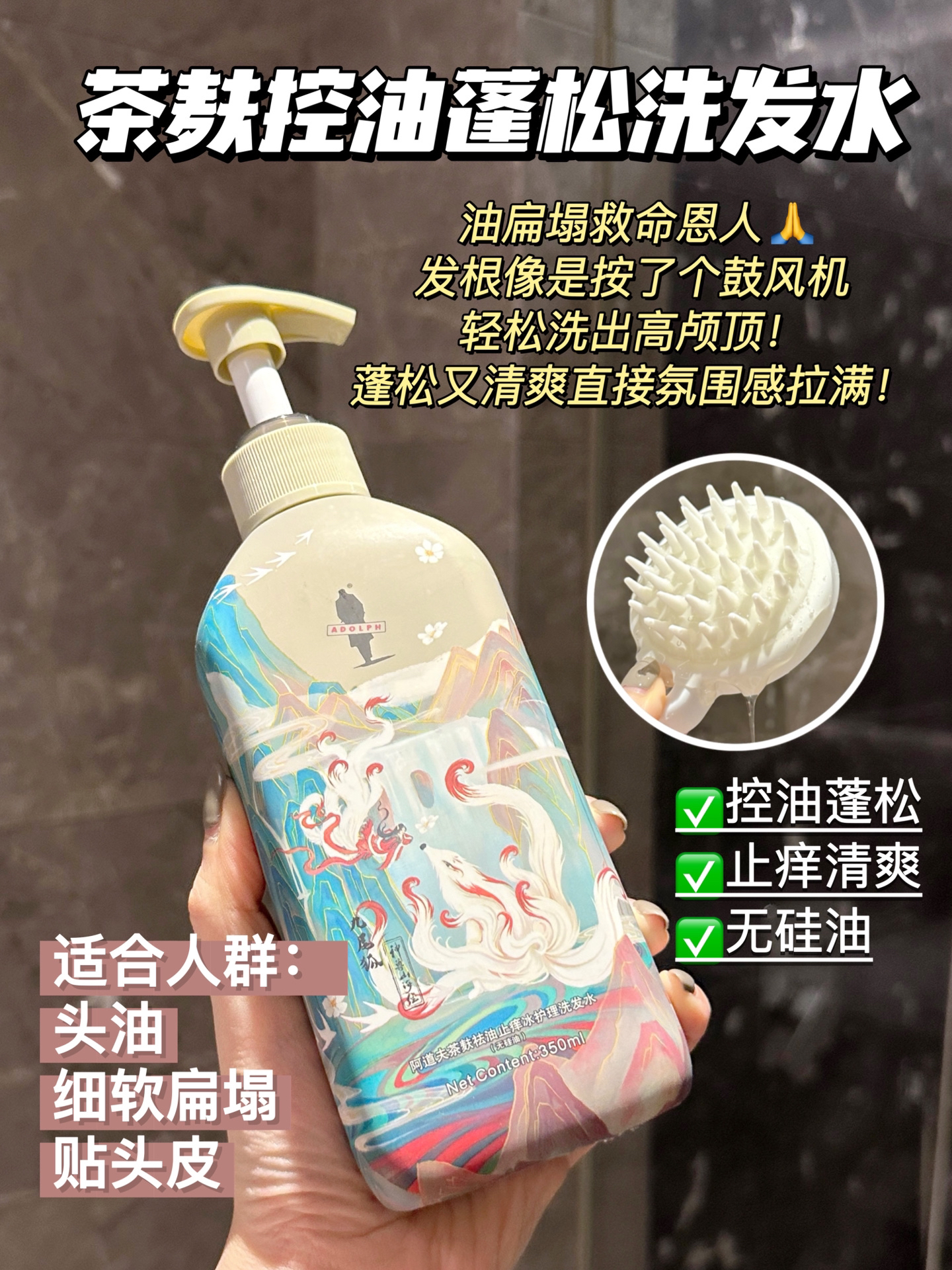 家人们!细软塌➕油头,灾难组合谁懂啊! 一天不洗就变得又扁又塌 冬天到了起静电后更是恐怖,头发牢牢贴在头皮上,头皮屑乱飞😭😭 丑到自闭了! 在🍠做了好多功课 我想说选对洗发水很重要! 最近新get的宝藏: 阿道夫茶麸洗发水系列☄️ 谢谢你还我蓬松发根! - 据说是全新升级配方 添加“茶麸”成分,竟然有千年的洗护历史 《本草纲目》都有记载它“除油腻”的功效 试用一段时间下来,亲测三天不洗依旧蓬松🥹🥹...