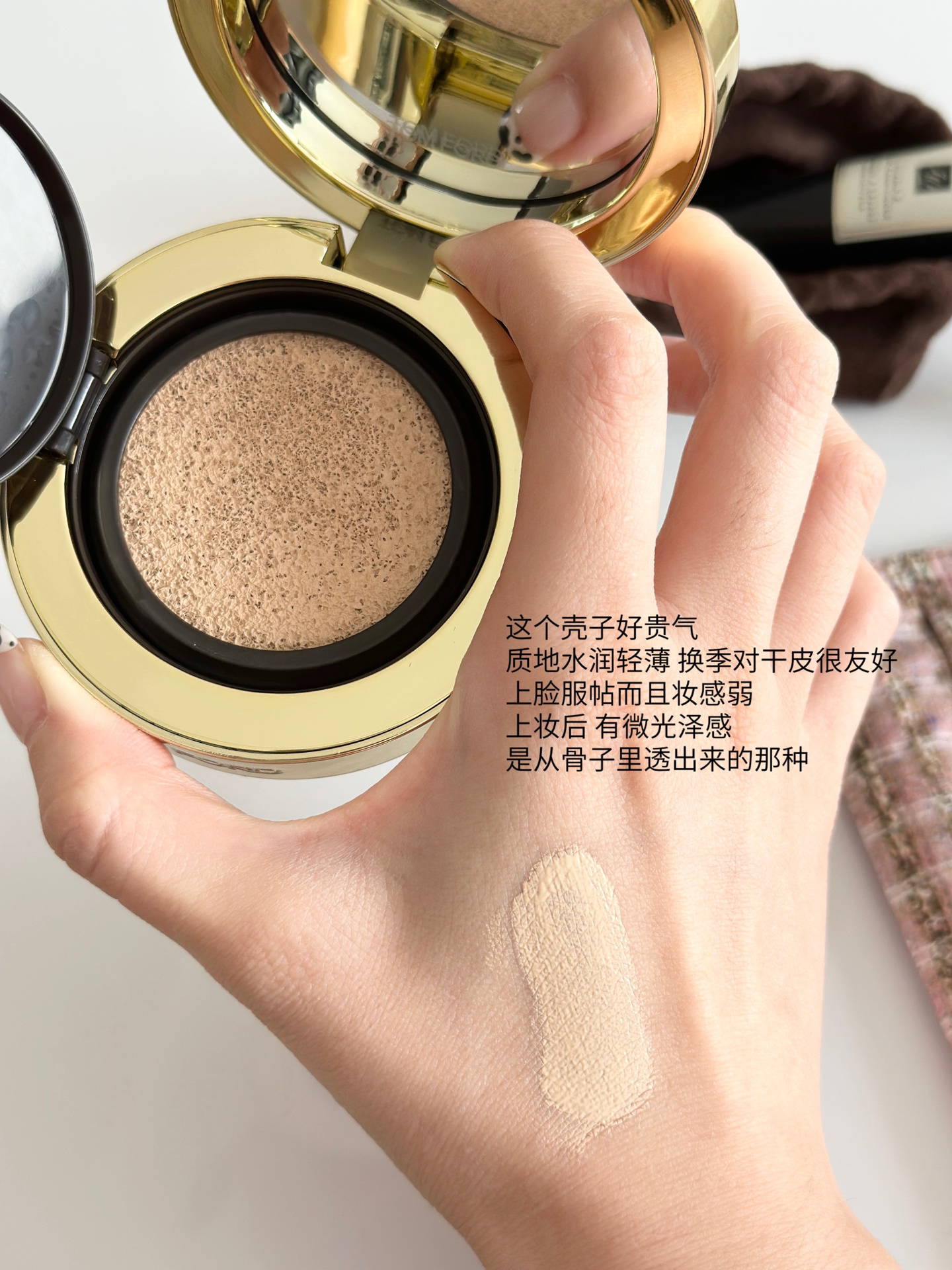 本篇笔记关联了Tom Ford/汤姆福特 奢光随行奢金气垫 12g #0.3暖调一白、【朱一龙同款】tamburins 经典链条护手霜 #7 蔷薇木柑橘香、Chanel/香奈儿 山茶花精华喷雾 50ml等商品,为用户提供真实的使用体验和购买参考。
