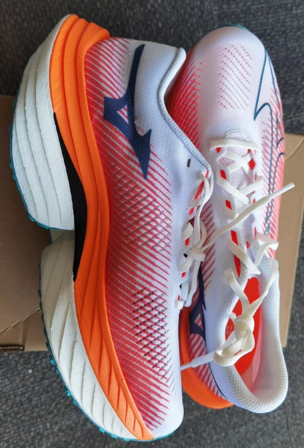 本篇笔记关联了Mizuno/美津浓 Wave Rebellion Pro 竞速碳板 缓震轻便 支撑 马拉松 织物 跑鞋 白色/暗蓝色/亮橘色等商品,为用户提供真实的使用体验和购买参考。