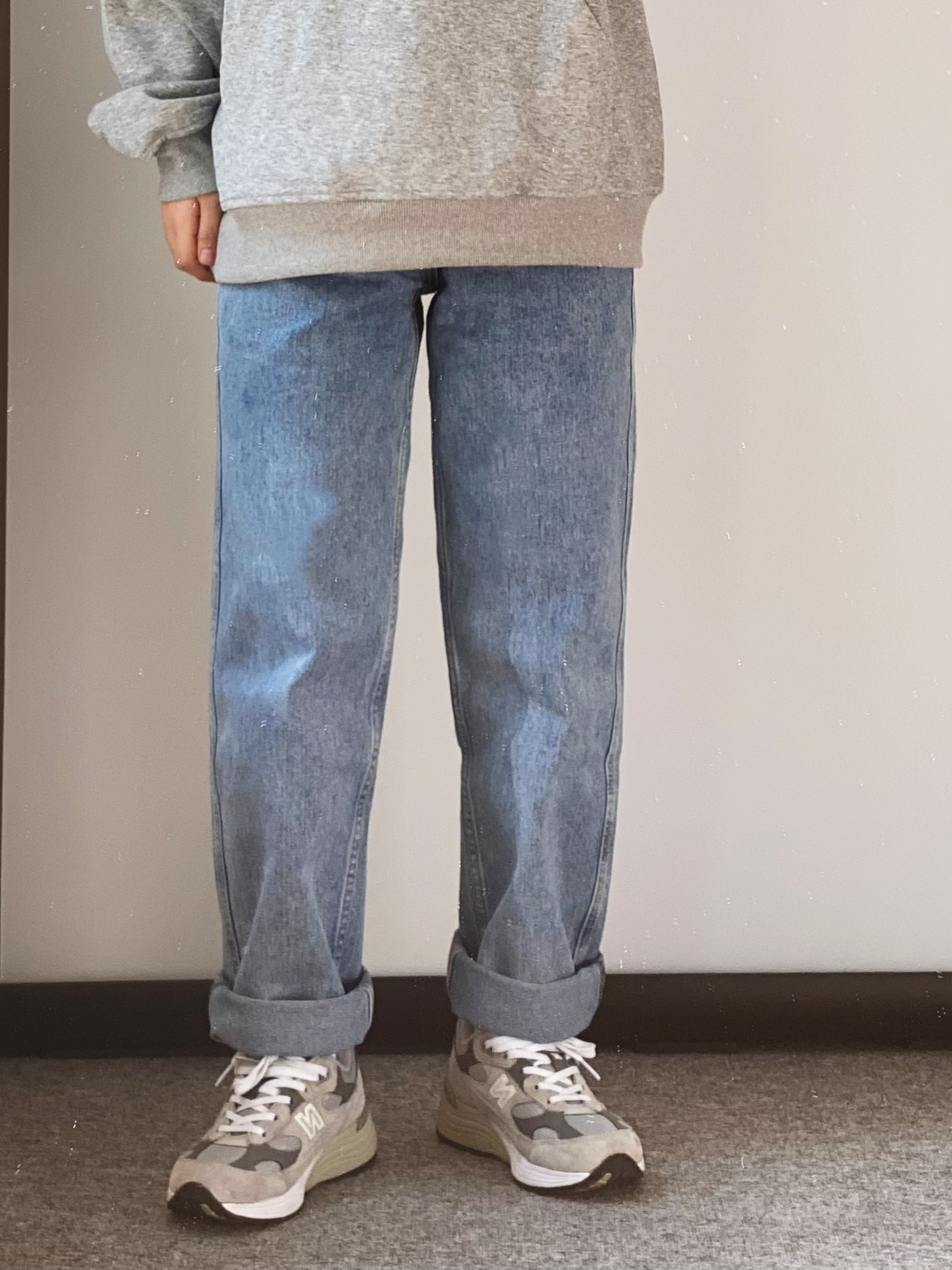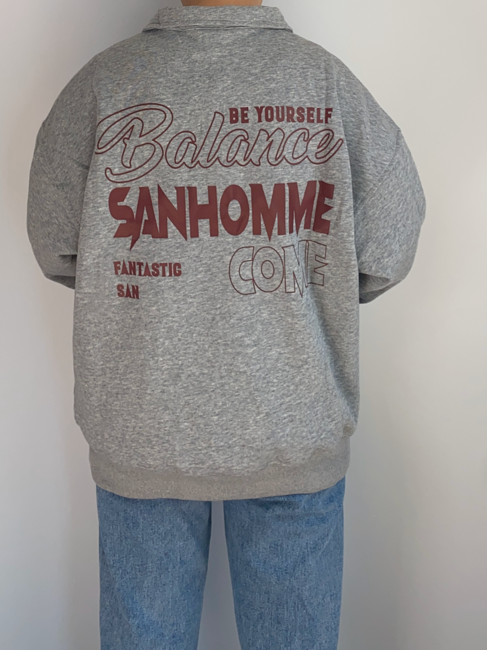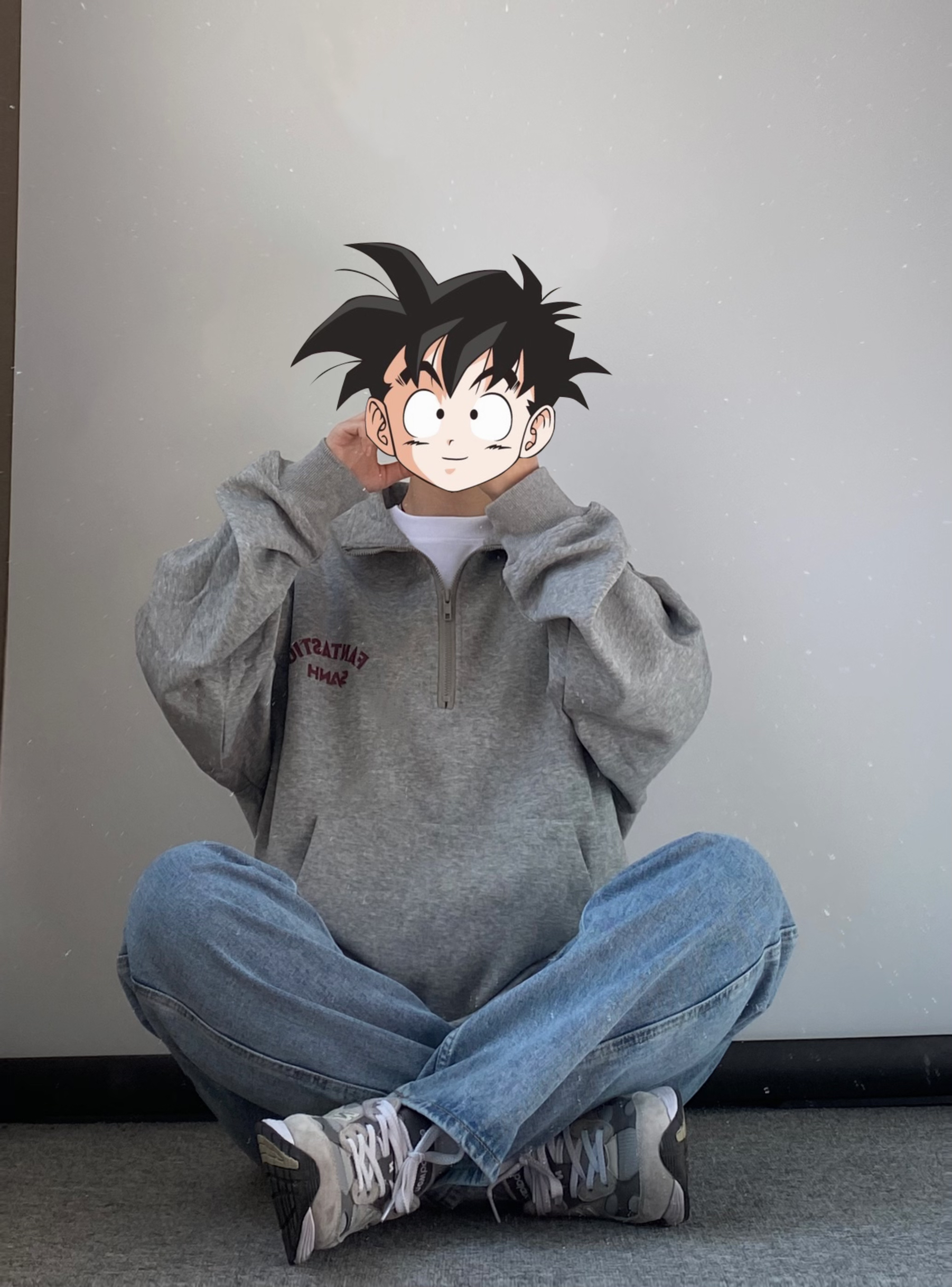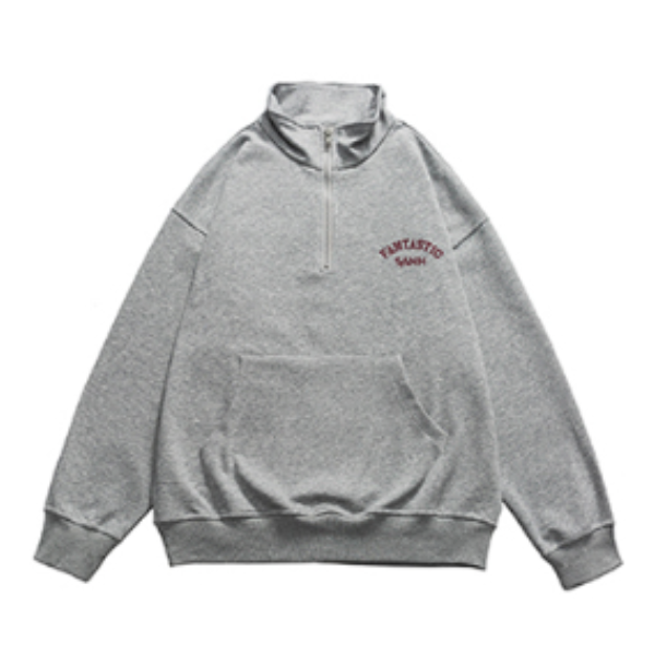 当地比较喜爱叠穿的一类人 👔灰色的半拉链立领卫衣 内里可以搭配一件稍微长一点的白T 漏出边边很有层次感 👖裤子搭配一条百搭的蓝色直筒牛仔裤 满满的少年感