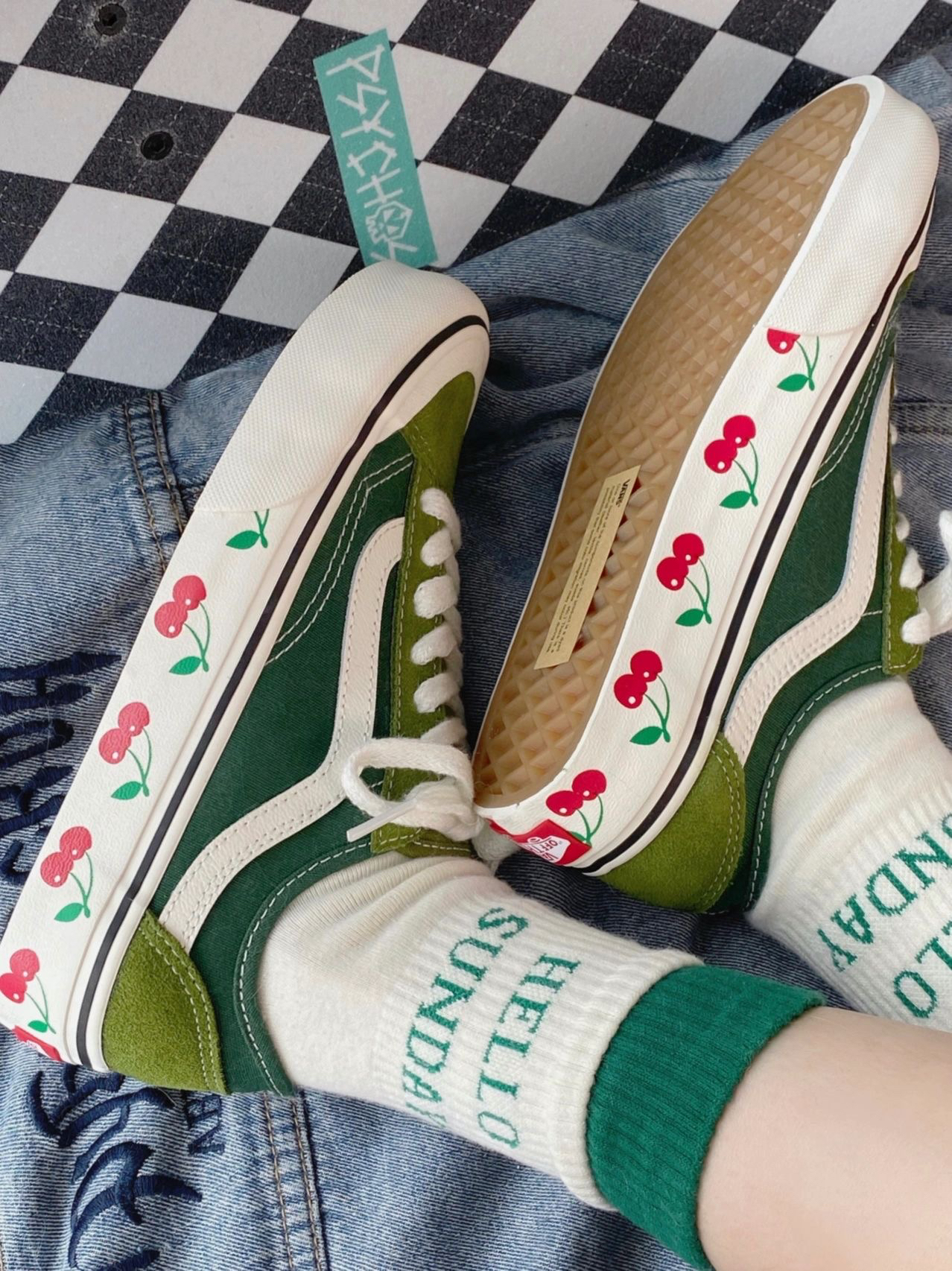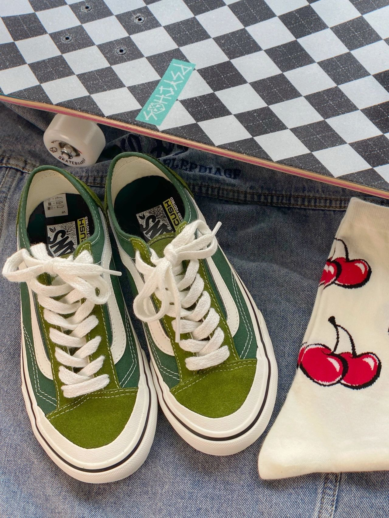 本篇笔记关联了Vans/范斯 Style 36 滑板鞋 板鞋 舒适轻便防滑耐磨复古百搭帆布拼接防水运动 绿色/樱桃印花等商品,为用户提供真实的使用体验和购买参考。