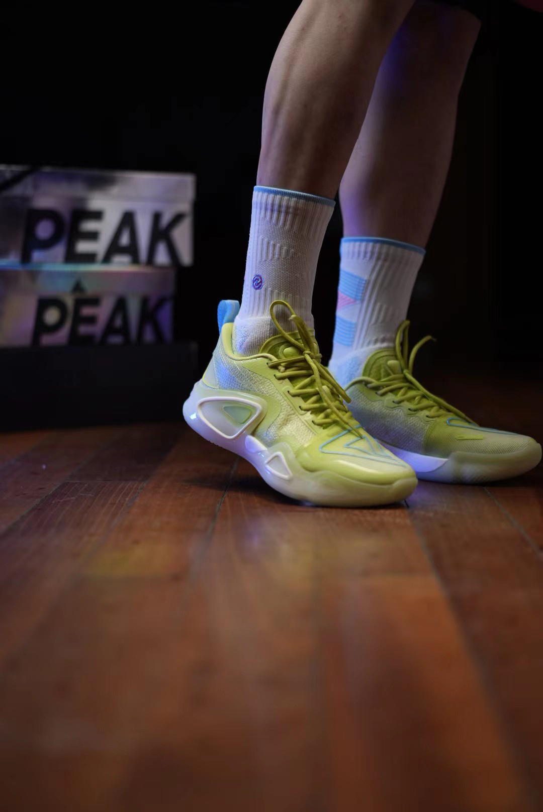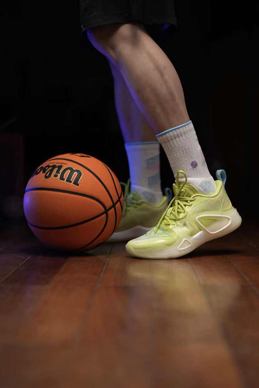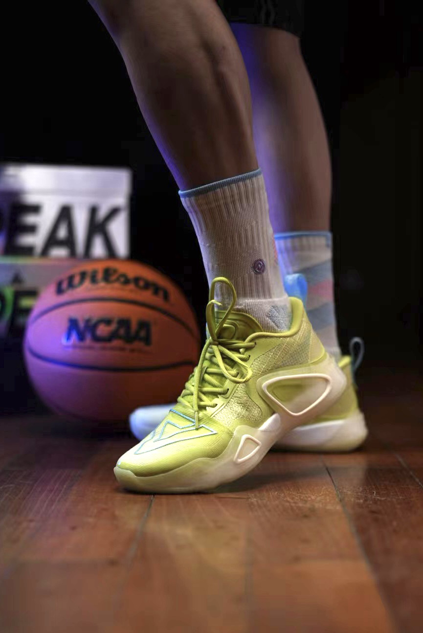 我拿到手的这双全新配色,以淡淡的的优兰色呈现,局部再以黄色修饰点缀,鞋头包覆罩面采用TAICHI-LENO 态极纱罗材质,有一定的延展性,在前掌运动弯折时更顺滑,这也是态极纱罗材质首次应用在匹克篮球鞋上!分段式鞋舌,柔软的织物材质搭配热熔材料,前段防歪斜设计,透气性包裹性和支撑性都带来不错的升级! 中底同样进行特升级,全掌超级魔弹搭载内嵌式轻量化态极,爆发和缓震更加稳定,抗撕裂性更加,舒适度不错!