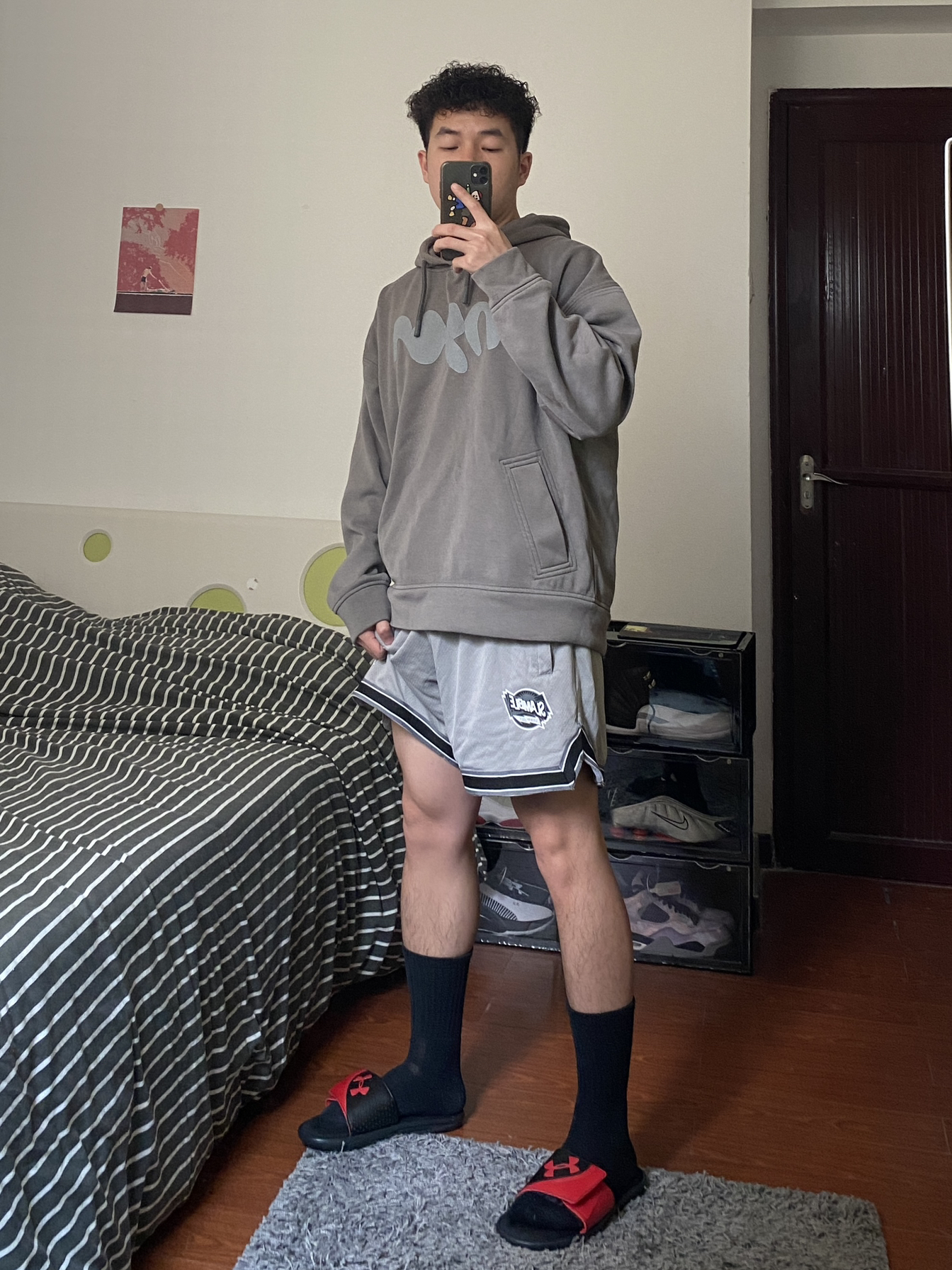 健身穿搭舒适为主 卫衣➕短裤是运动更舒服 感觉腿还需要再粗一点 OOTD 🟰 卫衣➕三分美式短裤