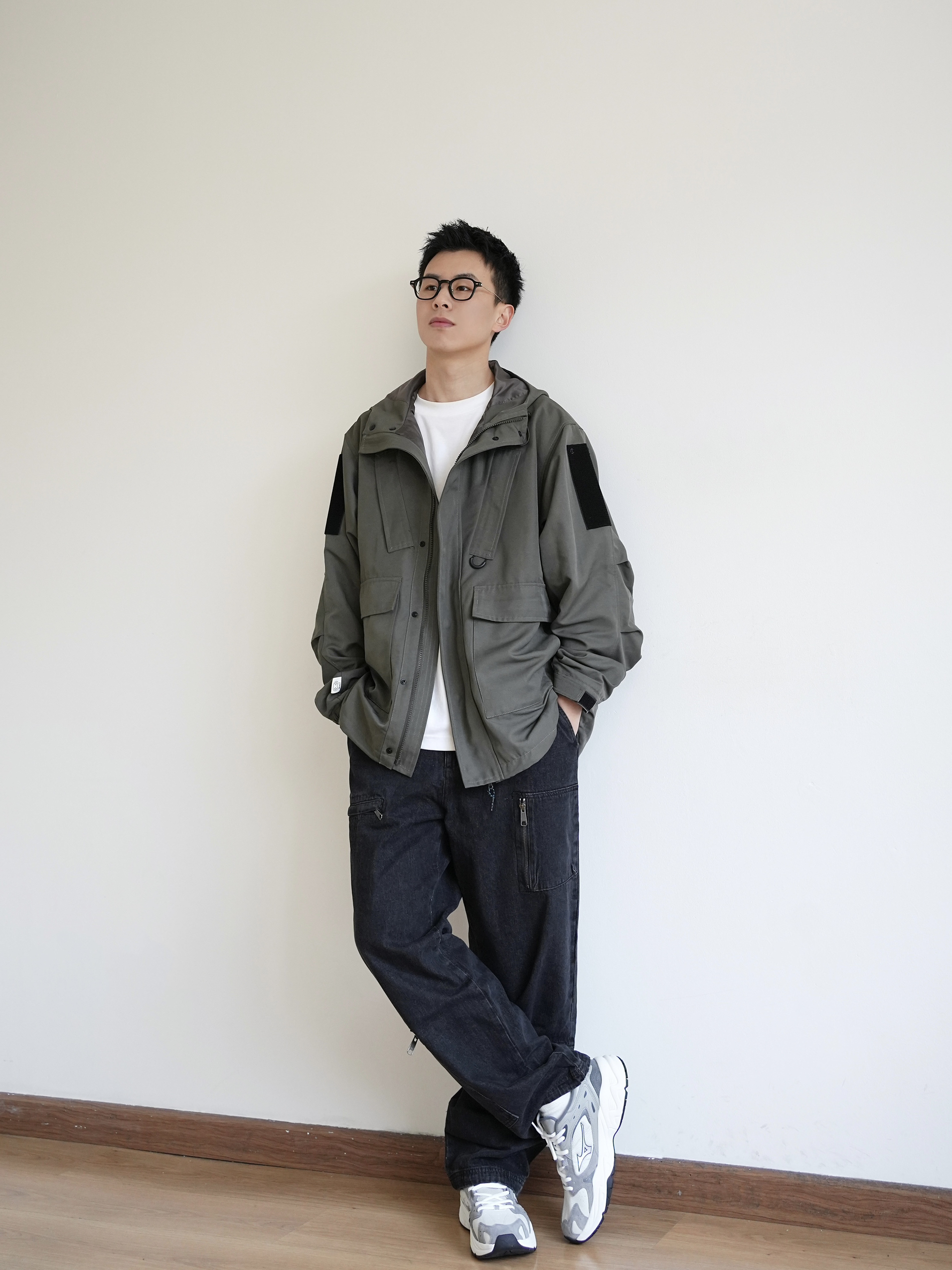 男生是不是都钟爱深色系? 今天来一套简约的日系风穿搭,初春没有太多的叠穿,简单的一件工装风外套,内搭白色T恤,简洁大方;裤子选择一条微宽松牛仔裤,与上身相呼应,宽松带来的舒适感觉! 复古的运动鞋不仅百搭,而且还可带来出街通勤的舒适感,性价比还很高哦!
