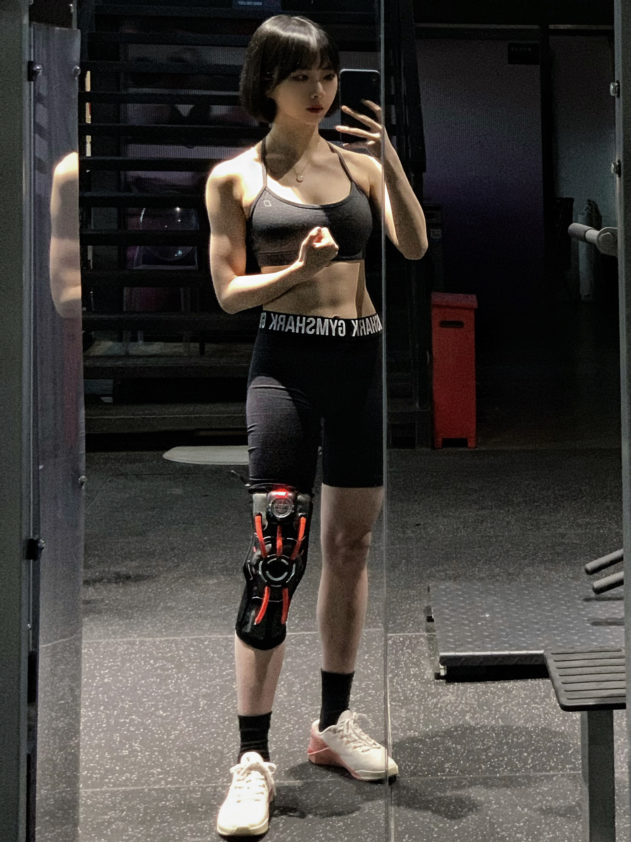 其实是个电动护膝🦿 So Cool🔥 这个设计就机械感满满 充电款 按完按键自动抽气加压 以前深蹲左膝盖有时会有弹响 这次带着护膝蹲了几组 很稳~