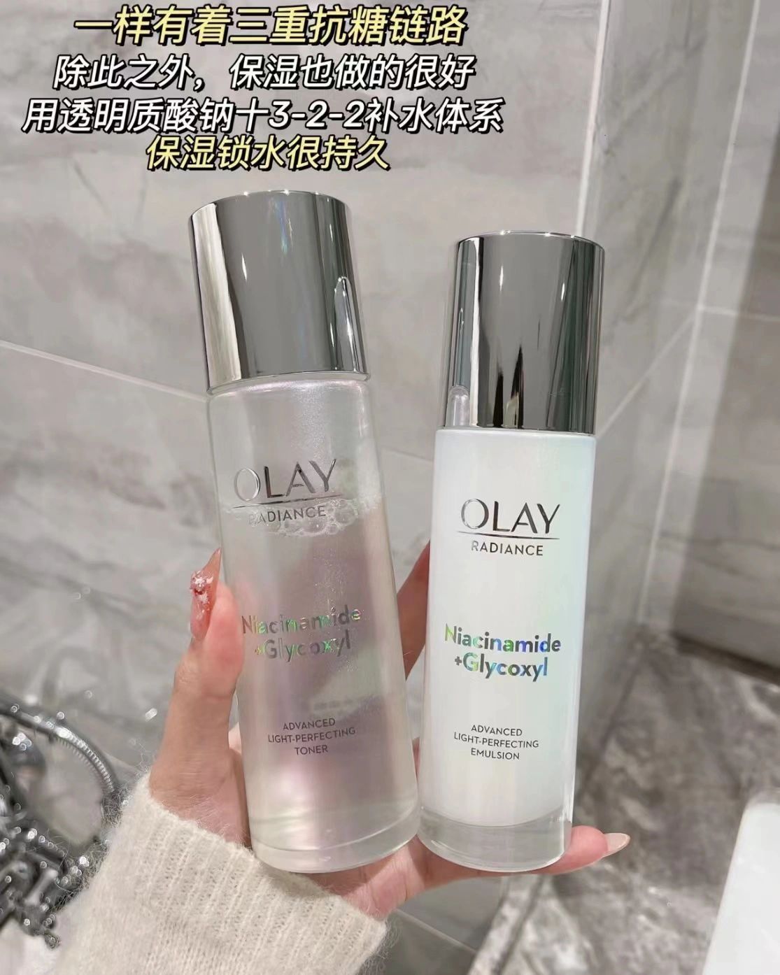 OlAY的美白水乳也是和小白瓶精华有一样的三重抗糖链路