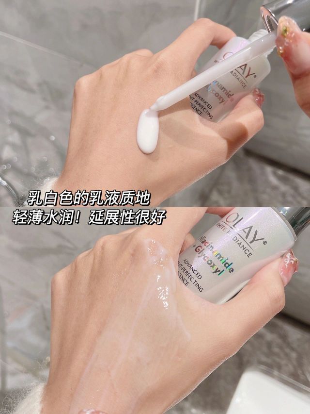 ⚠️ 精华是乳白色的乳液质地,轻薄水润!延展性很好