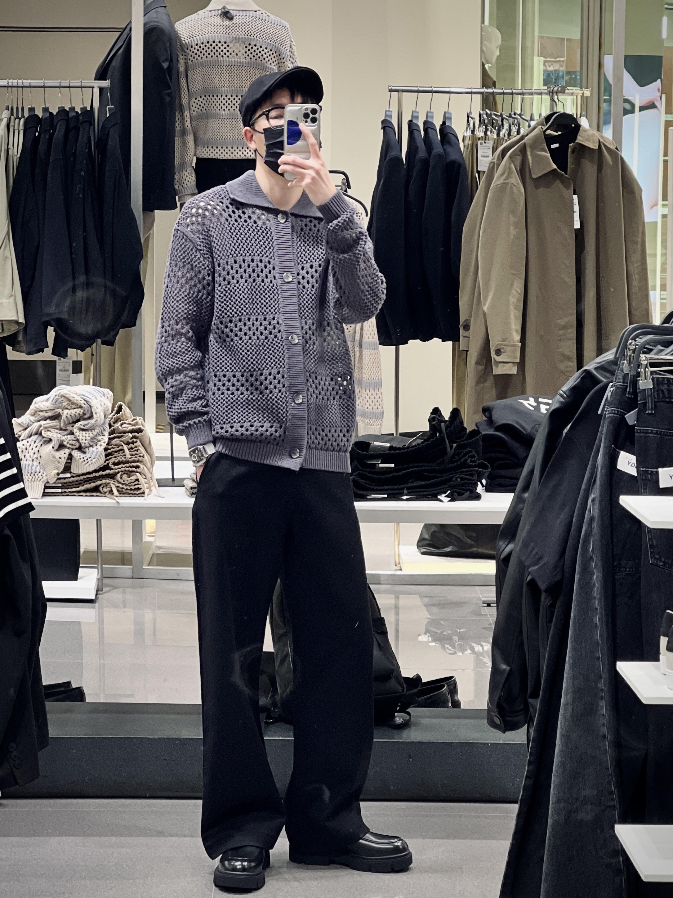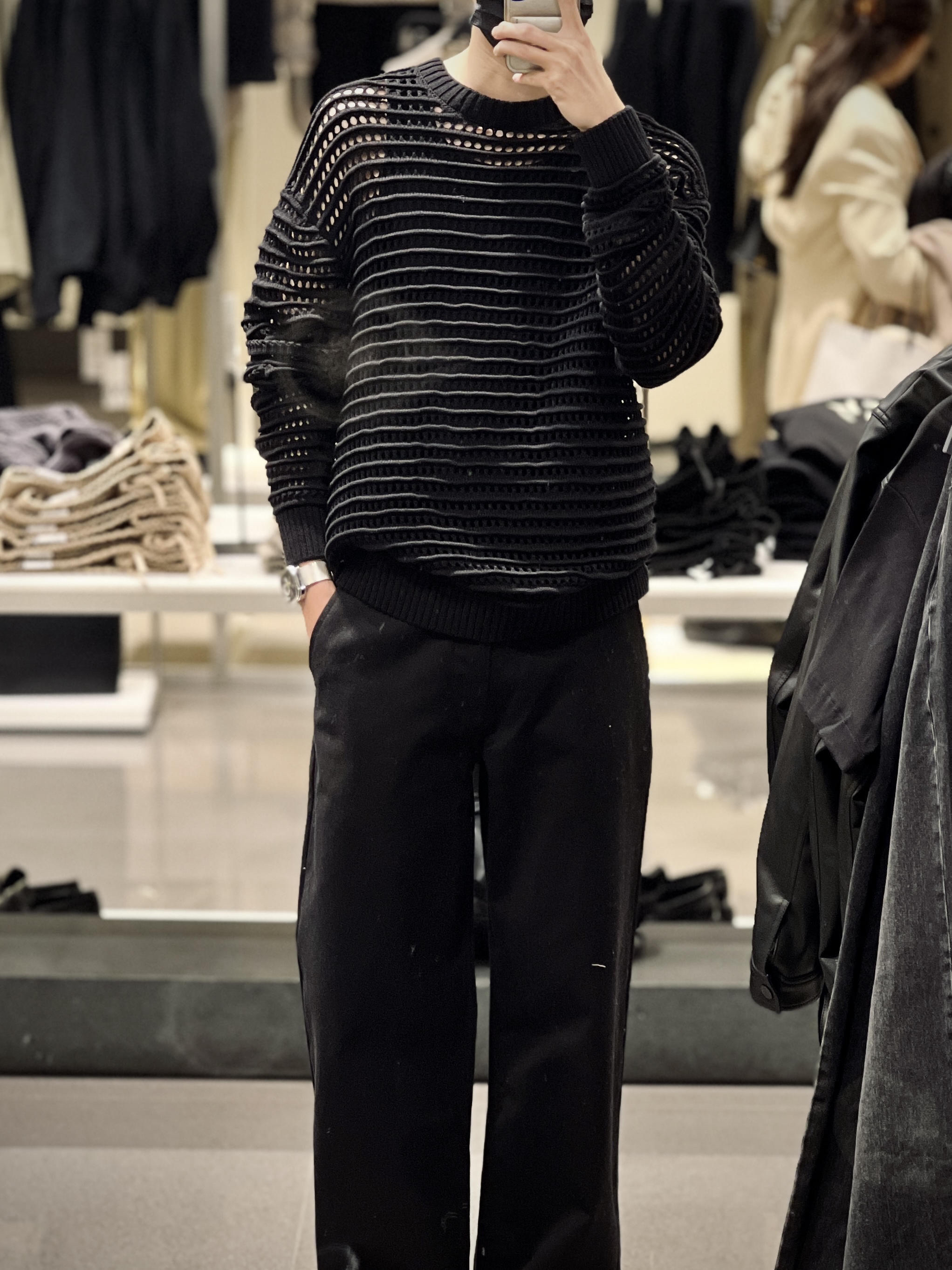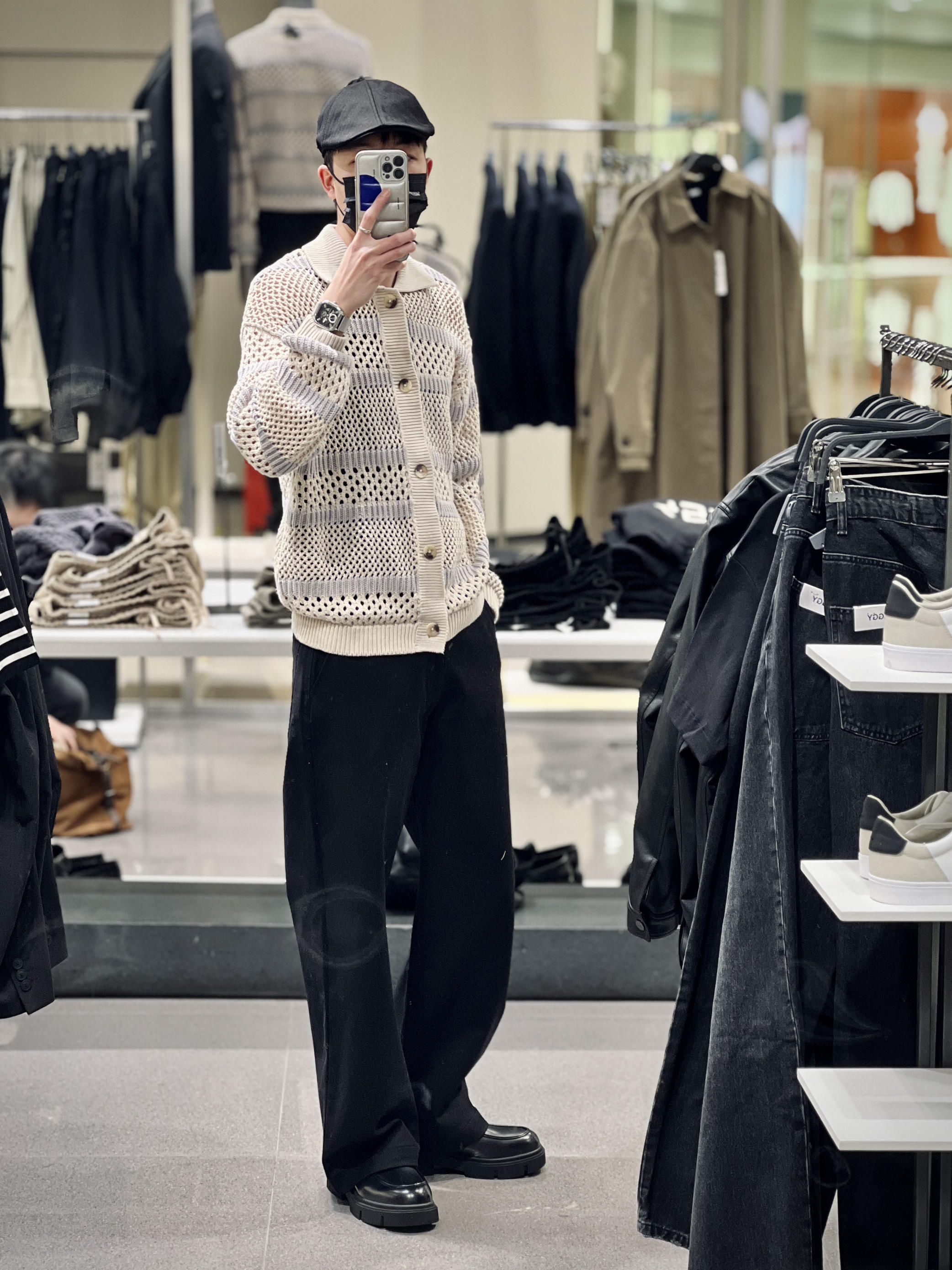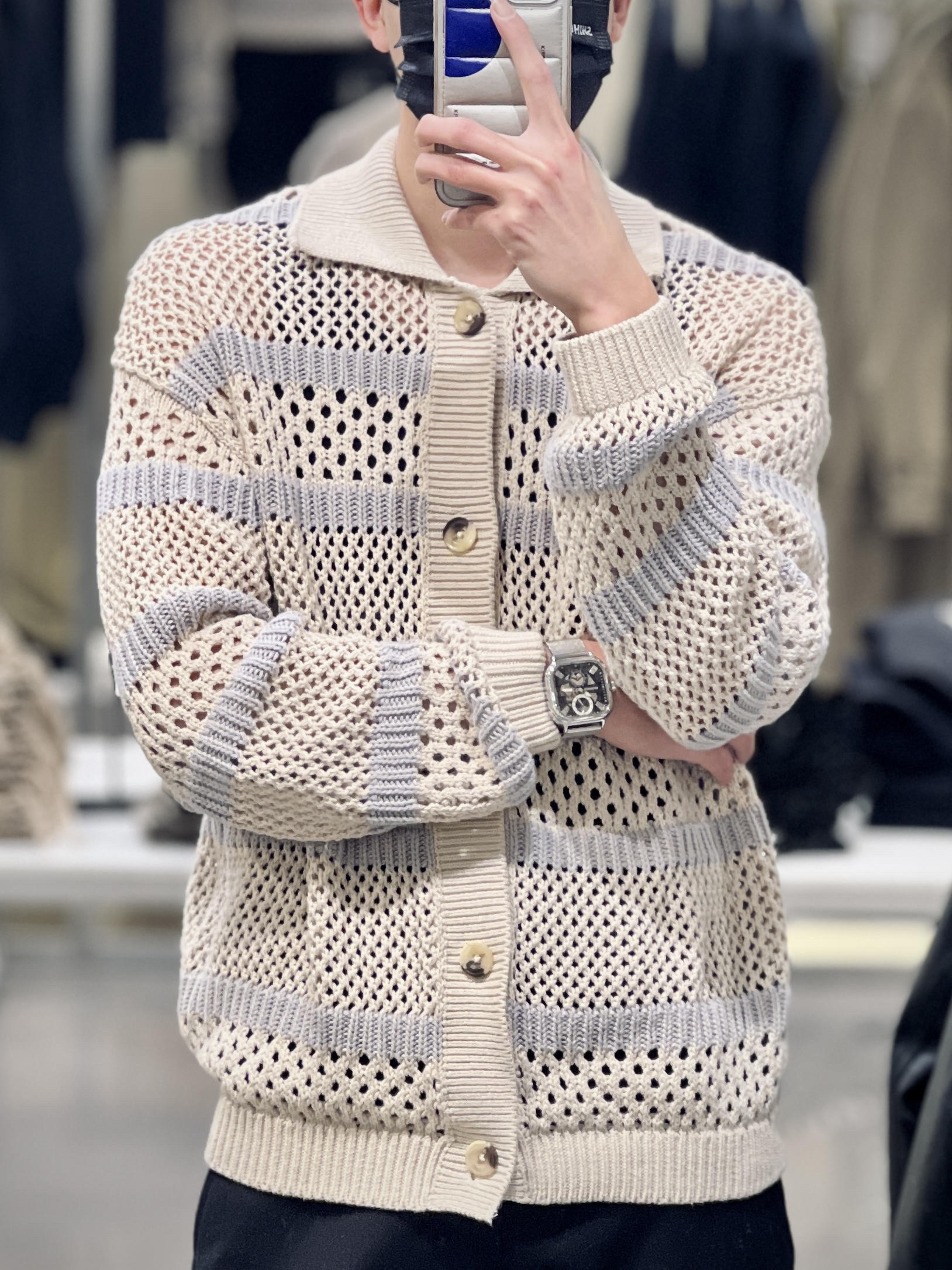 今年春季镂空针织是一件热门的单品 可以呈现很多不同的造型 ZARA这件钩针纹理条纹毛衣针织开衫 搭配直筒牛仔裤和报童帽 就能穿出复古的小味道 是还蛮值得尝试的新look 👦🏻:180/65 🧶:3284/420 米 3284/409 灰 M 👖:1538/407 M