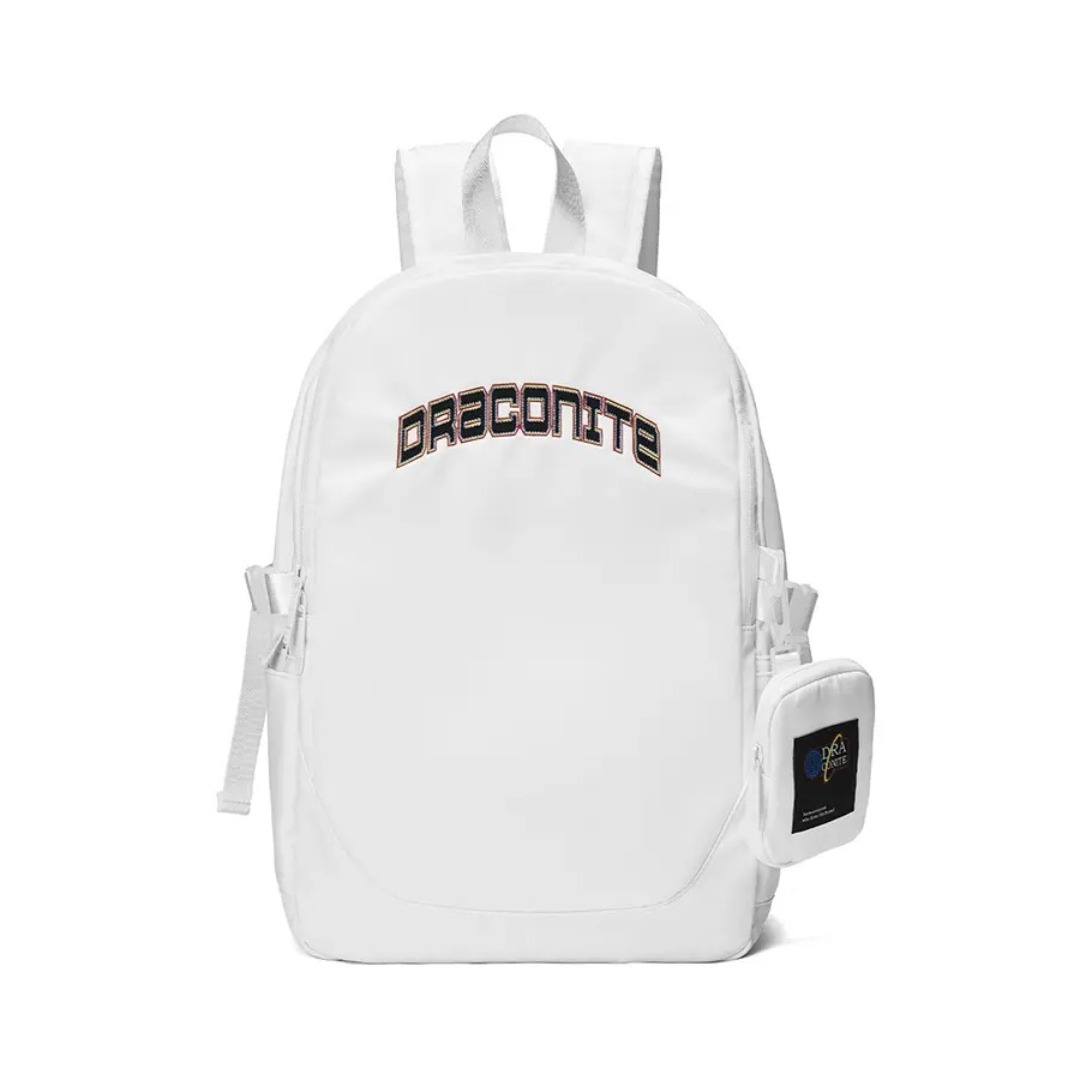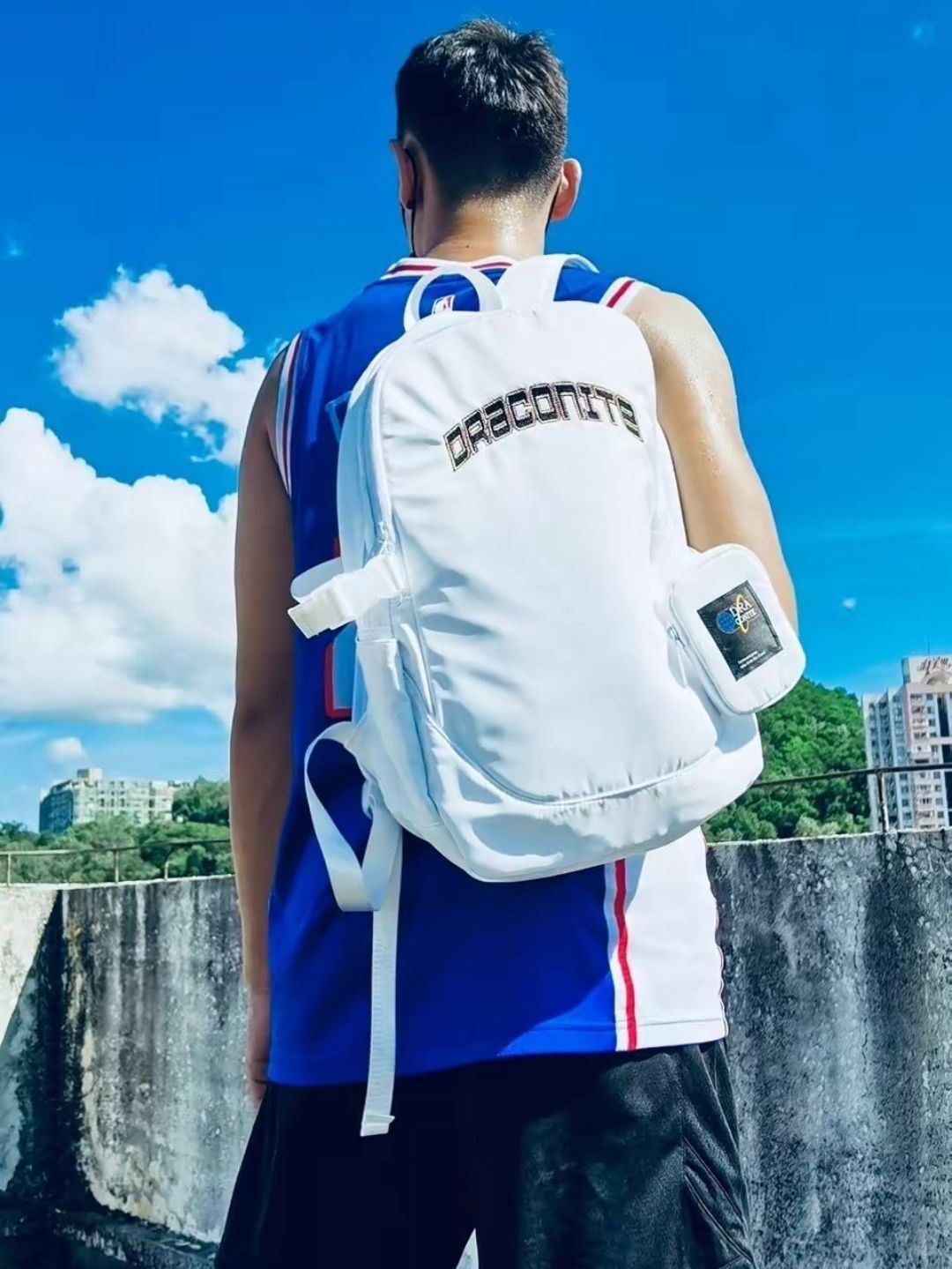 这款包版型硬挺,容量非常大,装篮球或者笔记本电脑和课本都非常合适,平时出门打球亲测可以装一双球鞋两套球衣,还可以再装一条毛巾和一个水杯。 白色真的是我最喜欢的颜色,简约又百搭,背带设计得很舒服,背久了也不累。而且这个面料还不是很容易脏的材质,不仅耐脏还防水!对于男孩子来说真的是走心了,还有一个潮流小包在侧前方的扣子上,非常帅气时尚。 正面的DRACONITE大写字母也很简洁,又大气又好看,非常...