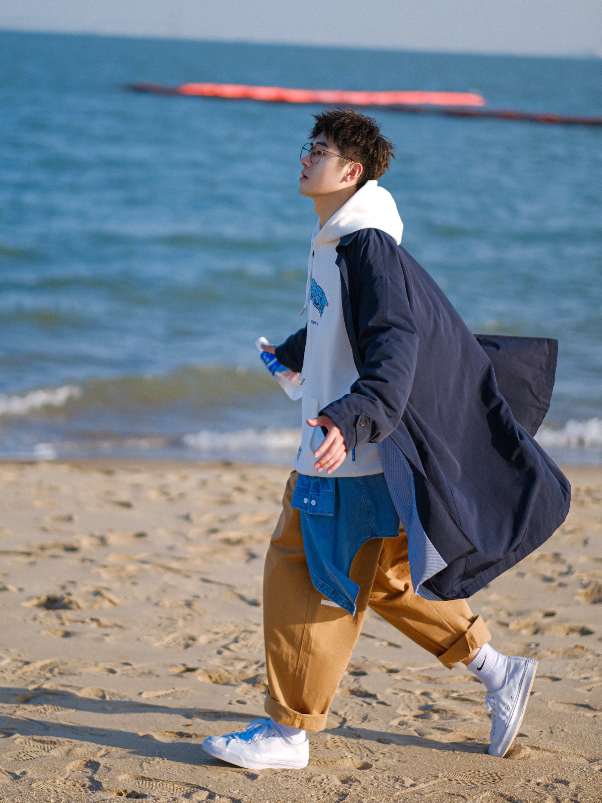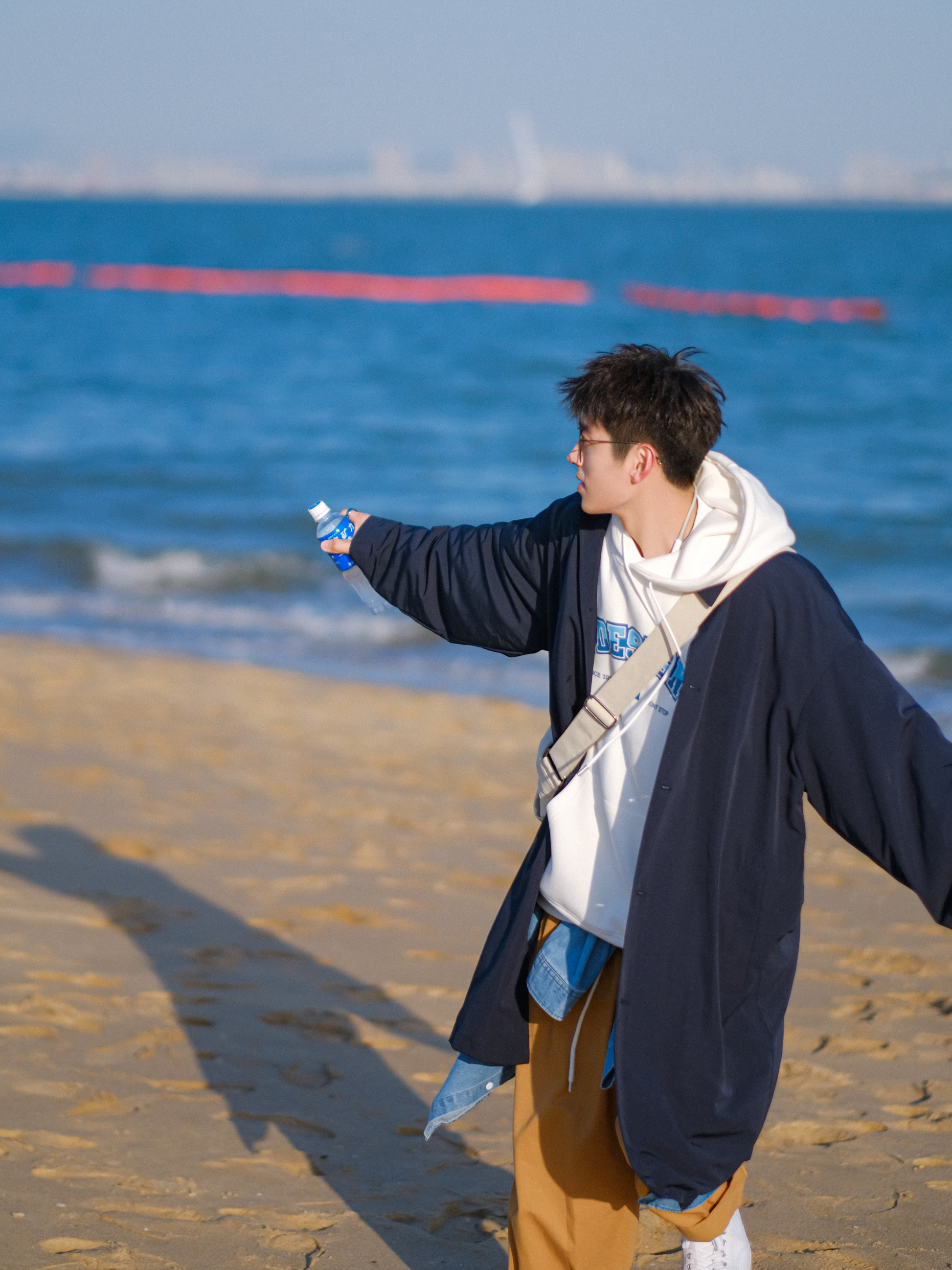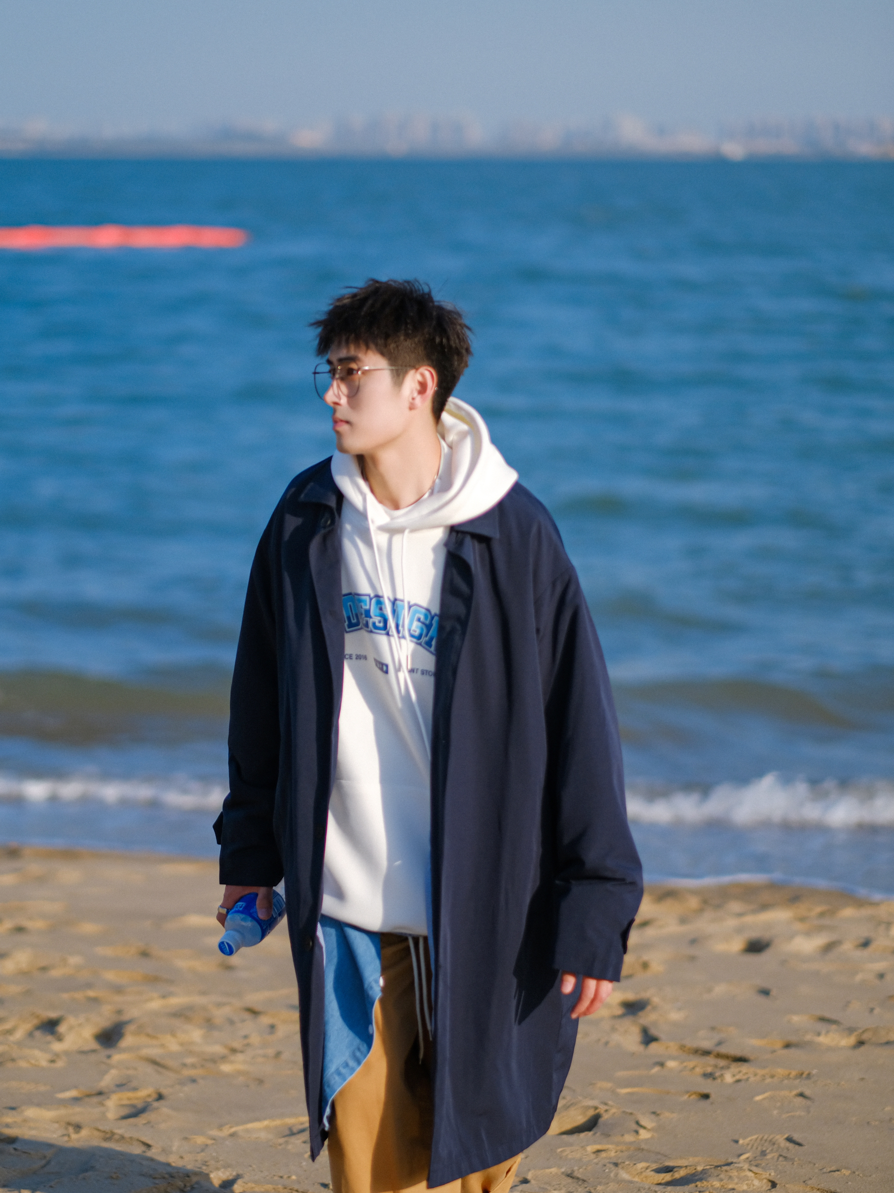 🔹答应我!去海边—定要穿风衣哦!🌊💤…… — 🔹这次春天来厦门,真的来对了!温度好舒服!今天分享一套“早春叠穿”—“海边氛围感”风衣穿搭,一整个日系少年电影感,虽然风有点大,但是真的好适合穿风衣!🌀✨…… — ⚠️本人身高|体重:176CM|63KG(🉑️参考) — 📒·今日份搭配小心思: 1⃣️:因为选择了海边拍照,风衣当然要选【藏青色】,和大海的蓝色才般配啊!✨ 2⃣️:打底选择了白色连帽卫衣...